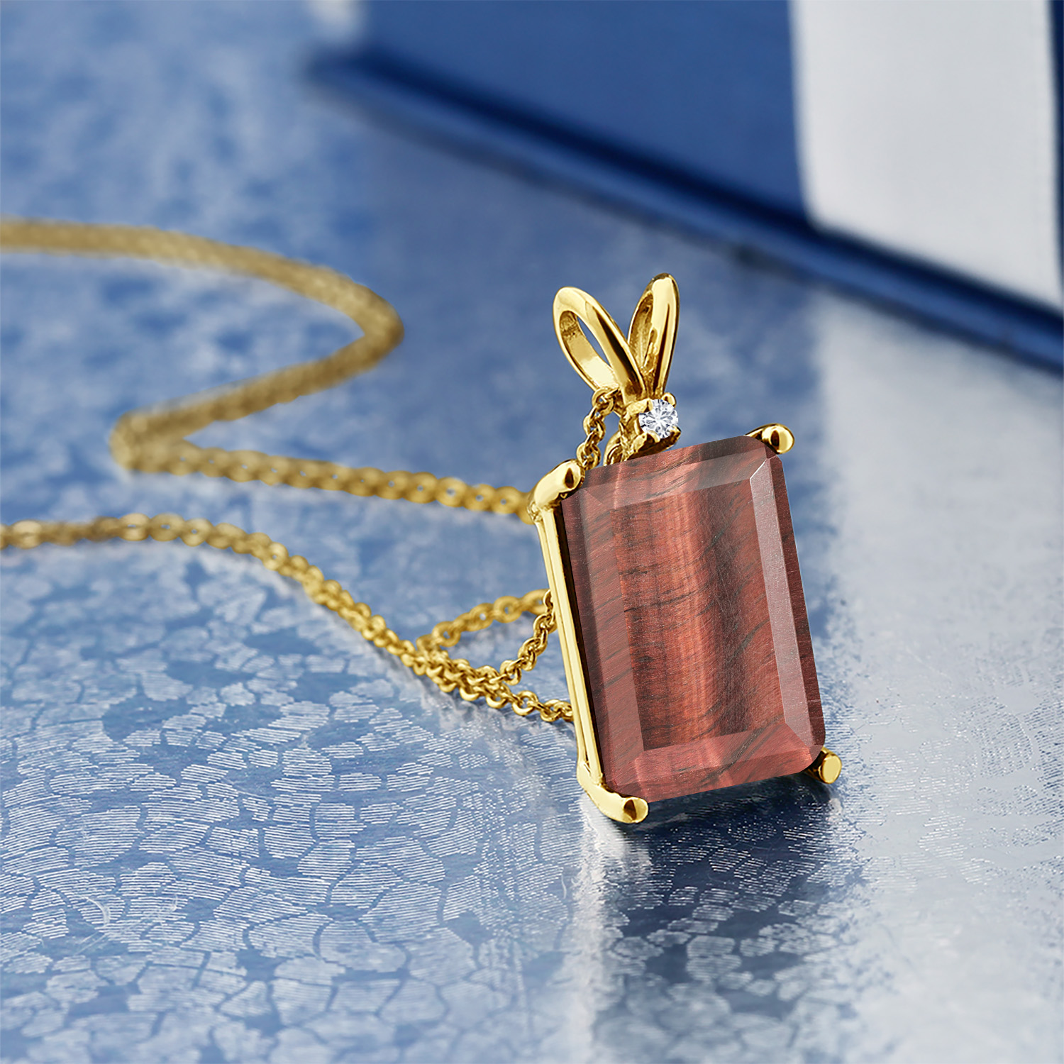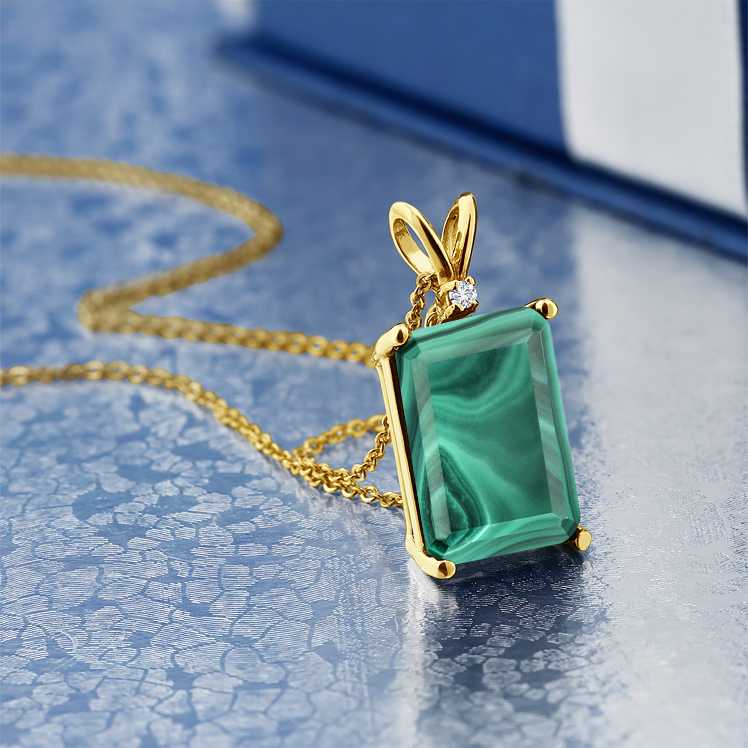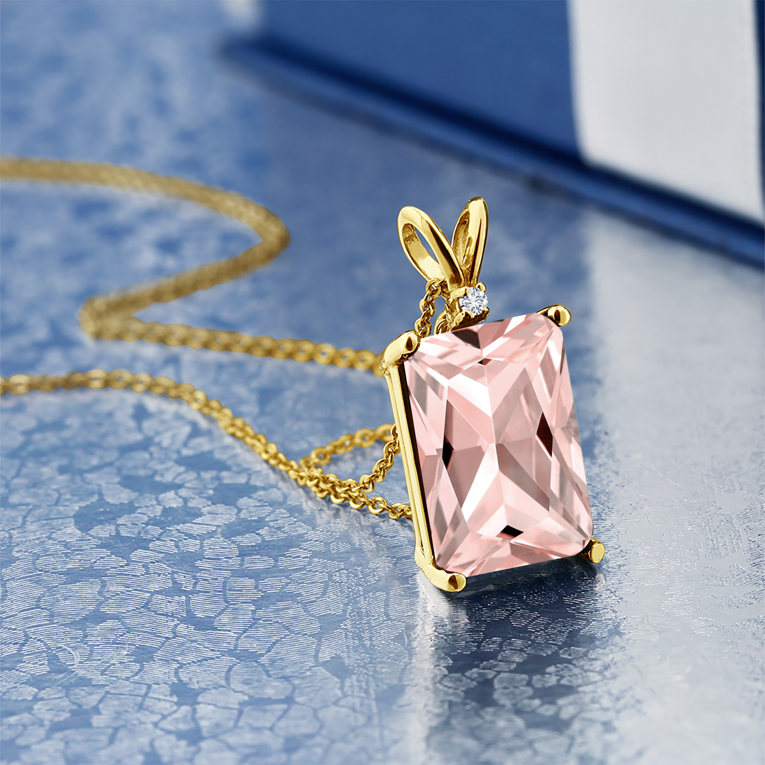 EXQUISITE CRAFTSMANSHIP WITH DIAMOND ACCENTS: The pendant is adorned with sparkling 1.5MM round white diamond accents that highlight the emerald-cut gemstone, offering a harmonious blend of simplicity and sophistication. Each diamond is meticulously set by skilled artisans, reflecting a commitment to detail and quality. This delicate interplay of gemstones and diamonds showcases an artful balance that speaks to the timeless elegance of fine jewelry.