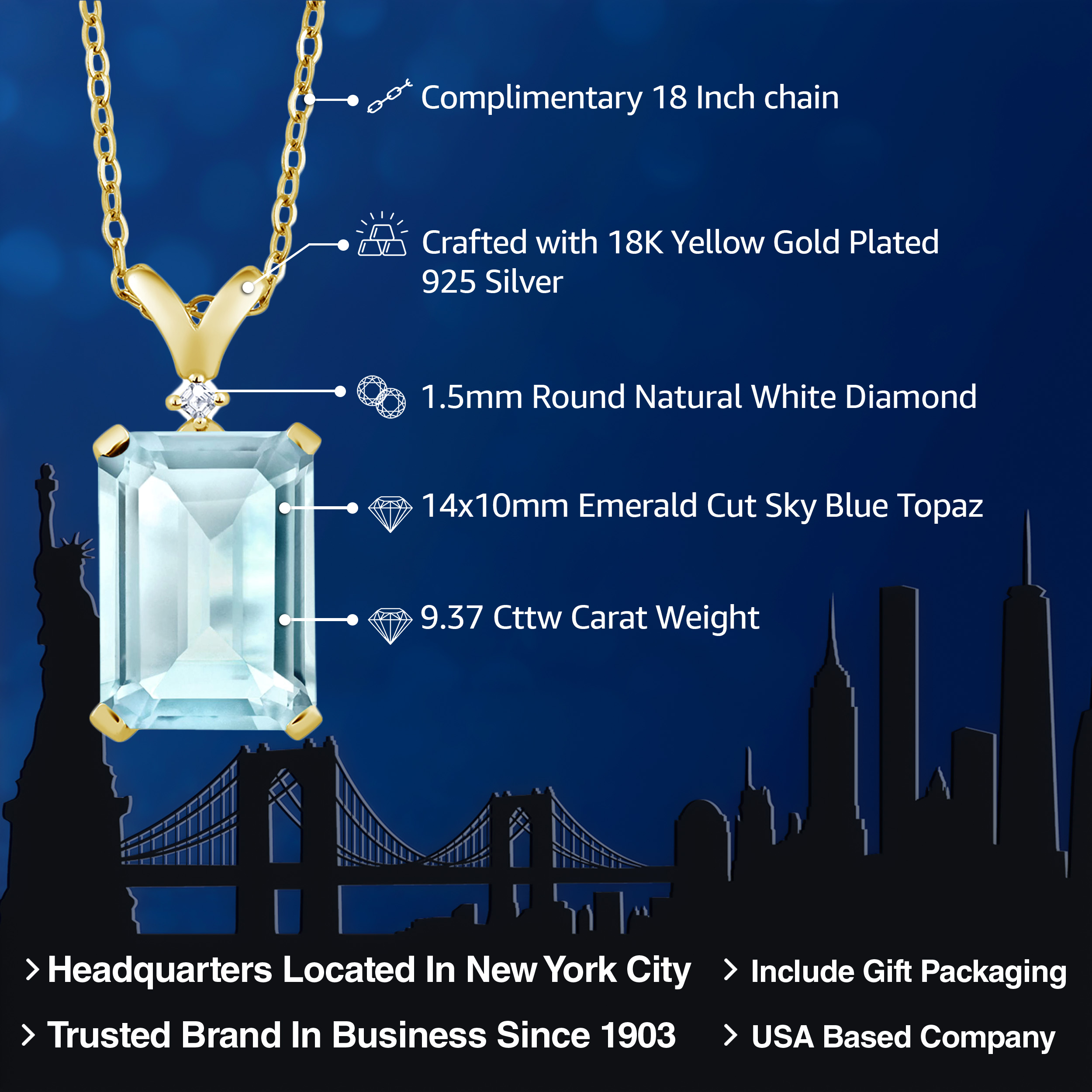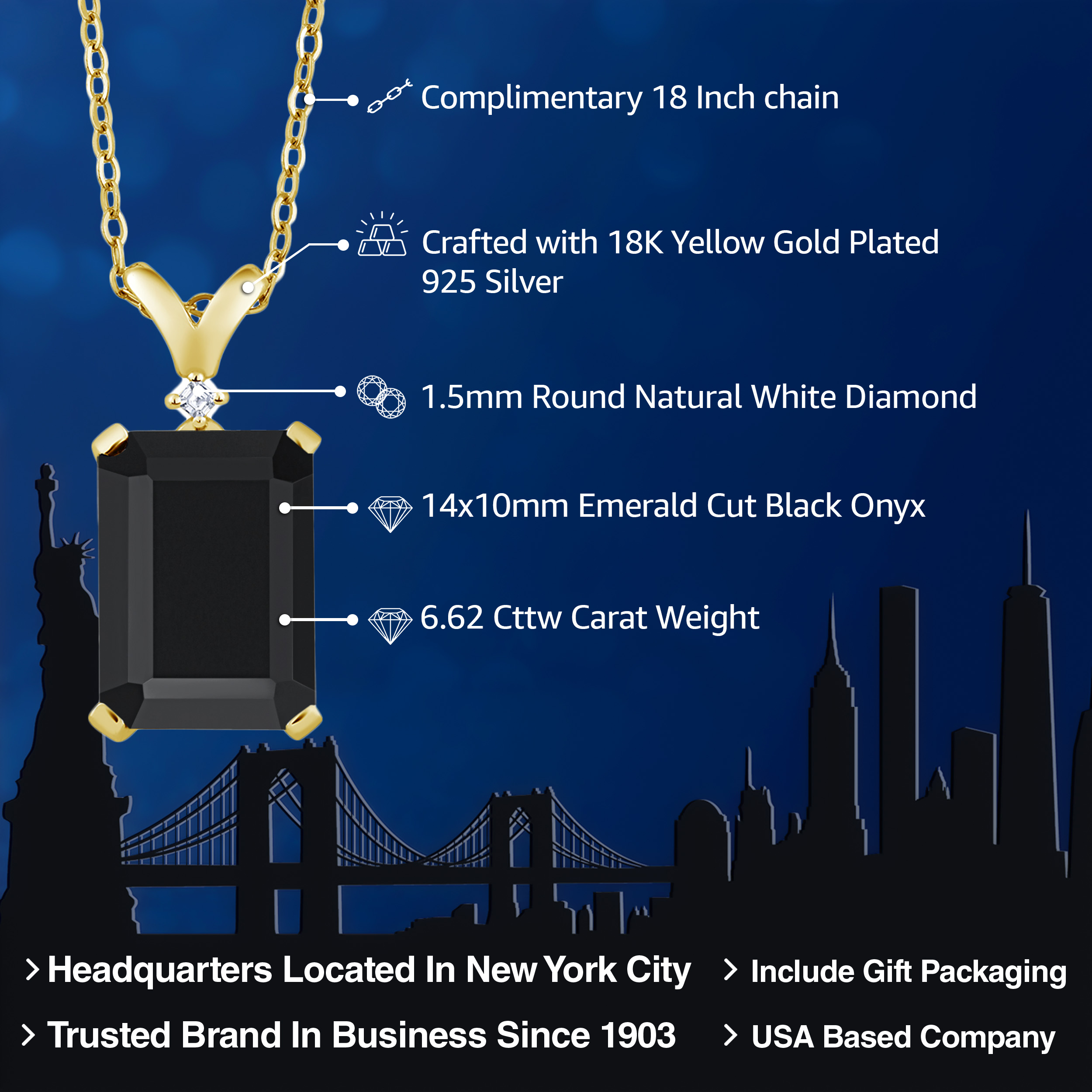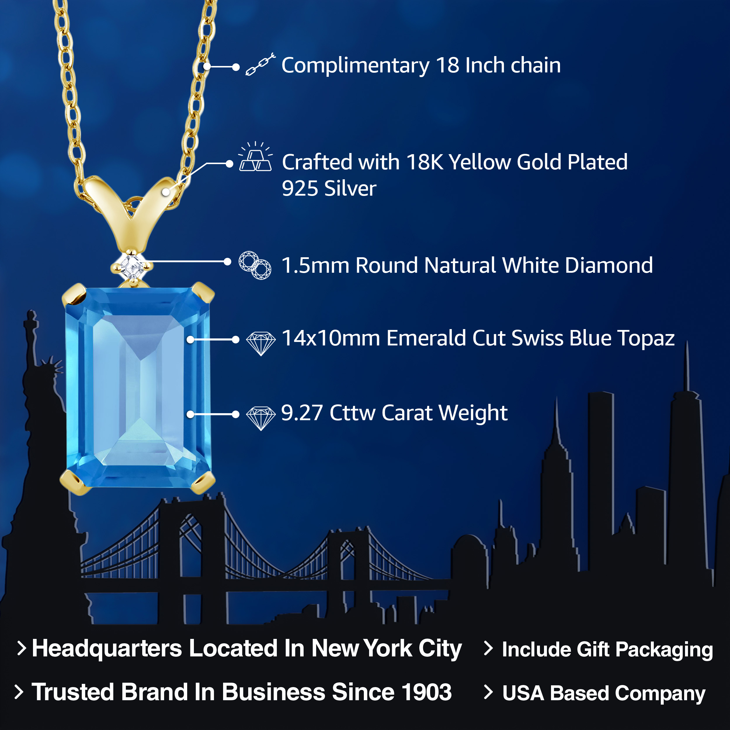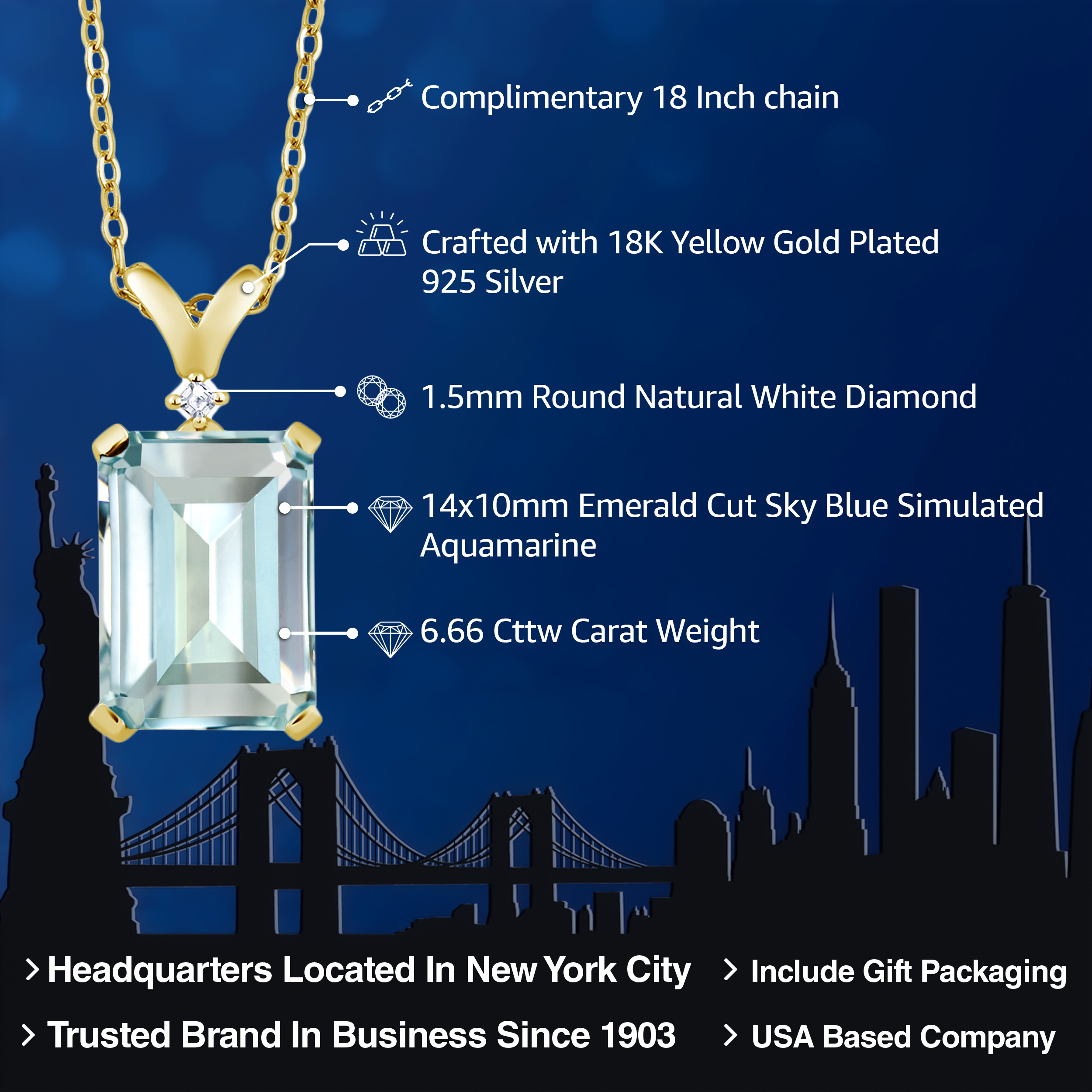 ELEGANT 18K YELLOW GOLD PLATING: Crafted with the finest 18K yellow gold plating over sterling silver, this pendant necklace exudes timeless elegance and sophistication. The precious metal's vibrant hue enhances the gemstone's brilliance, while its hypoallergenic properties ensure a comfortable wear for even the most sensitive skin. The durable plating stands as a testament to the necklace's longevity, withstanding daily wear while maintaining its resplendent shine.
