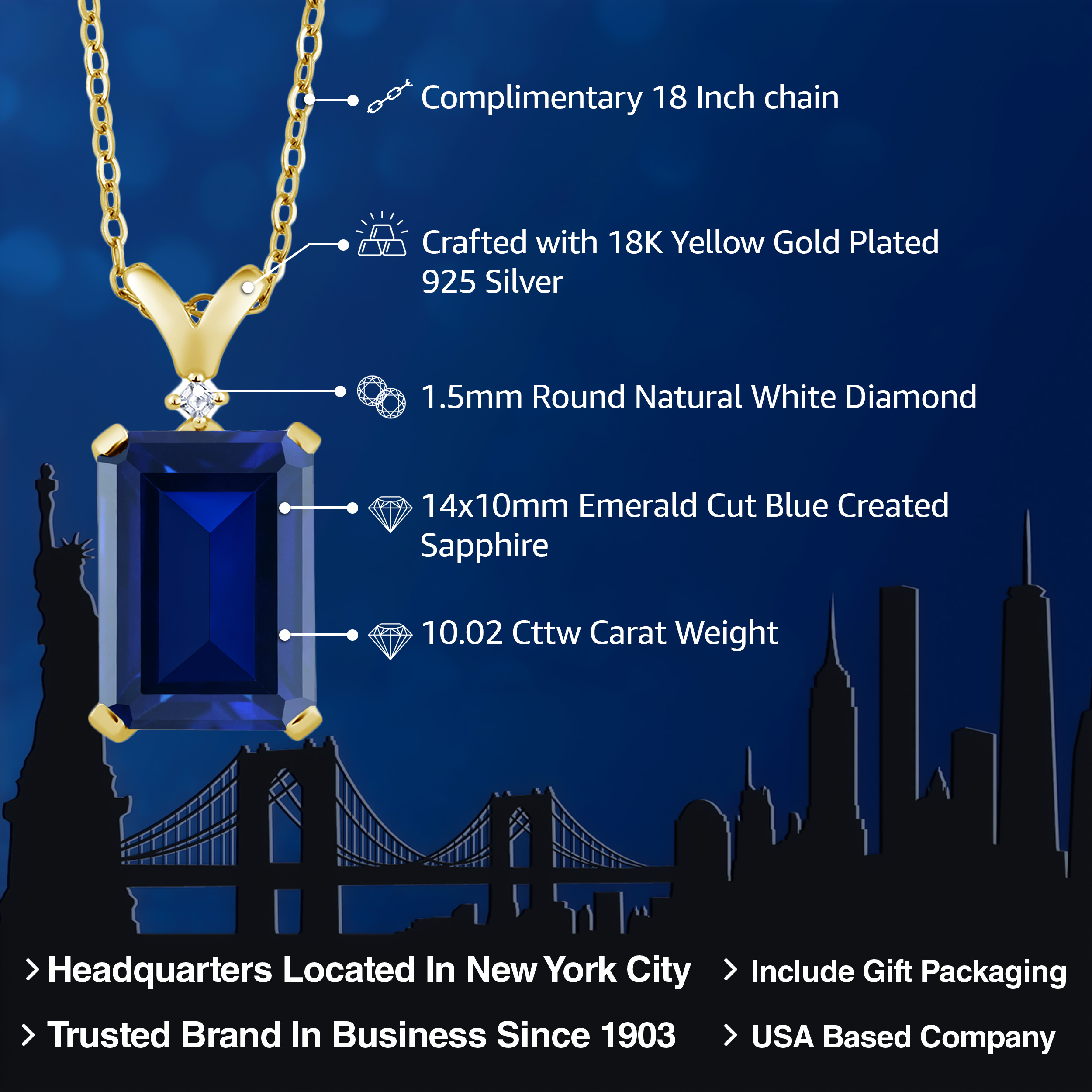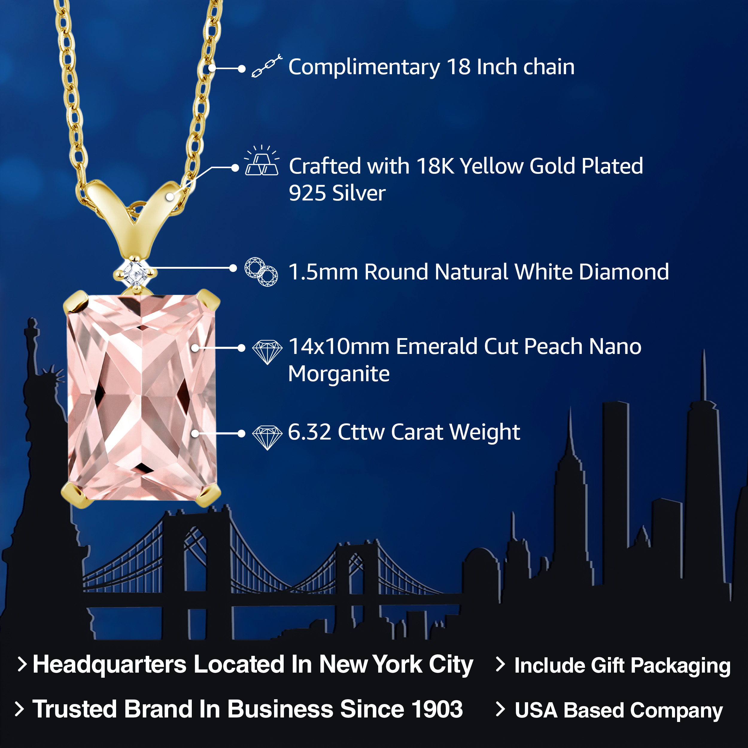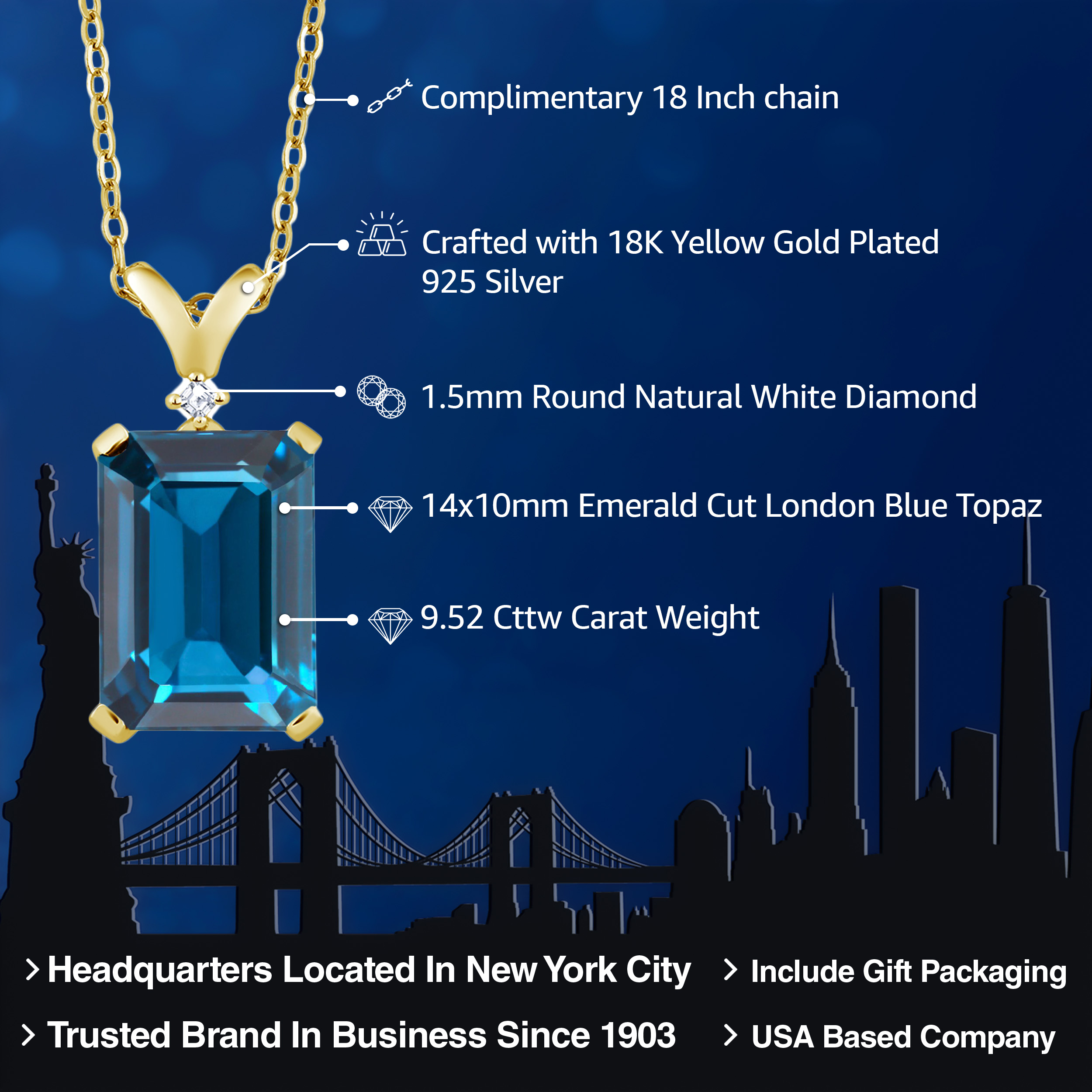 ELEGANT 18K YELLOW GOLD PLATING: Crafted with the finest 18K yellow gold plating over sterling silver, this pendant necklace exudes timeless elegance and sophistication. The precious metal's vibrant hue enhances the gemstone's brilliance, while its hypoallergenic properties ensure a comfortable wear for even the most sensitive skin. The durable plating stands as a testament to the necklace's longevity, withstanding daily wear while maintaining its resplendent shine.