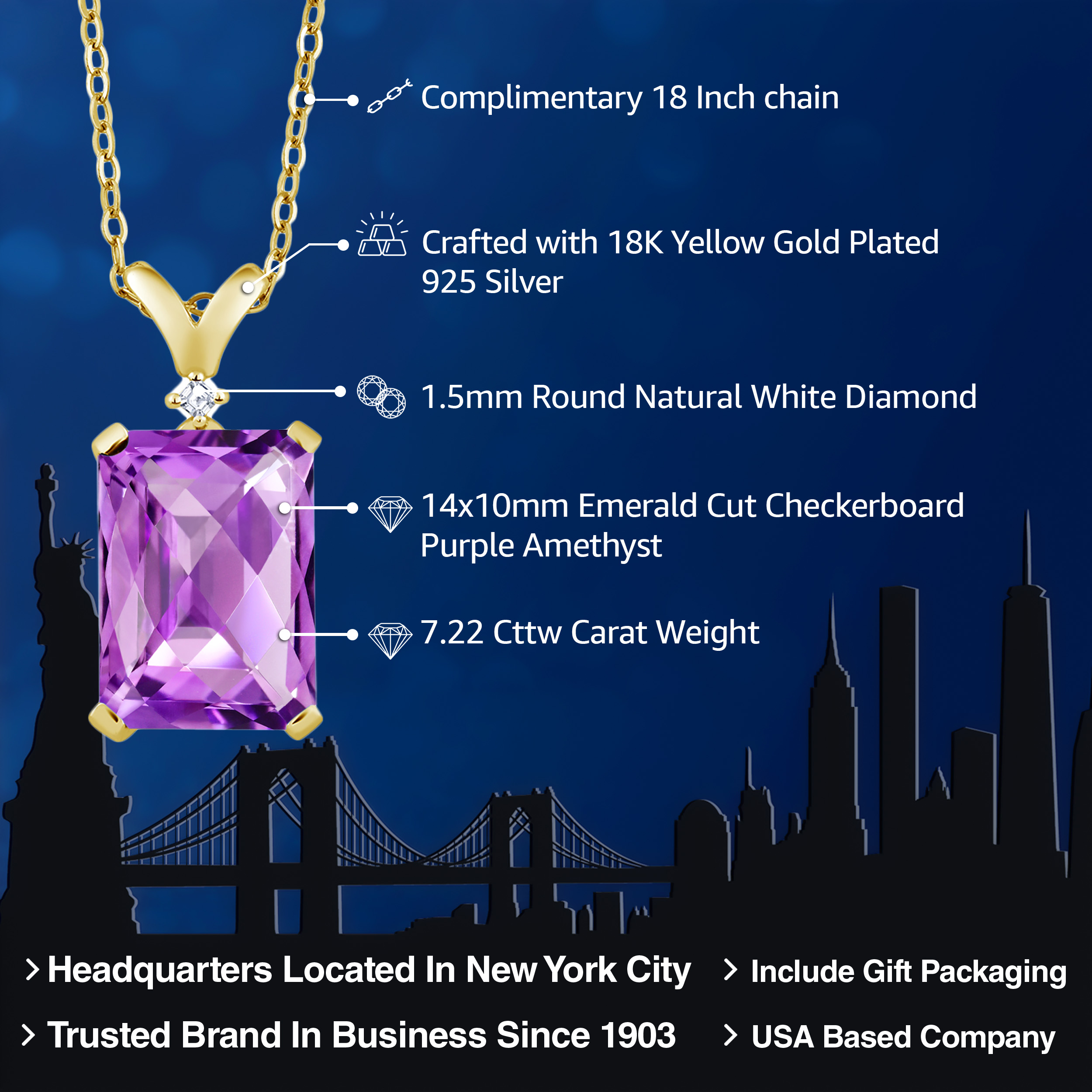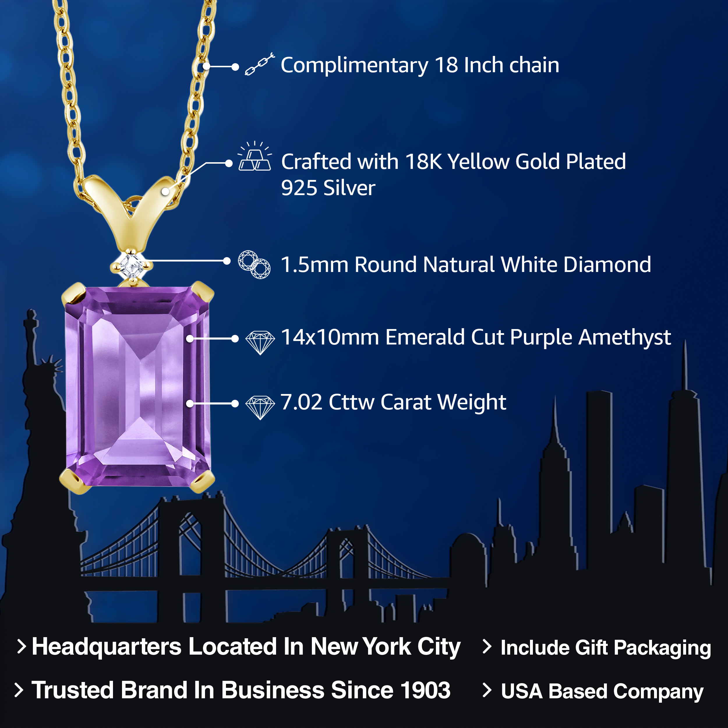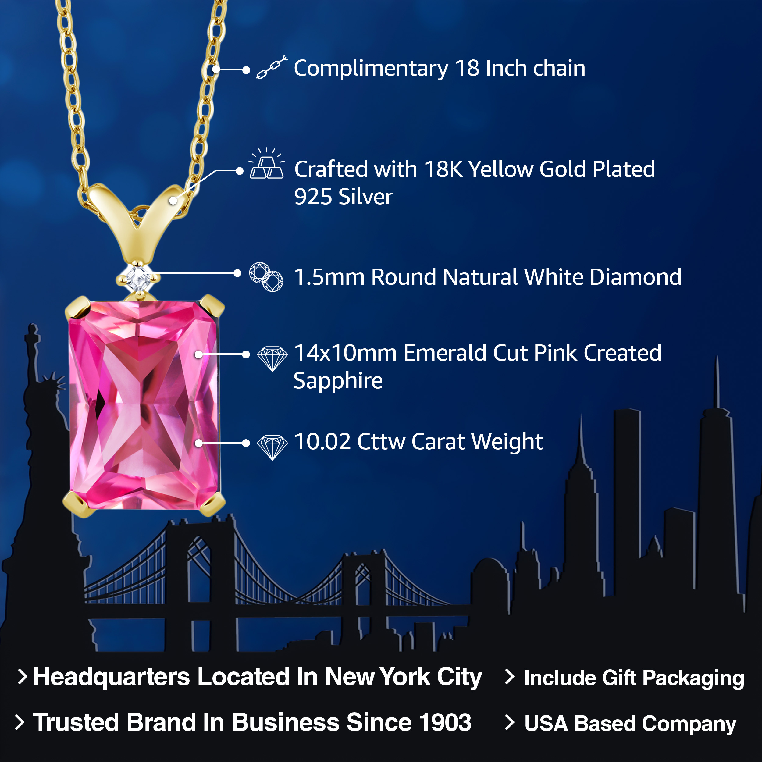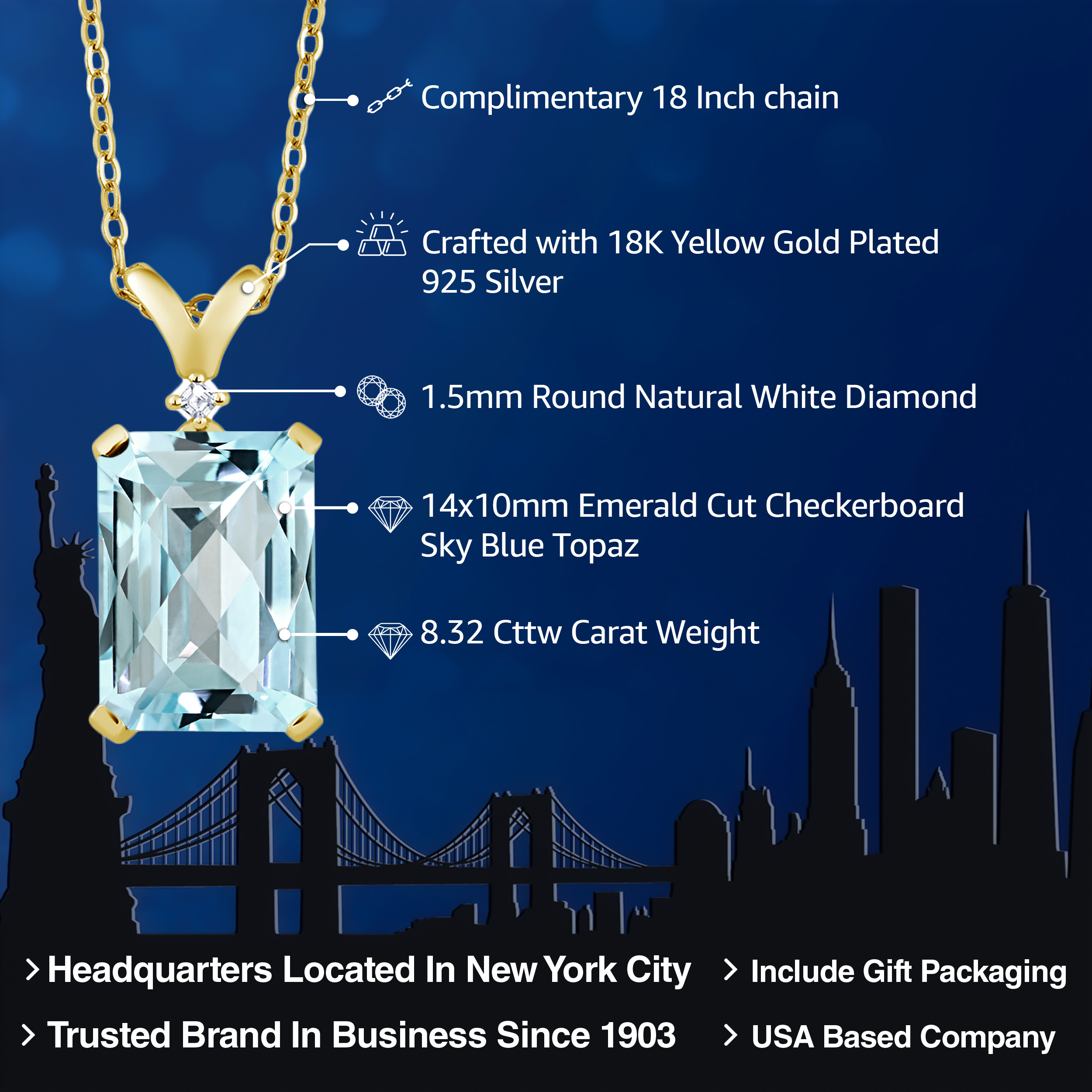 ELEGANT 18K YELLOW GOLD PLATING: Crafted with the finest 18K yellow gold plating over sterling silver, this pendant necklace exudes timeless elegance and sophistication. The precious metal's vibrant hue enhances the gemstone's brilliance, while its hypoallergenic properties ensure a comfortable wear for even the most sensitive skin. The durable plating stands as a testament to the necklace's longevity, withstanding daily wear while maintaining its resplendent shine.