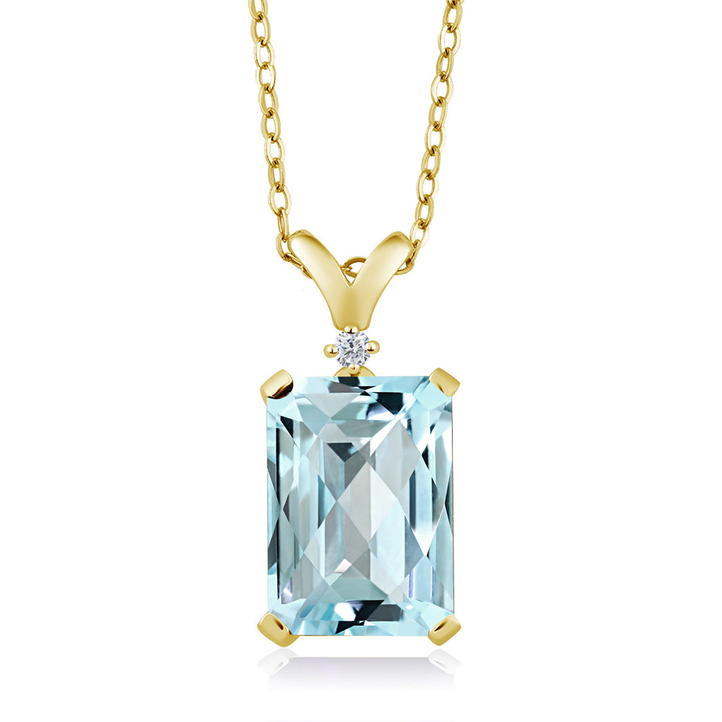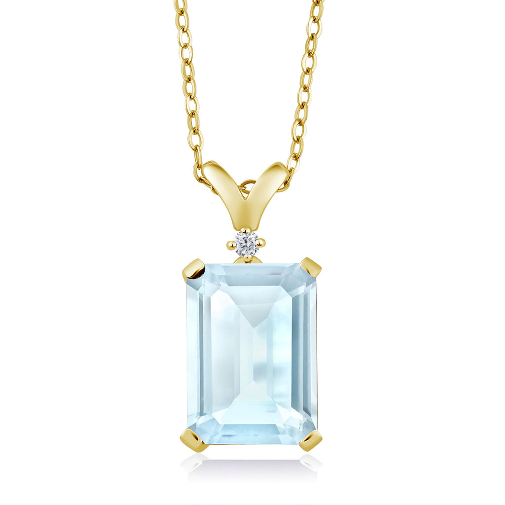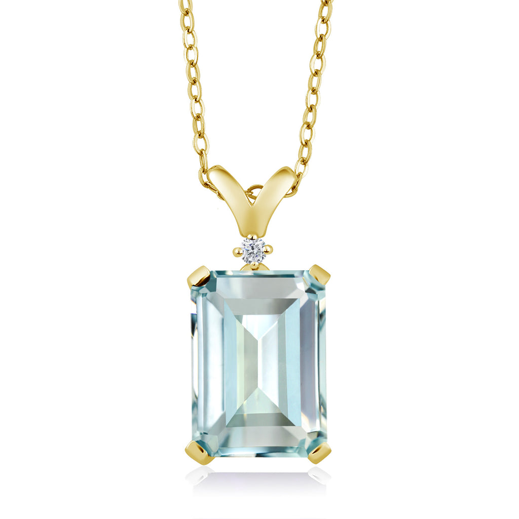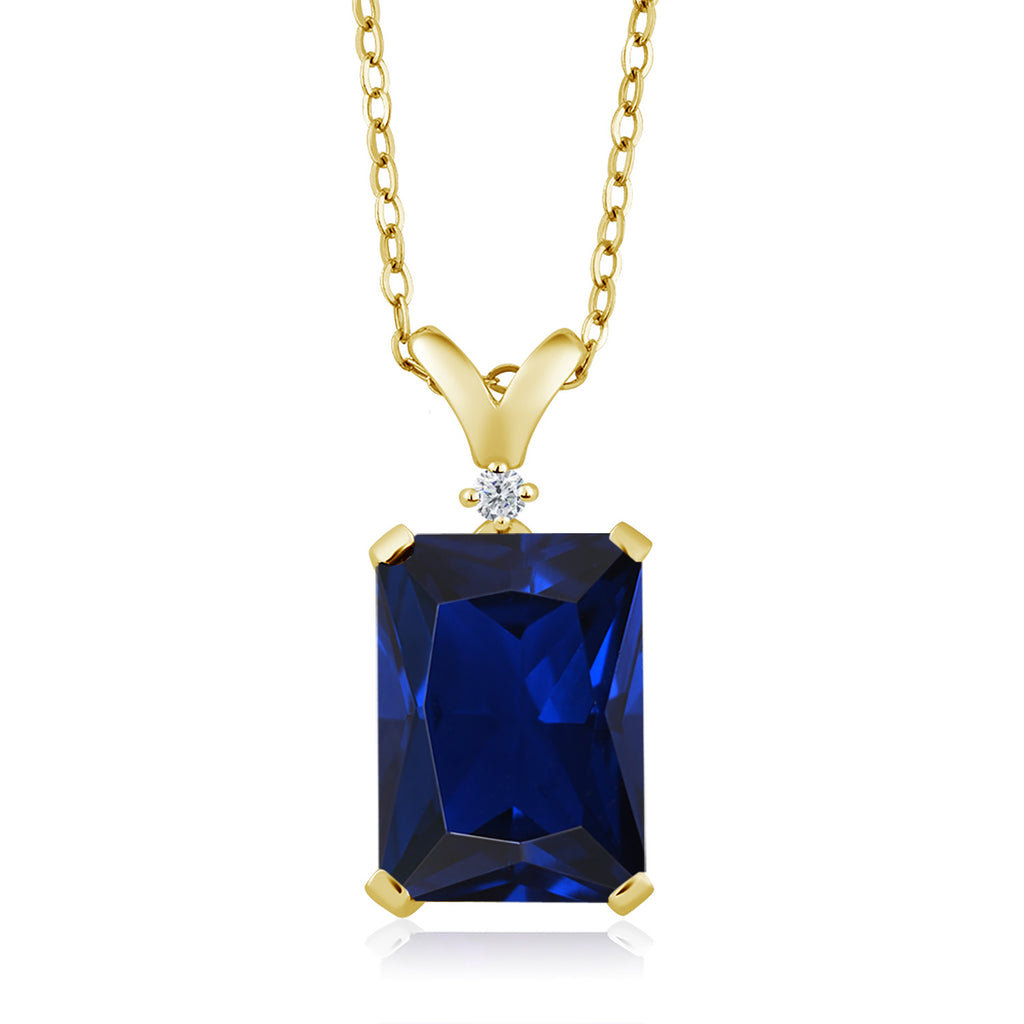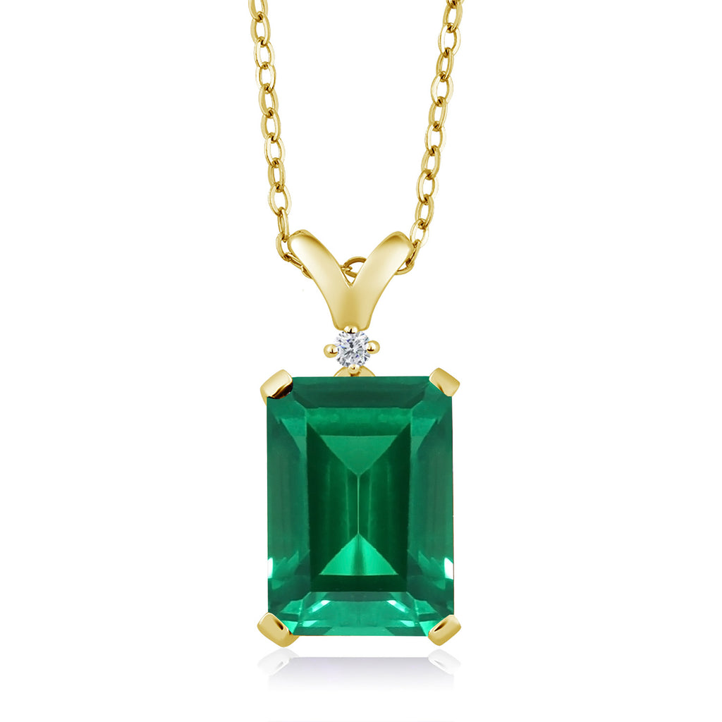 5-10 Cttw Gemstone Birthstone and White Diamond Pendant Necklace for Women | 18K Yellow Gold Plated Silver | Emerald Cut 14X10MM with 1MM Round Accent | 18 Inch Chain