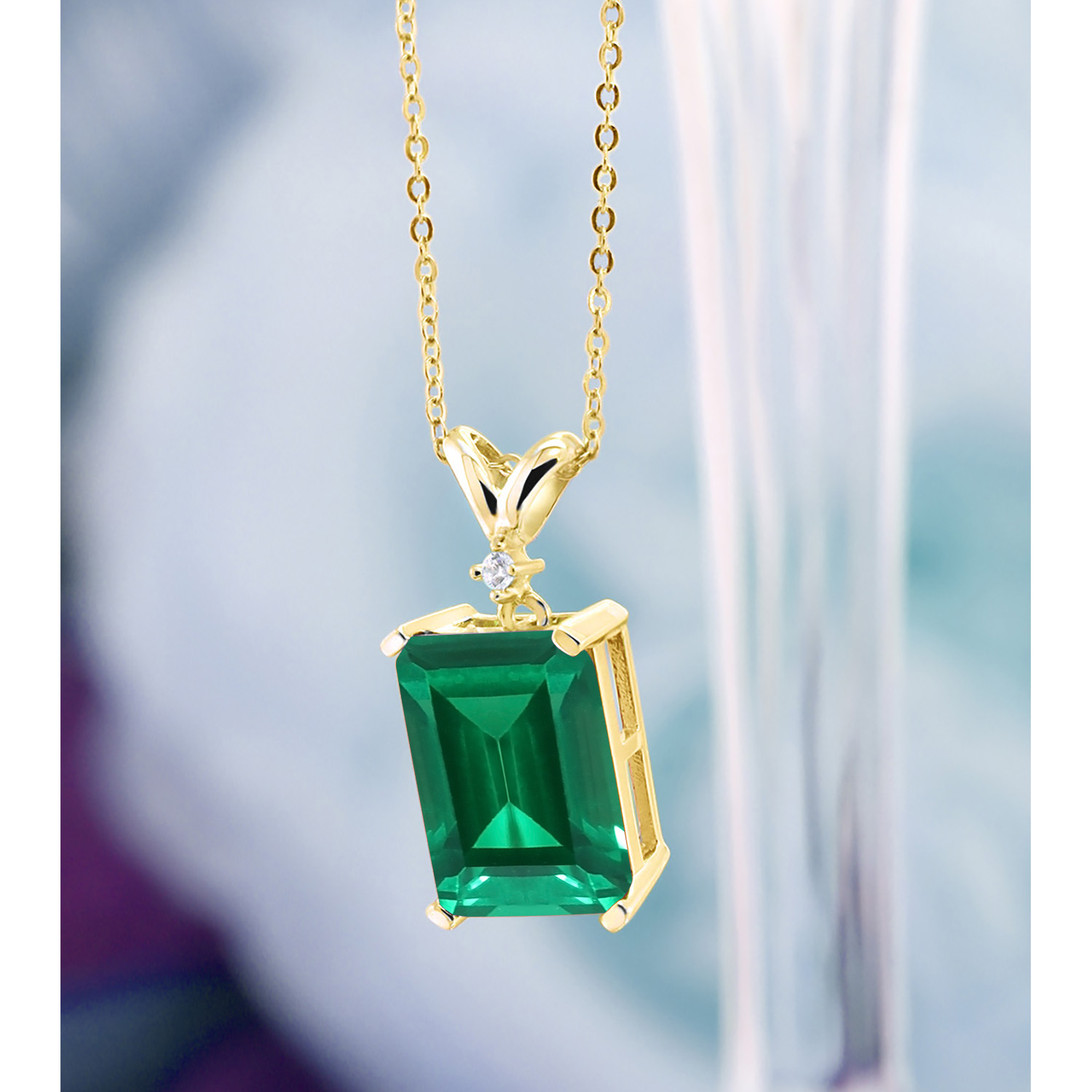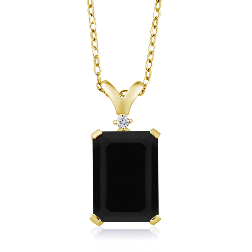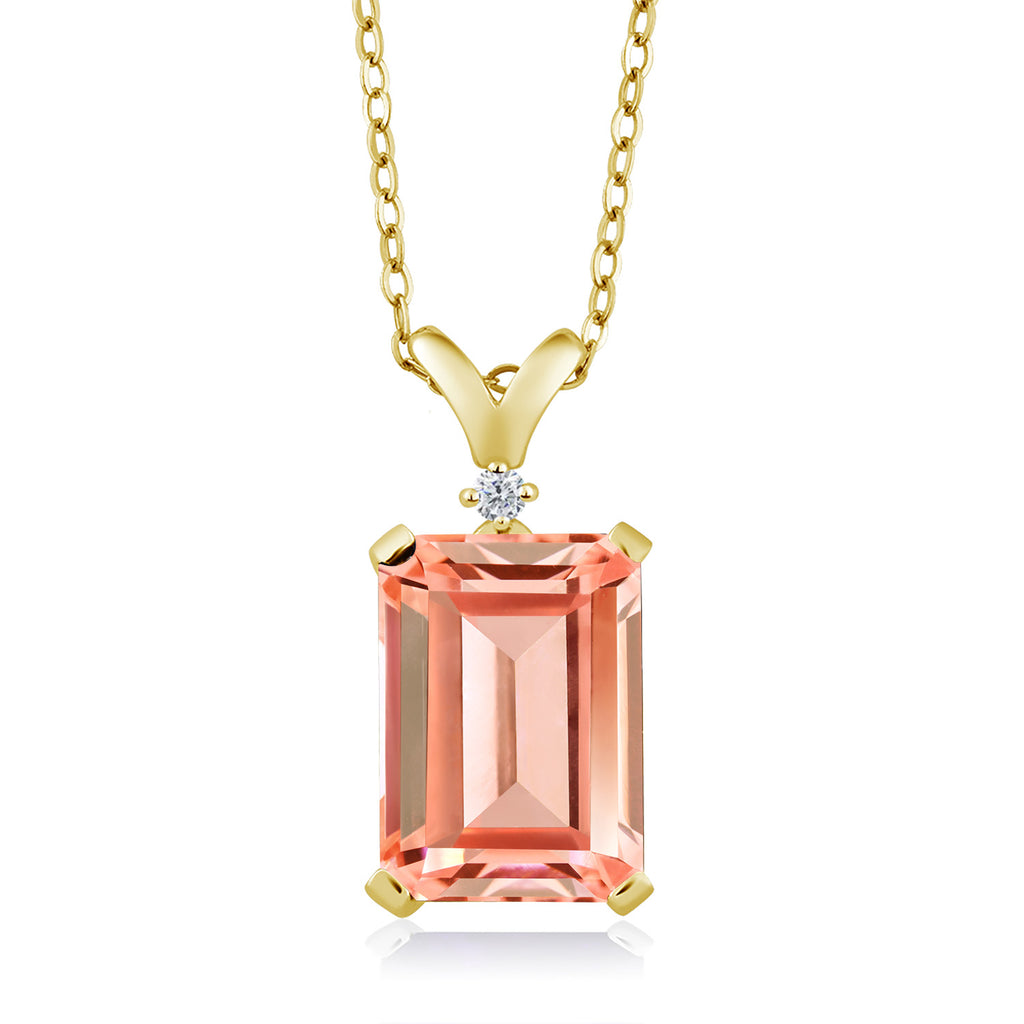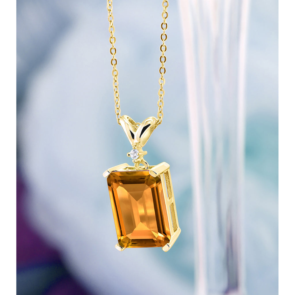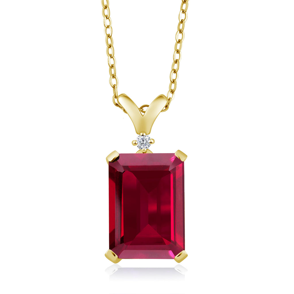 5-10 Cttw Gemstone Birthstone and White Diamond Pendant Necklace for Women | 18K Yellow Gold Plated Silver | Emerald Cut 14X10MM with 1MM Round Accent | 18 Inch Chain