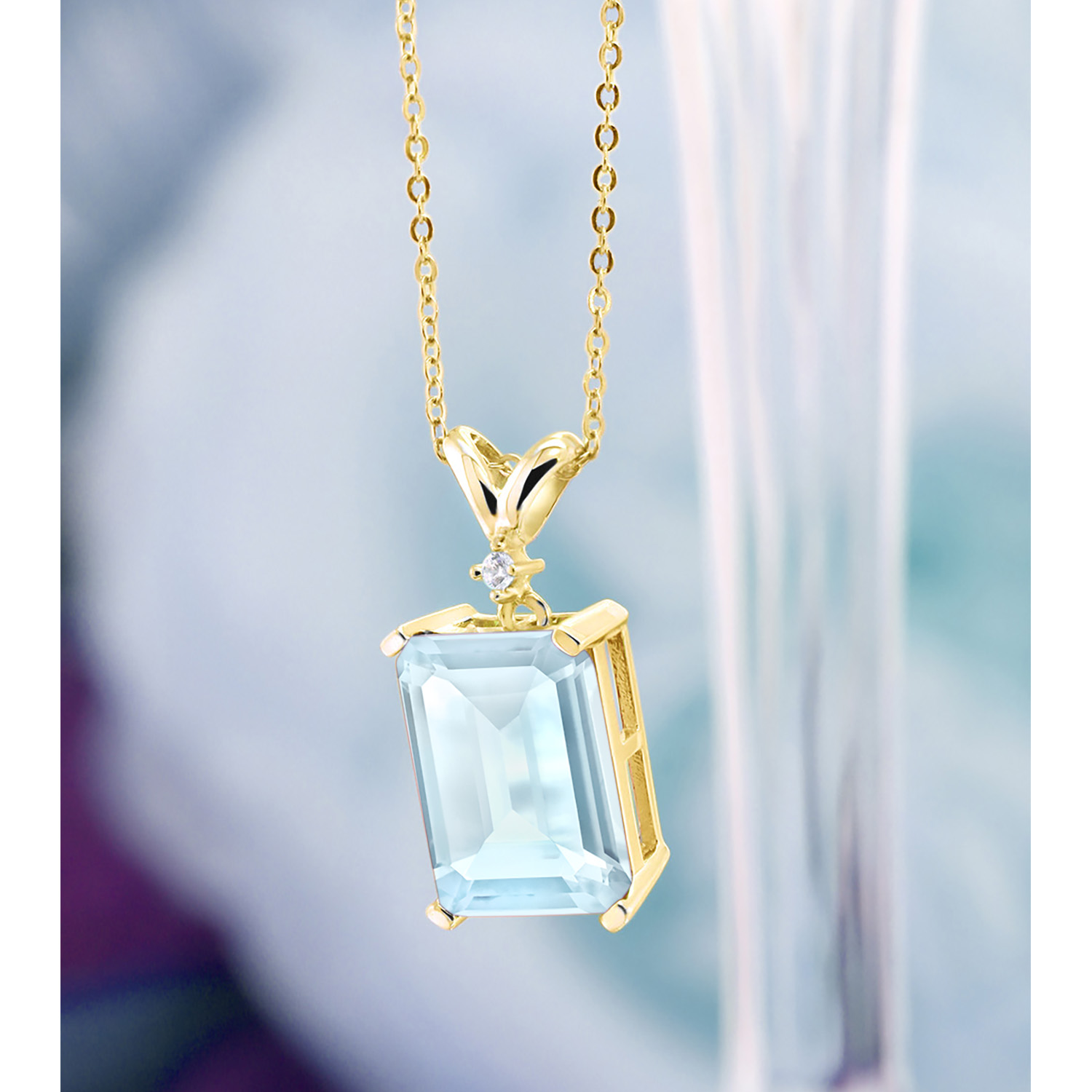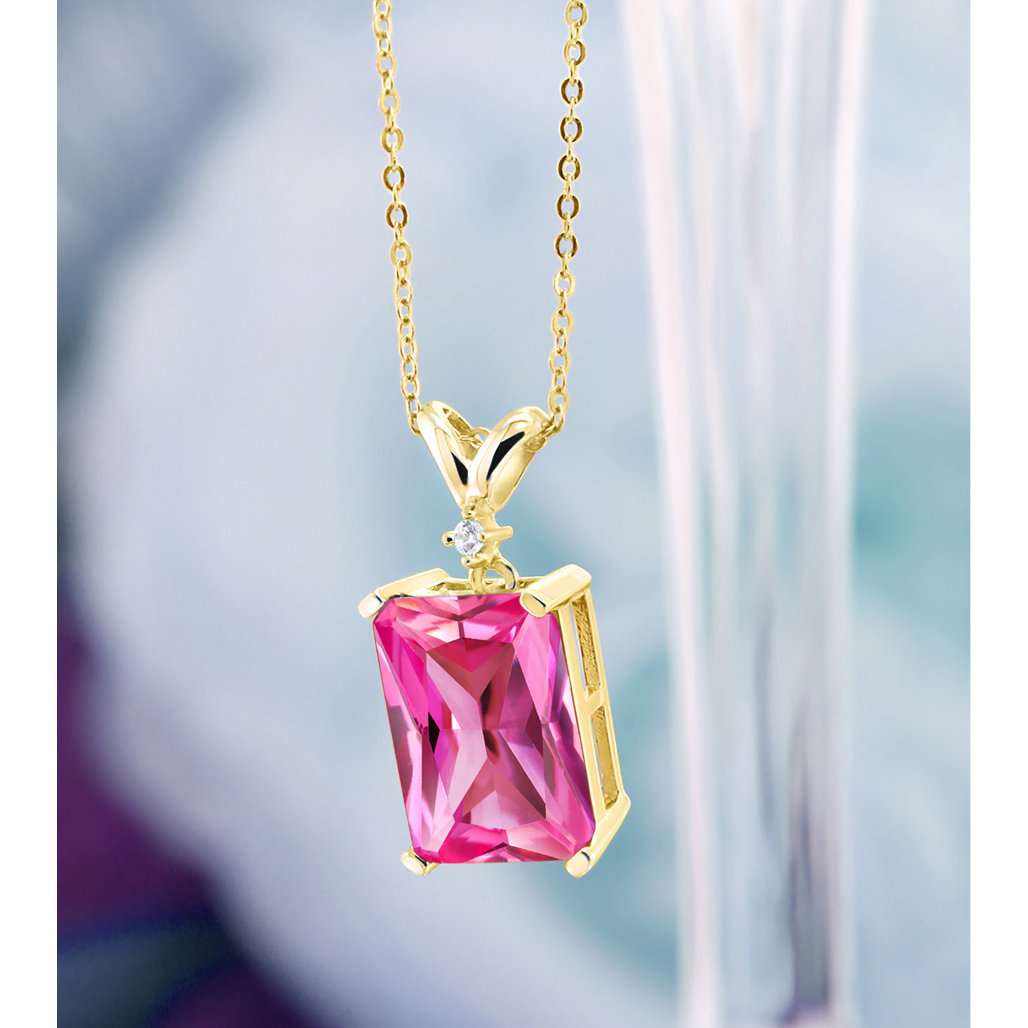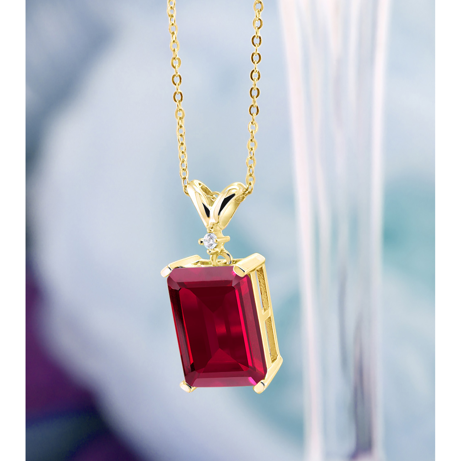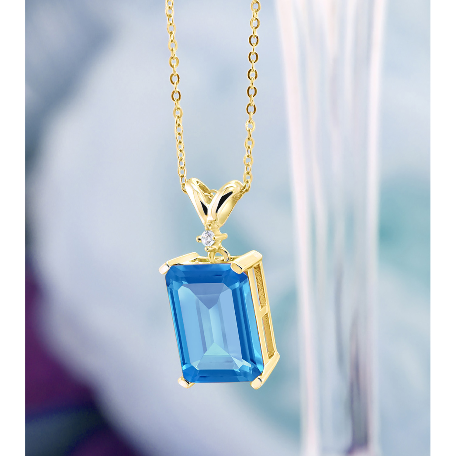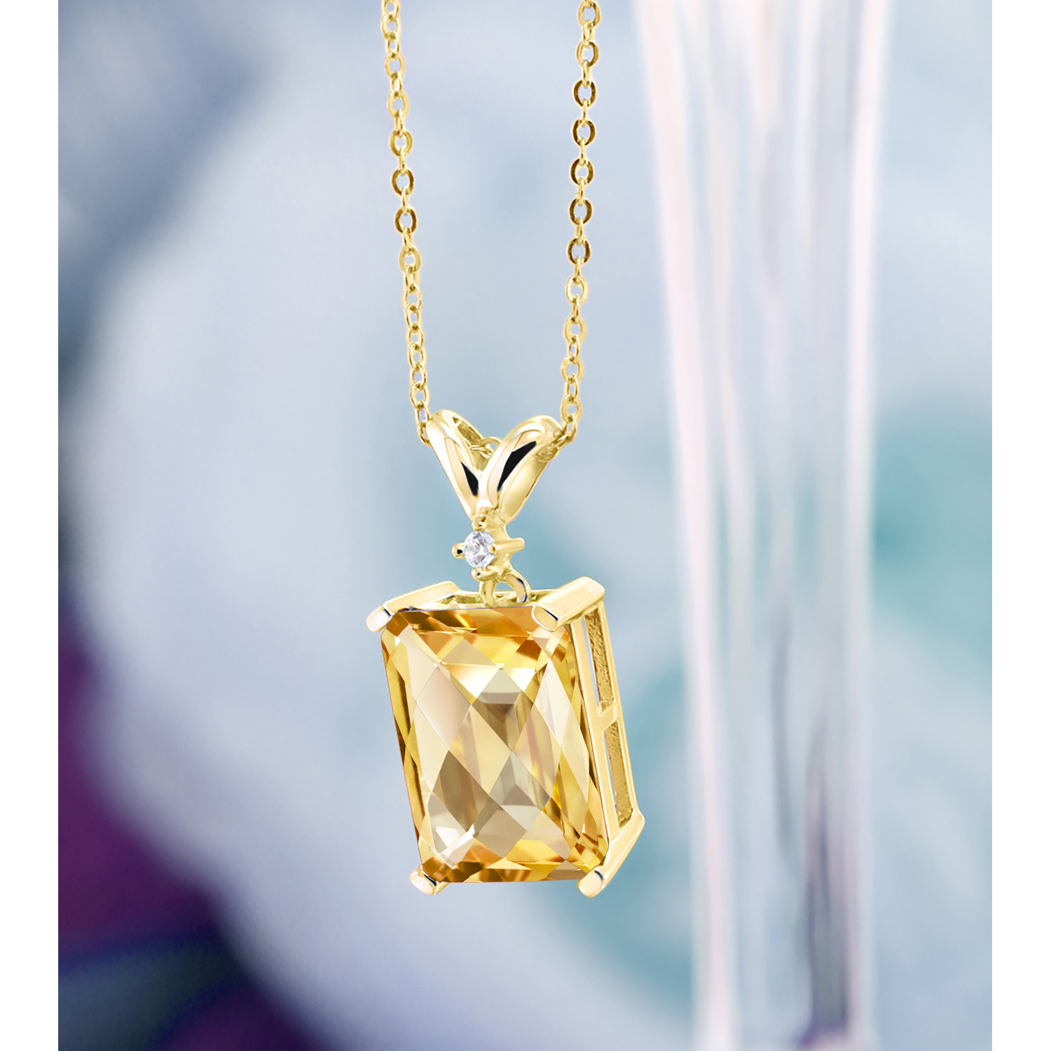 5-10 Cttw Gemstone Birthstone and White Diamond Pendant Necklace for Women | 18K Yellow Gold Plated Silver | Emerald Cut 14X10MM with 1MM Round Accent | 18 Inch Chain