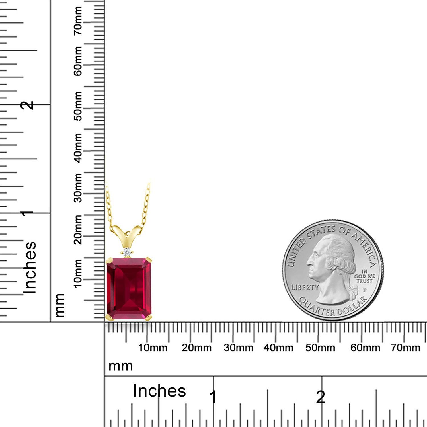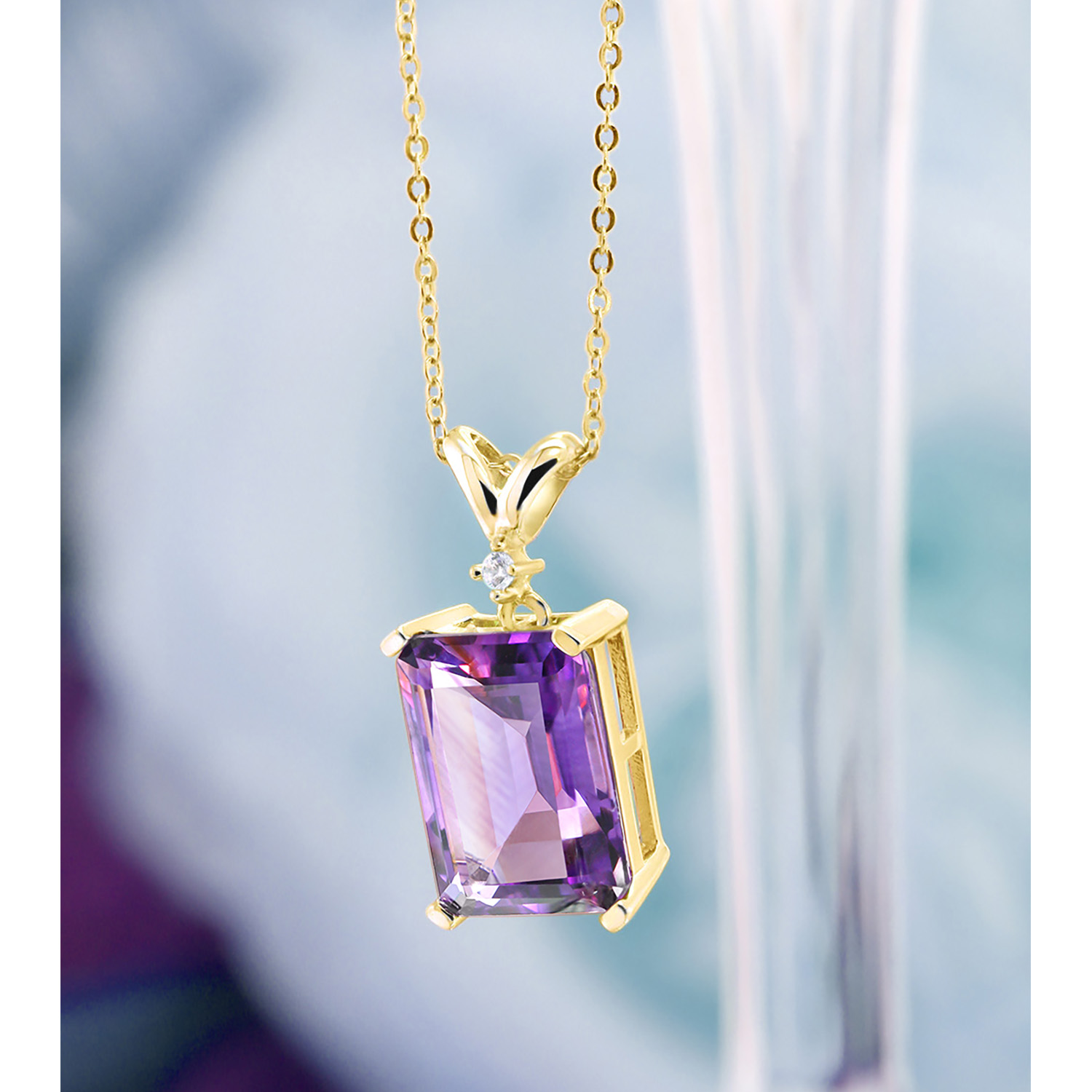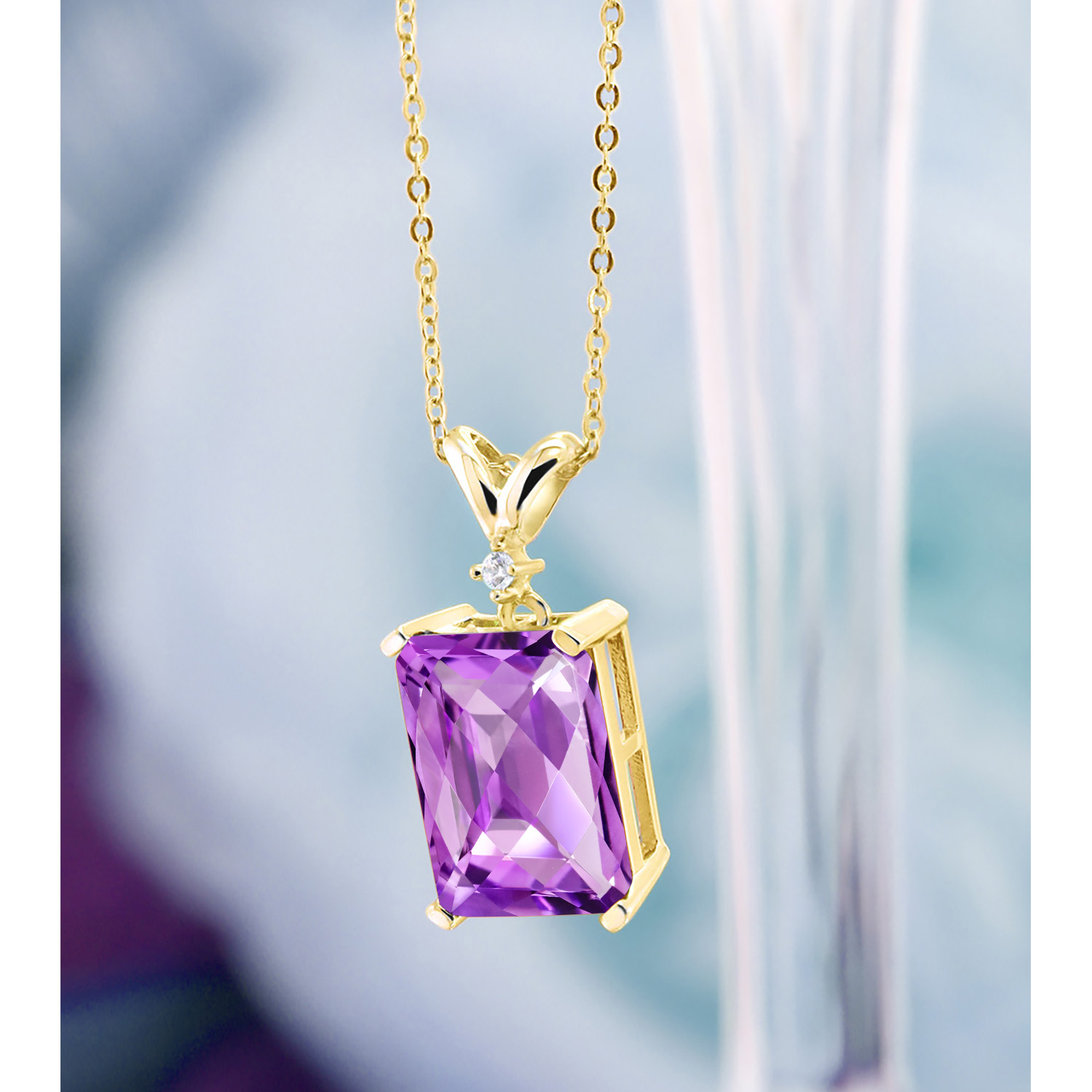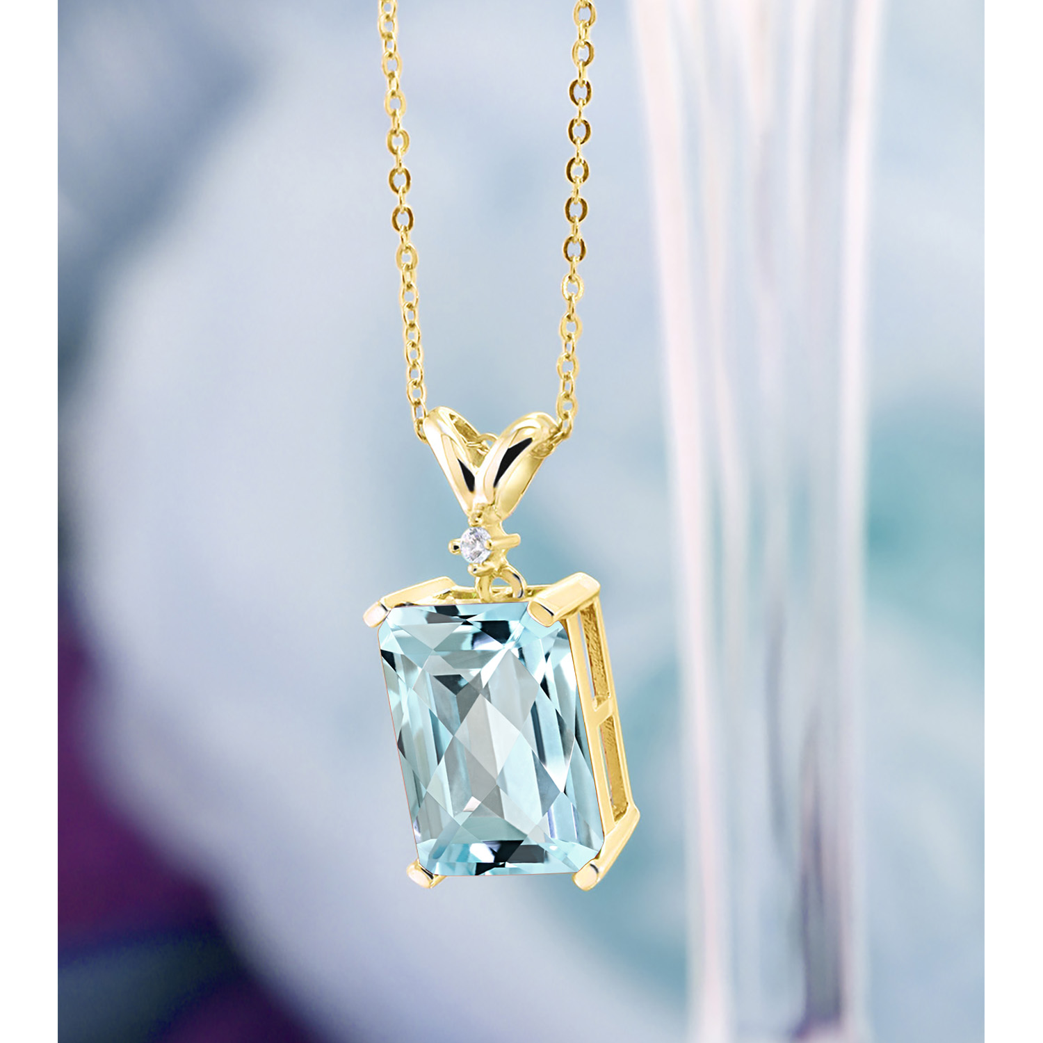 5-10 Cttw Gemstone Birthstone and White Diamond Pendant Necklace for Women | 18K Yellow Gold Plated Silver | Emerald Cut 14X10MM with 1MM Round Accent | 18 Inch Chain