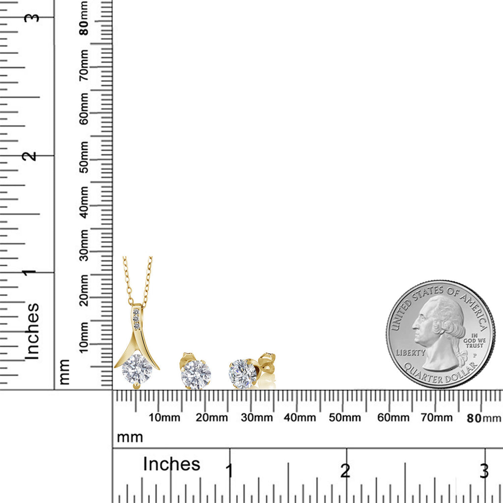 18K Yellow Gold Plated Silver Lab Grown Diamond Pendant Earrings Jewelry Set For Women | 2.28 Cttw | Gemstone April Birthstone | Round 6MM | with 18 Inch Chain
