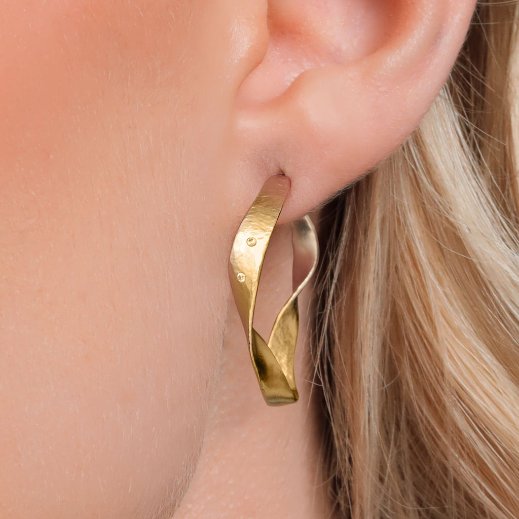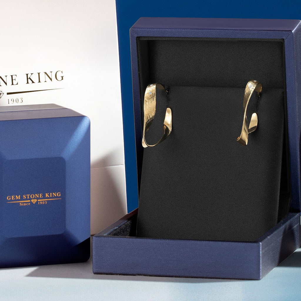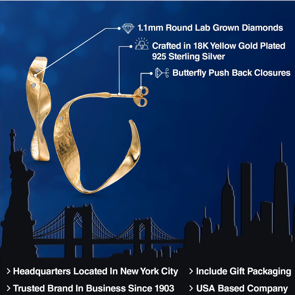 ELEGANT DESIGN: Elevate your style with these 18K Yellow Gold Plated Silver Lab Grown Diamond Round Twisted Dangle Hoop Earrings, featuring a unique twisted design that adds a touch of sophistication to any outfit.