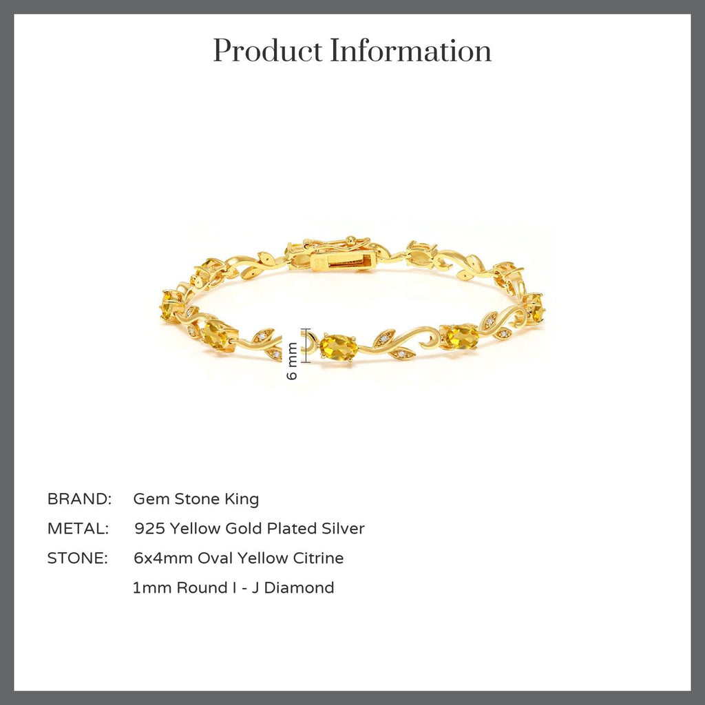 EXQUISITE GEMSTONE COMBINATION: This tennis bracelet showcases an exquisite combination of oval Citrine gemstones and White Diamonds (3.73 Cttw). Citrine, known for its warm golden hues, is the birthstone for November, while the White Diamonds add a touch of brilliance and sophistication.