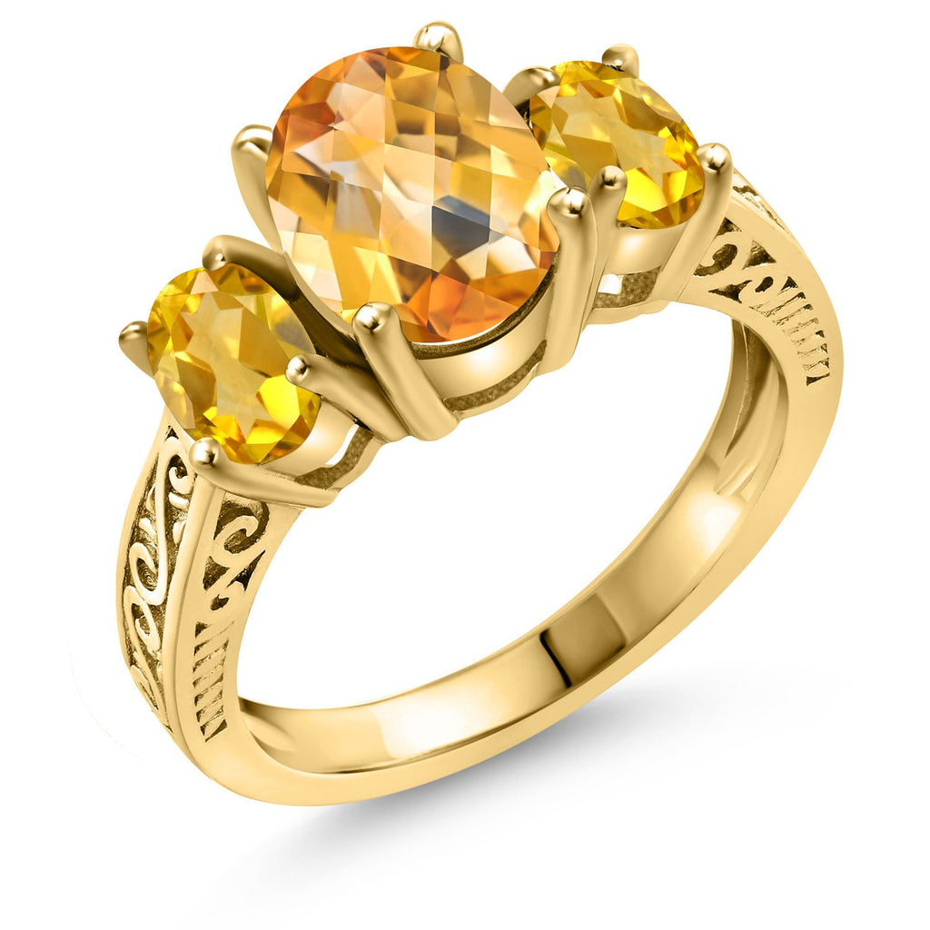 2-3 Cttw Oval 3-Stone Engagement Ring For Women | 18K Yellow Gold Plated Silver | Gemstone Birthstone | Oval 9X7MM and 6X4MM | Three Stone Wedding Anniversary Promise Ring