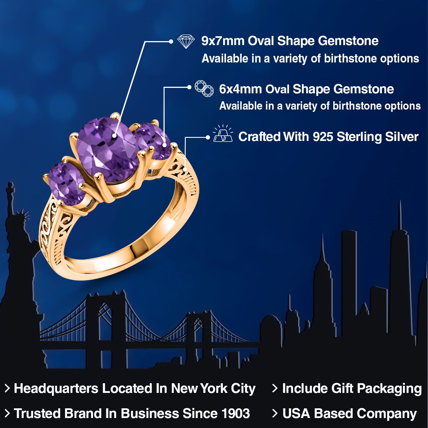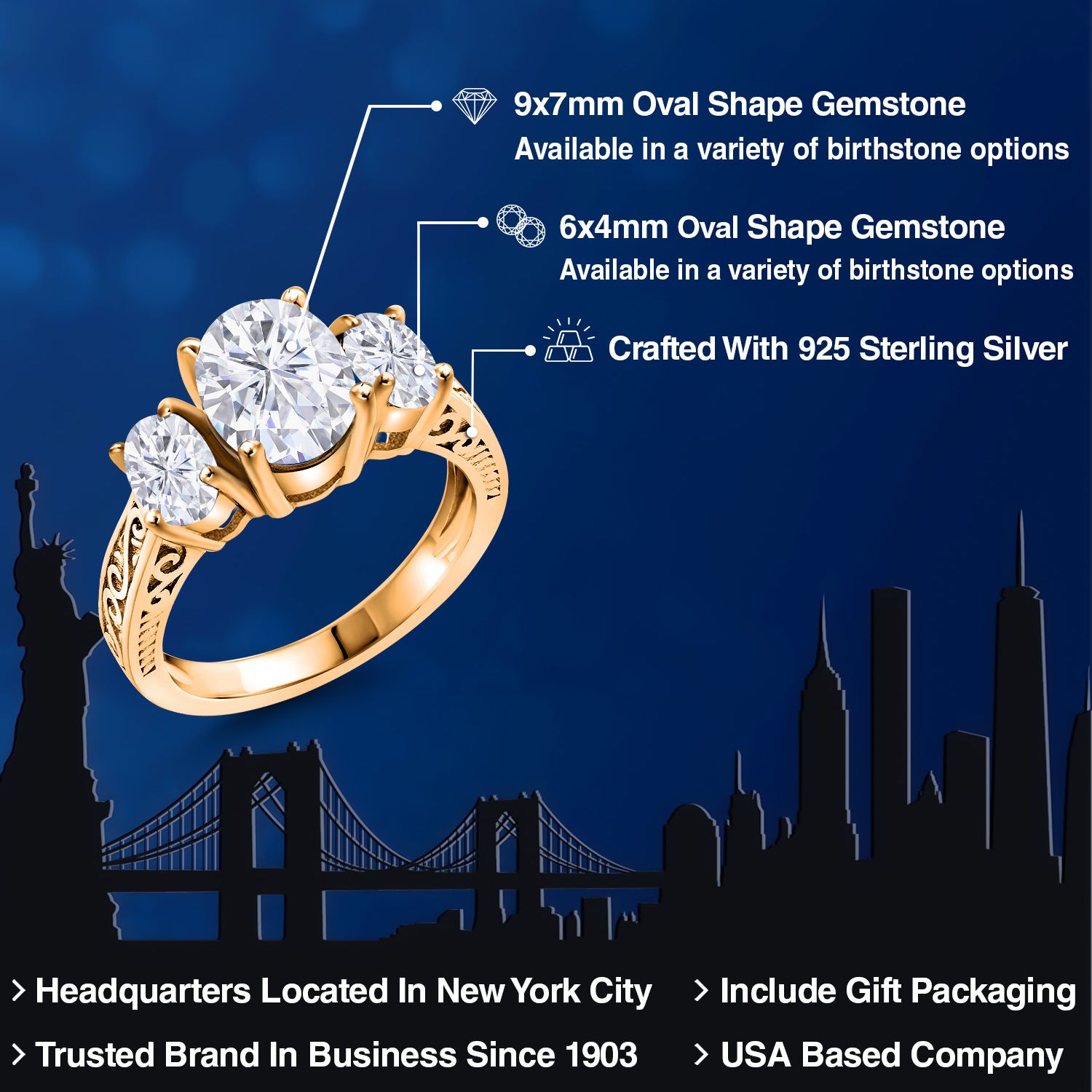 OVAL GEMSTONE BRILLIANCE: This exquisite engagement ring showcases a stunning 9x7MM oval gemstone at its heart, radiating with mesmerizing brilliance and clarity that captures the essence of your love story. Complemented by two 6x4MM side stones, this piece offers an unparalleled sparkle, perfect for celebrating birthdays or anniversaries with birthstone options. The oval shape symbolizes eternity, making it an ideal choice for marking timeless moments in life.