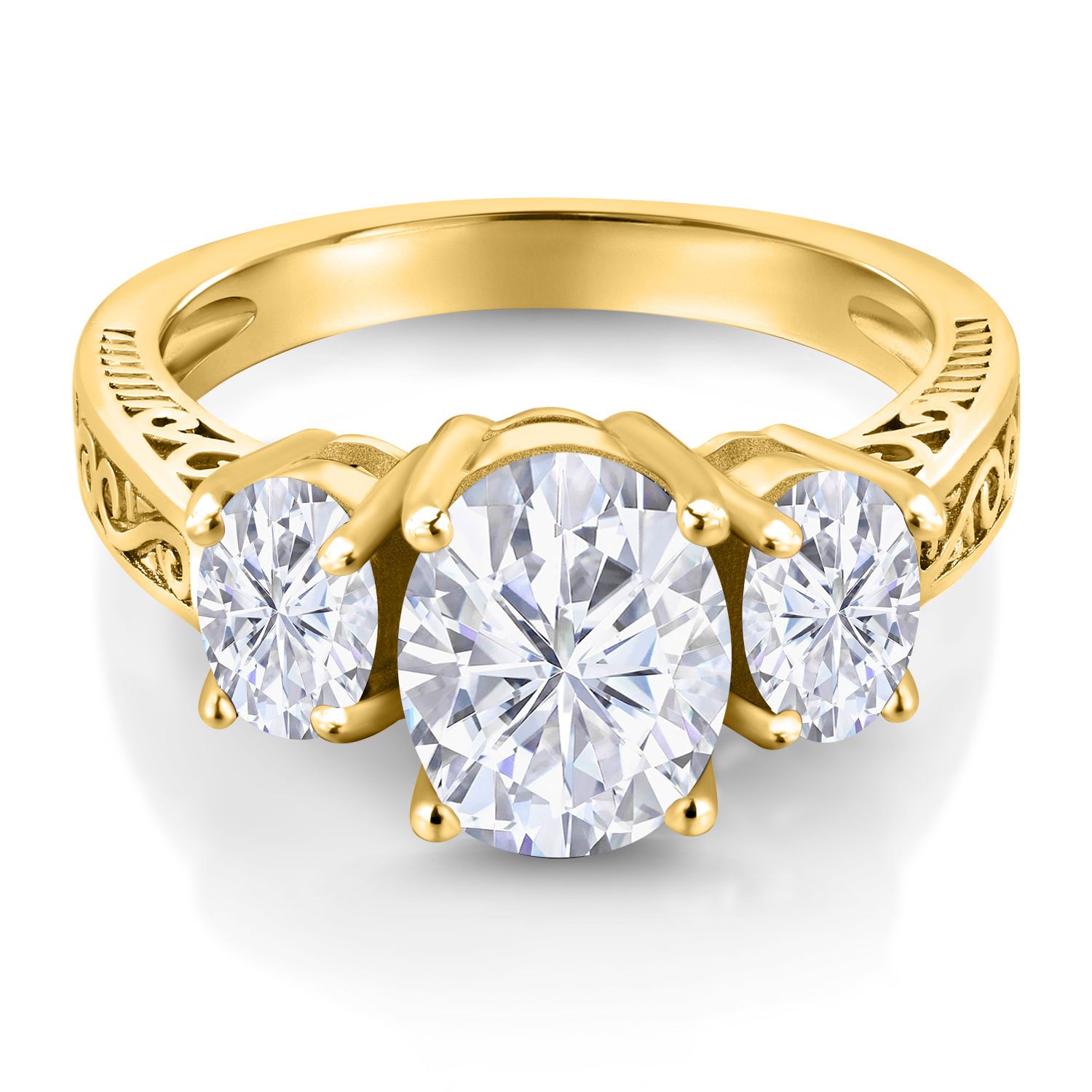 TIMELESS THREE-STONE DESIGN: The timeless three-stone setting of this engagement ring symbolizes the past, present, and future of your journey together. Each gemstone is securely nestled in a masterfully crafted prong setting, ensuring maximum light reflection and sparkle. The attention to detail in the craftsmanship guarantees a comfortable fit, while the classic design makes it versatile enough to pair with any outfit, enhancing the wearer's natural beauty.