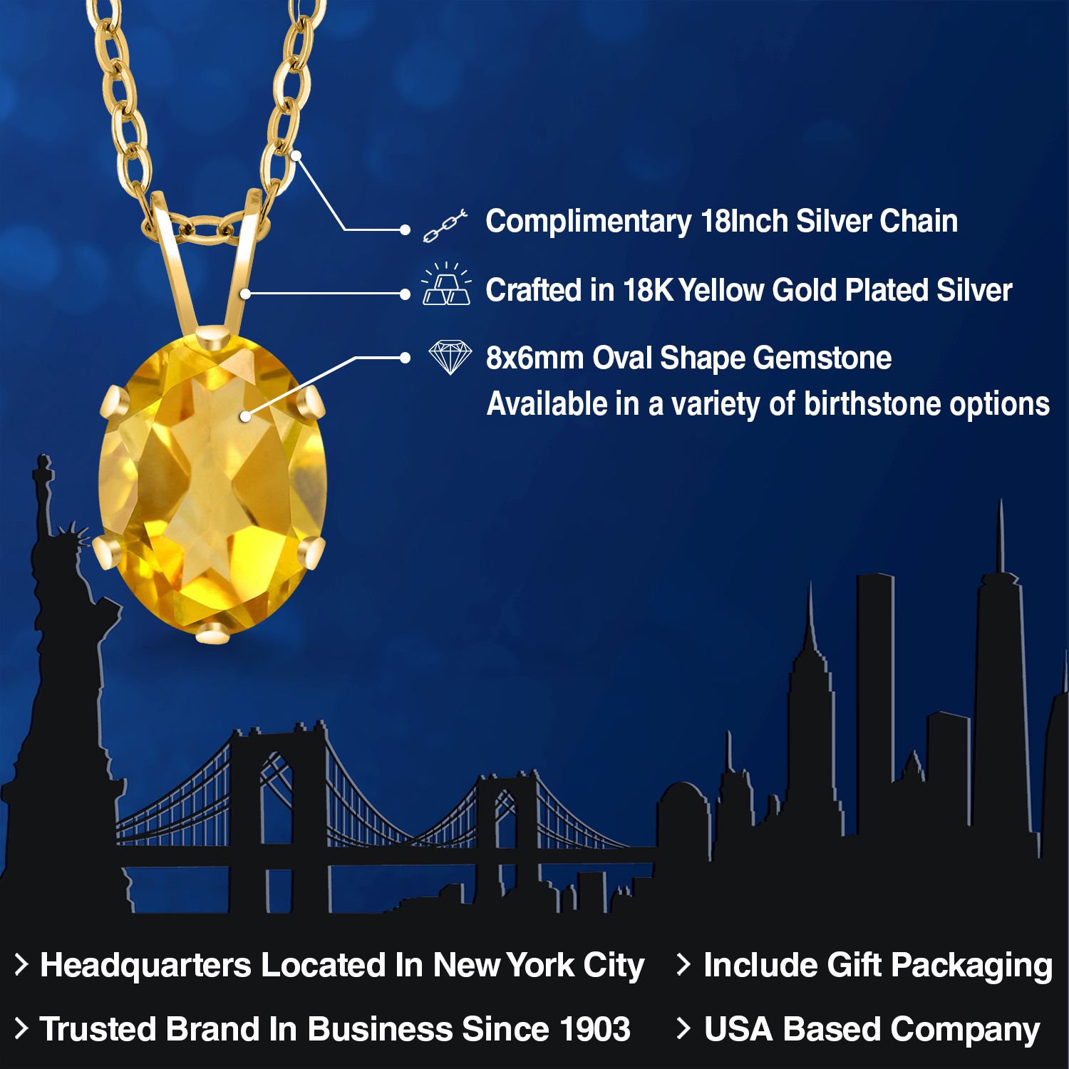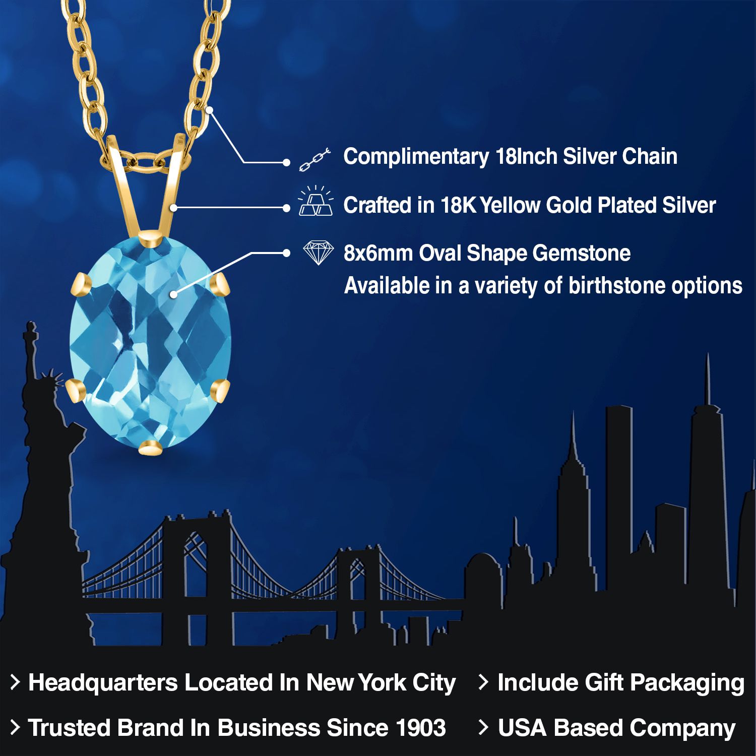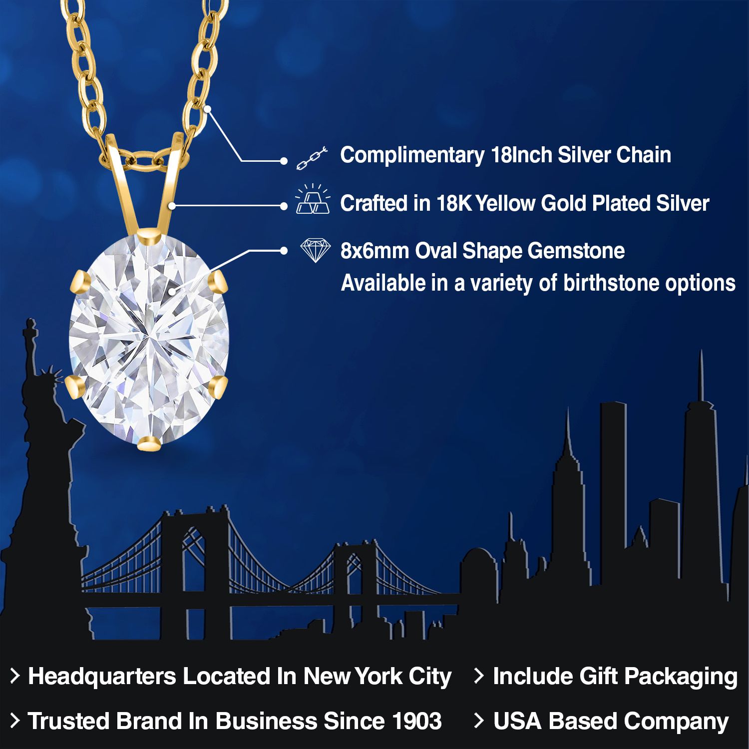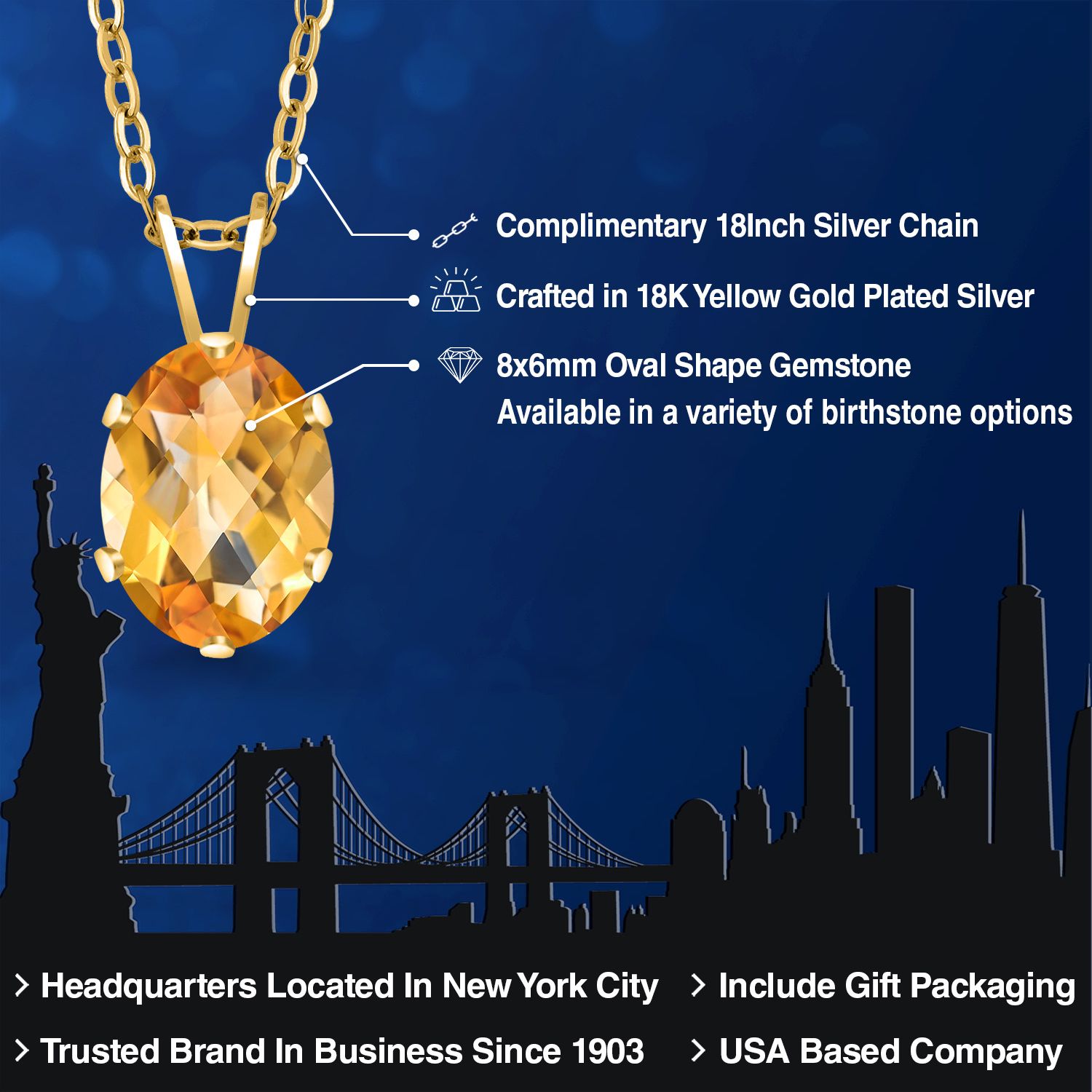 EXQUISITE 18K YELLOW GOLD PLATING: Elevate your jewelry collection with this sophisticated pendant necklace, featuring an 18K yellow gold plated silver setting that adds a rich, warm glow to the piece. The luxurious plating ensures a lasting shine and provides an upscale look without the upscale price.