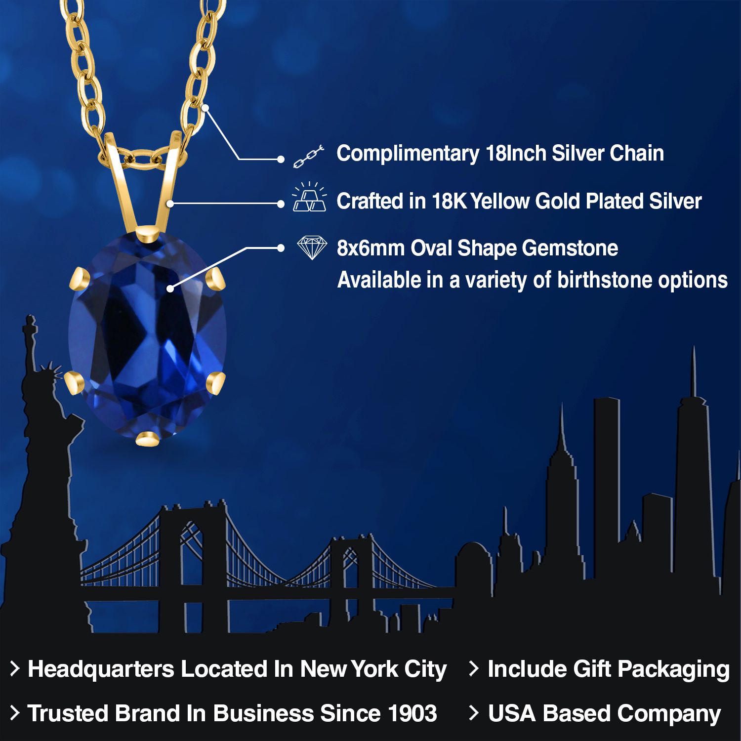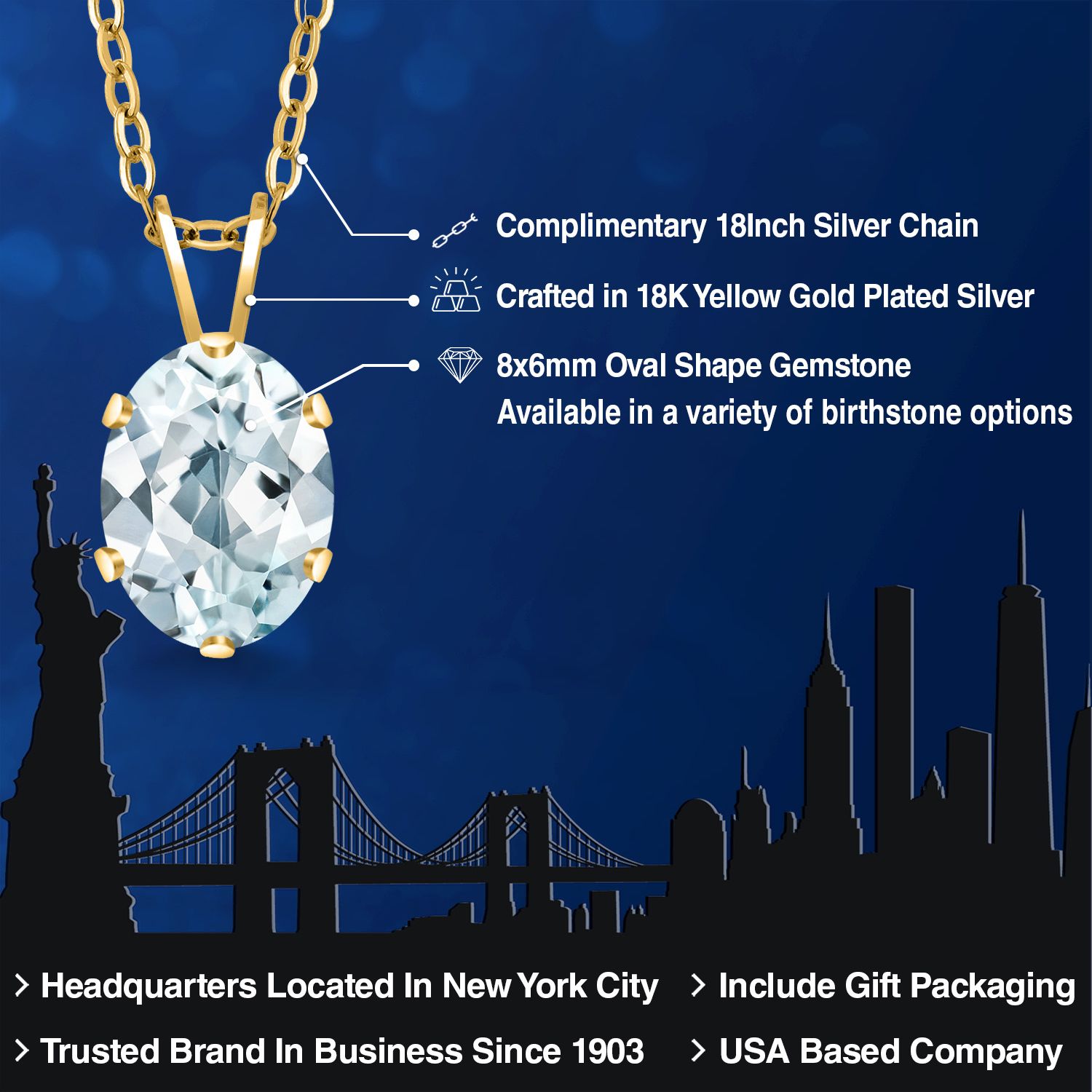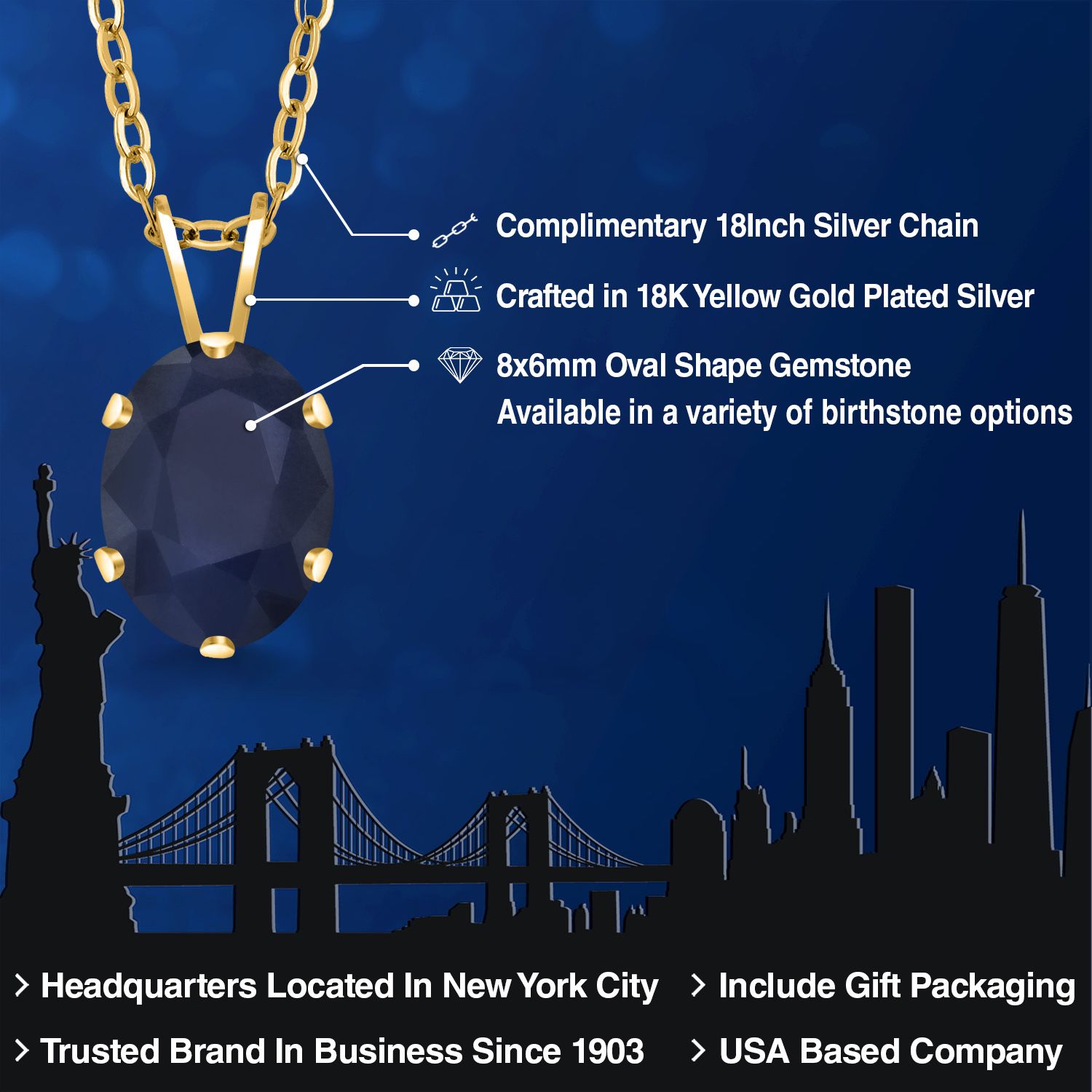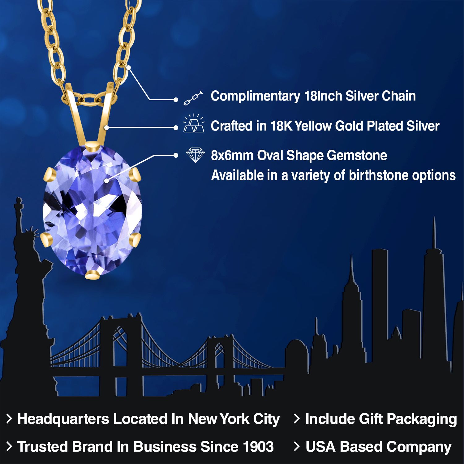 EXQUISITE 18K YELLOW GOLD PLATING: Elevate your jewelry collection with this sophisticated pendant necklace, featuring an 18K yellow gold plated silver setting that adds a rich, warm glow to the piece. The luxurious plating ensures a lasting shine and provides an upscale look without the upscale price.