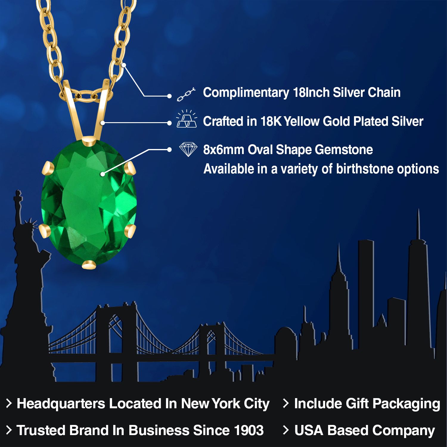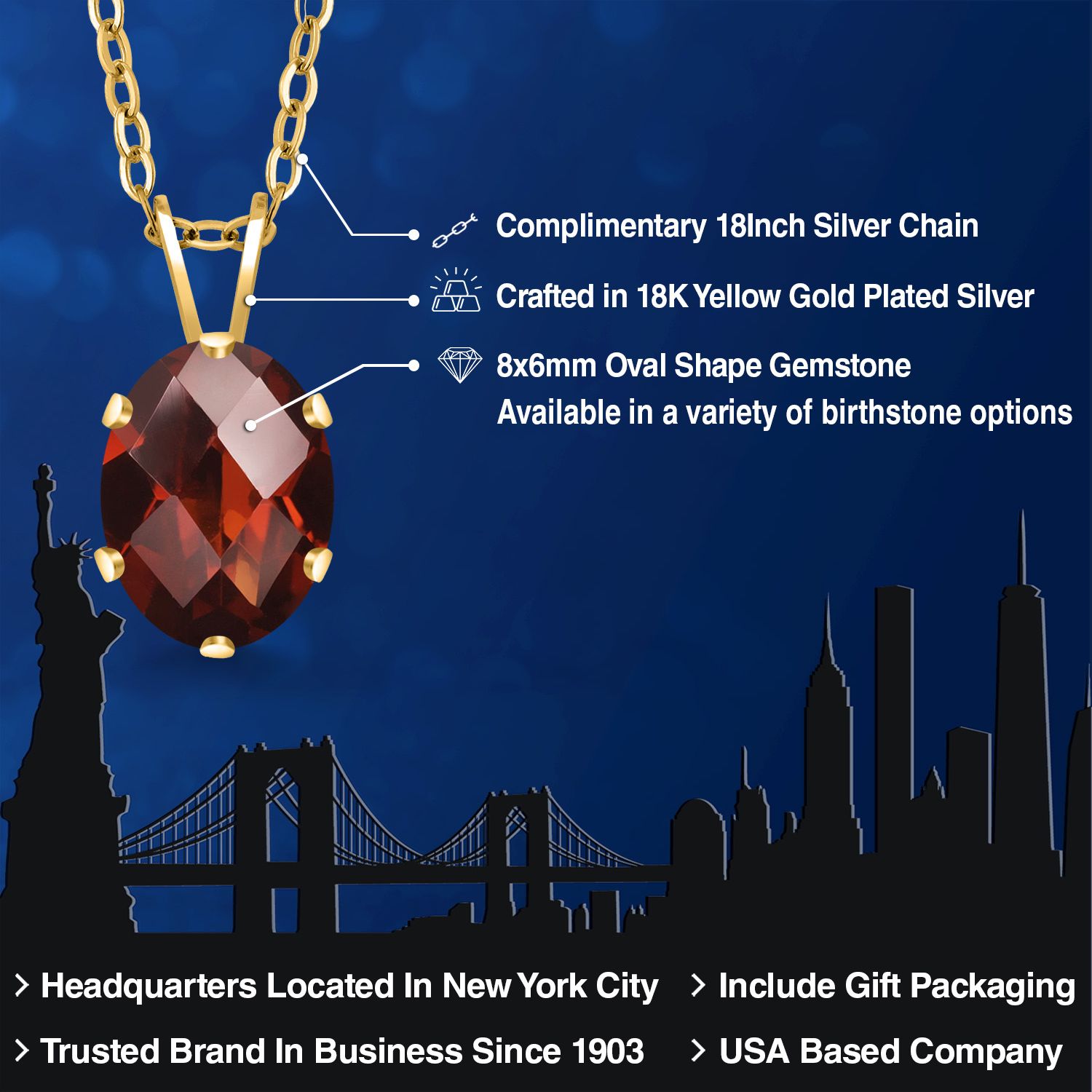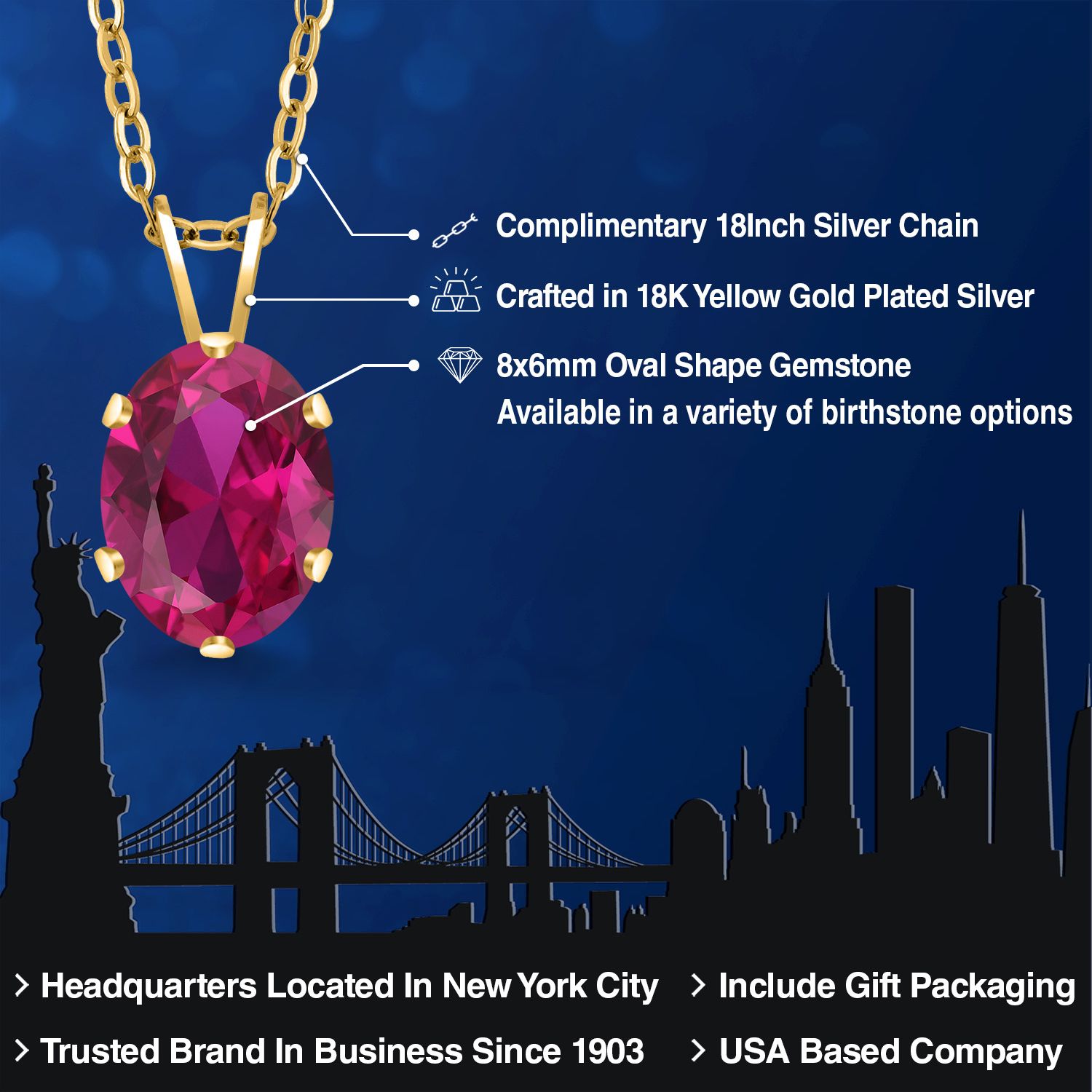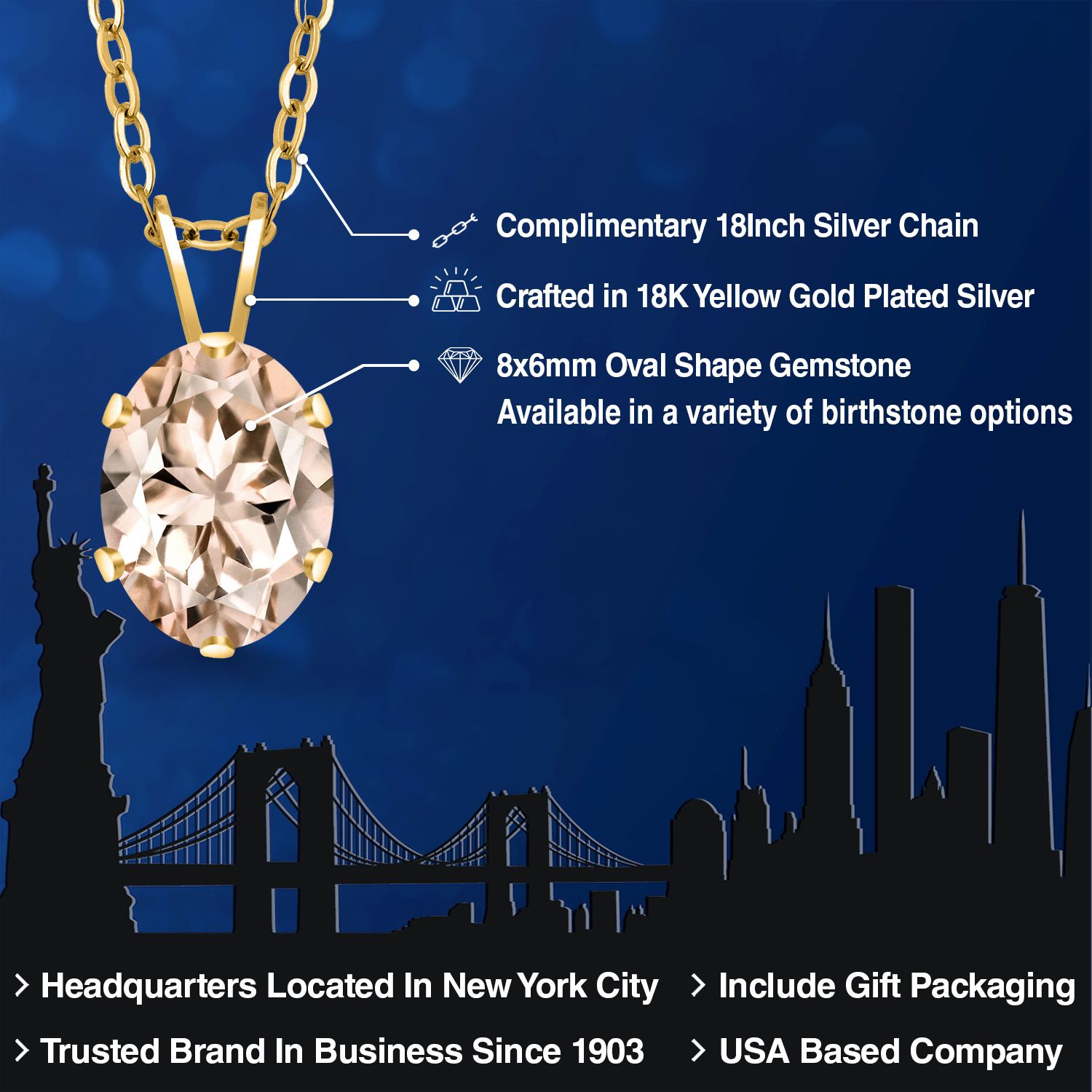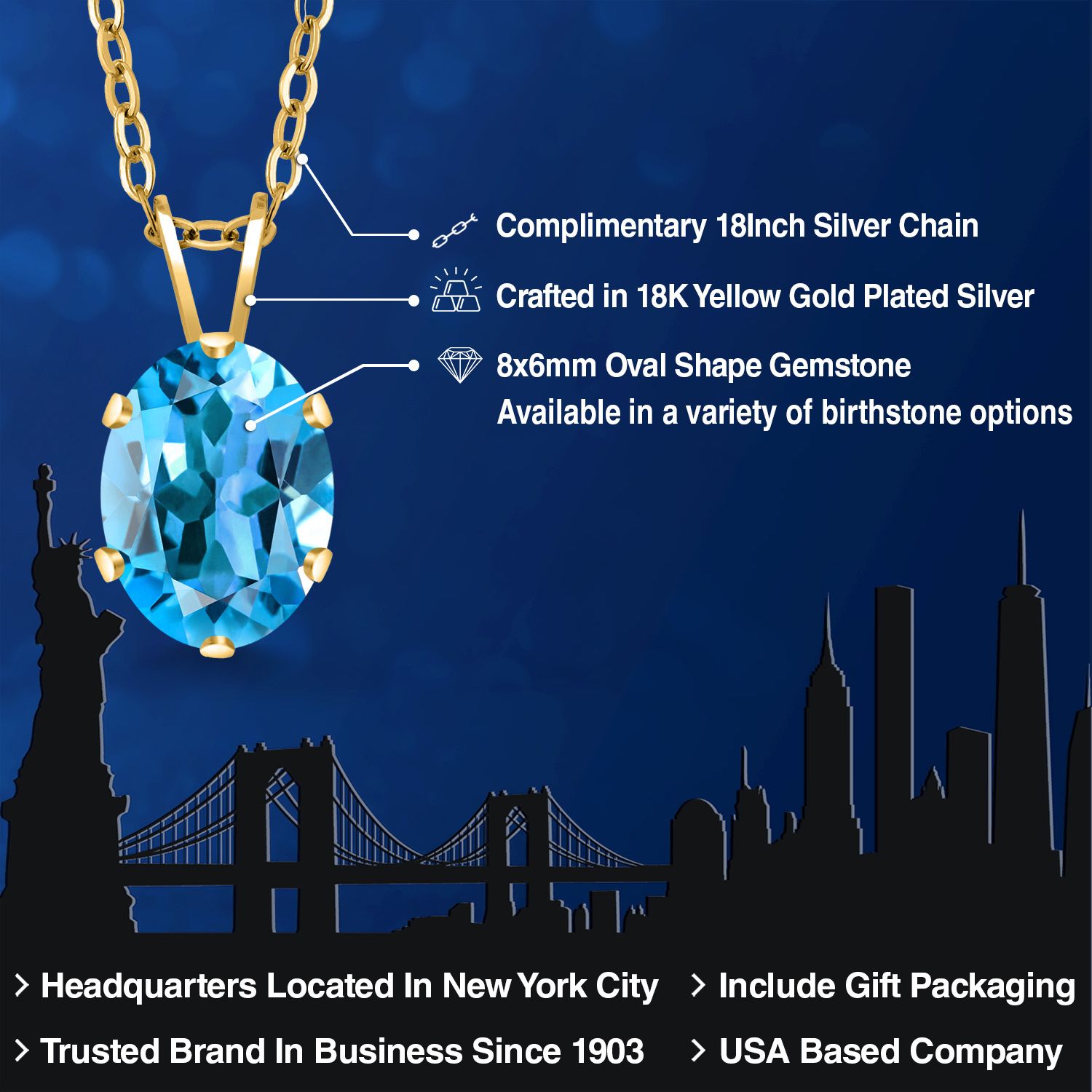 EXQUISITE 18K YELLOW GOLD PLATING: Elevate your jewelry collection with this sophisticated pendant necklace, featuring an 18K yellow gold plated silver setting that adds a rich, warm glow to the piece. The luxurious plating ensures a lasting shine and provides an upscale look without the upscale price.