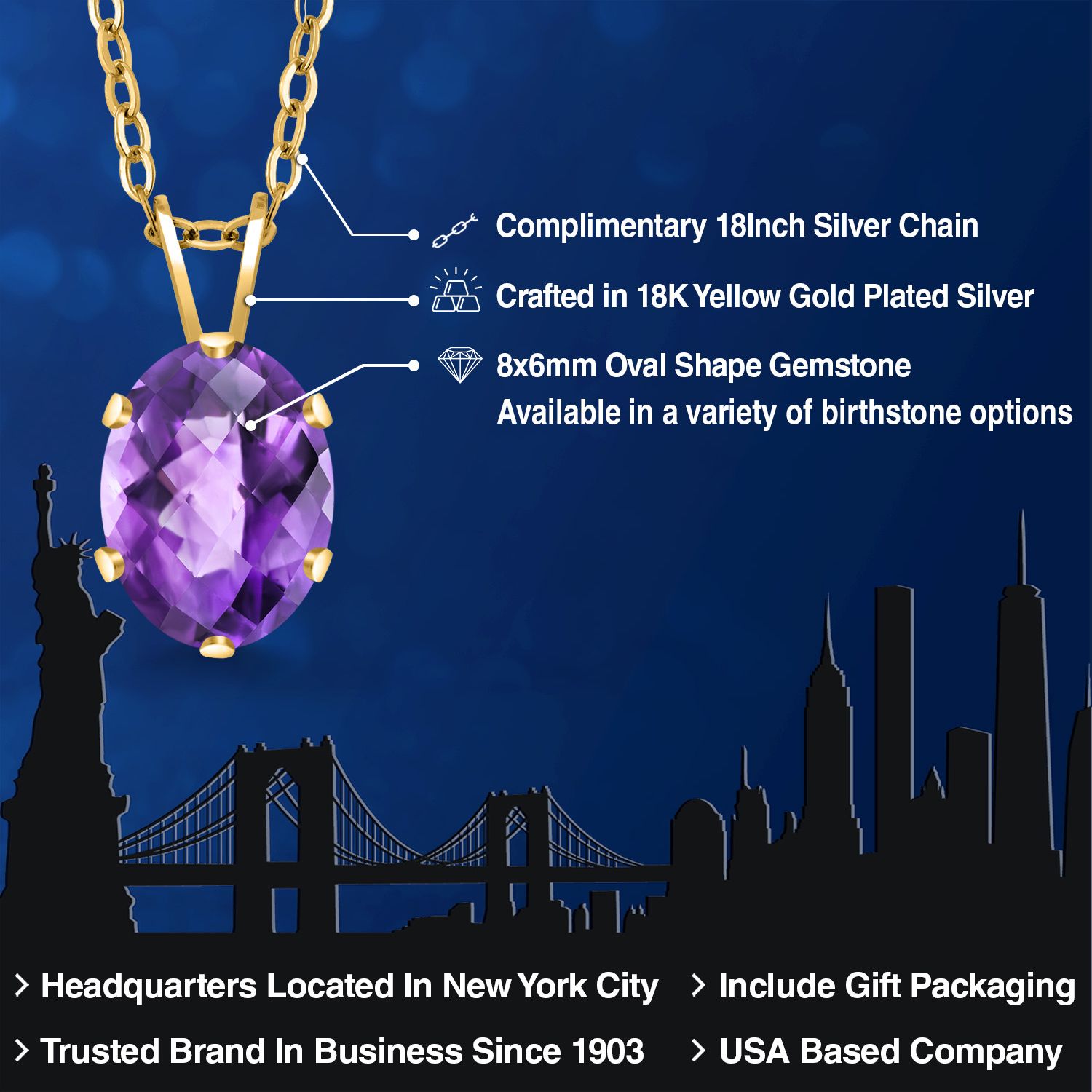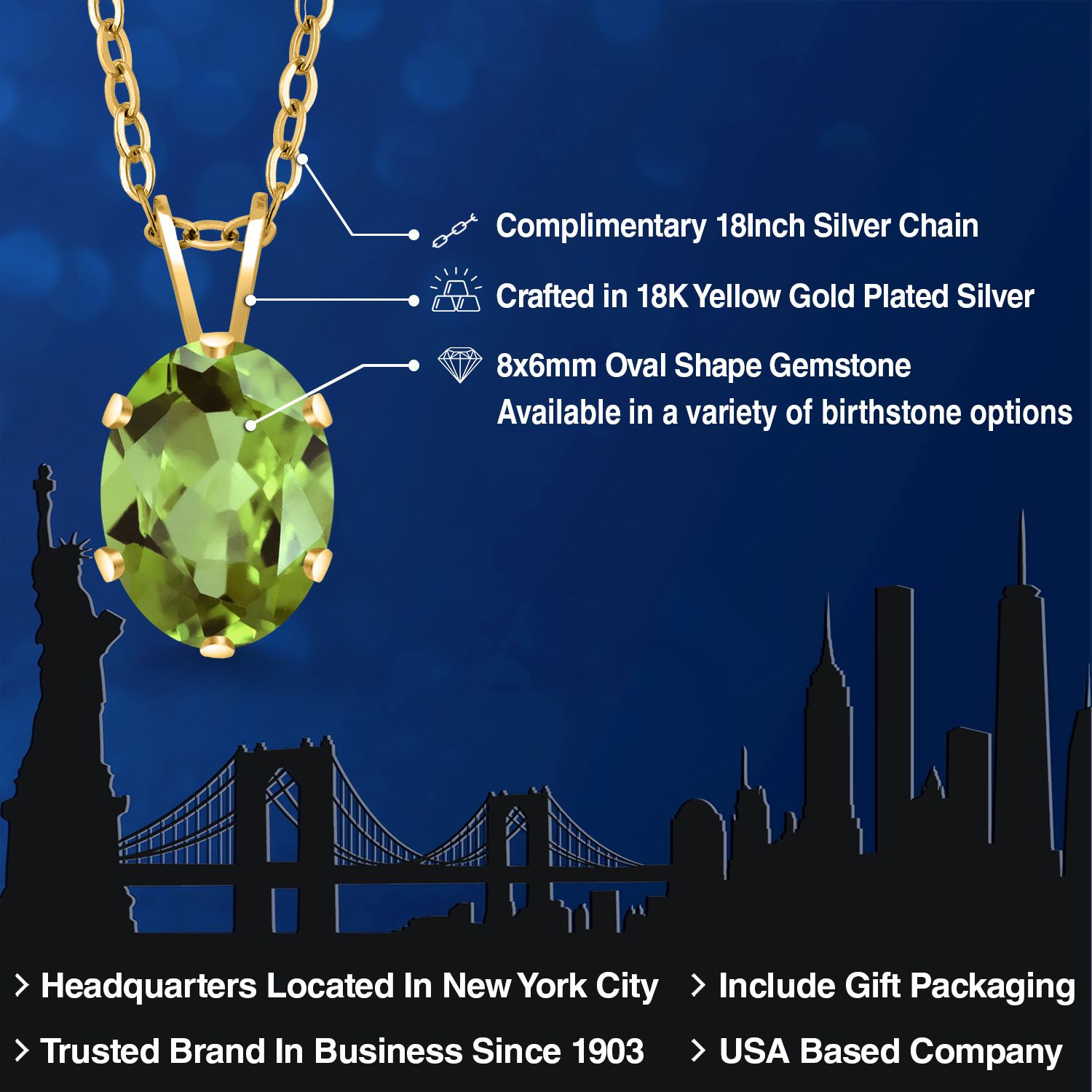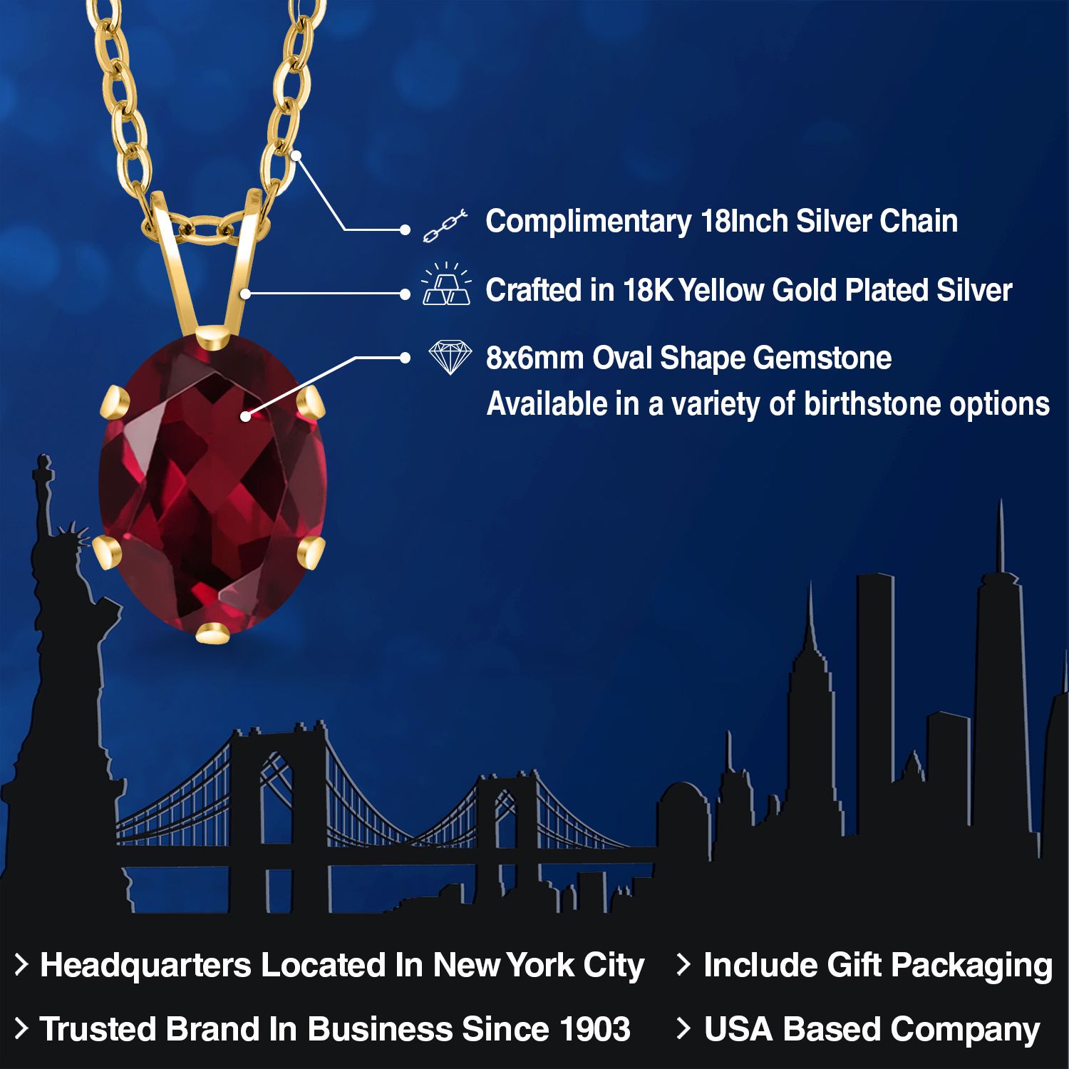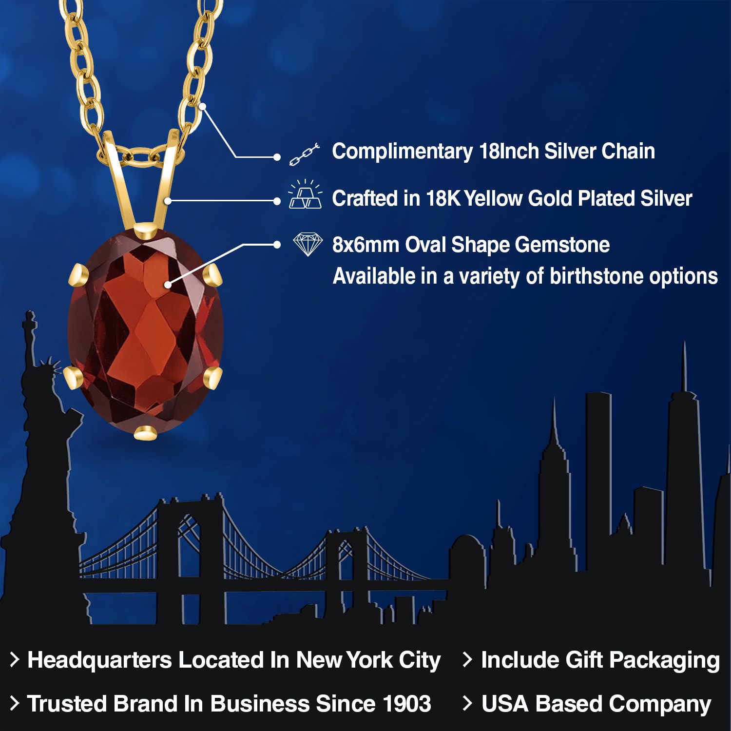 EXQUISITE 18K YELLOW GOLD PLATING: Elevate your jewelry collection with this sophisticated pendant necklace, featuring an 18K yellow gold plated silver setting that adds a rich, warm glow to the piece. The luxurious plating ensures a lasting shine and provides an upscale look without the upscale price.