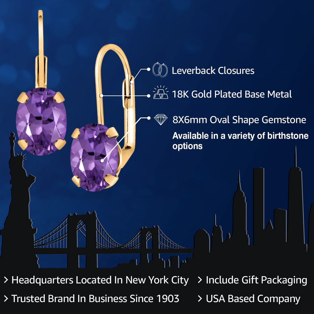 EXQUISITE GEMSTONE BIRTHSTONE DESIGN: These leverback dangle earrings boast stunning oval 8x6mm gemstones, each representing a different birthstone month. From vibrant emeralds for May to fiery rubies for July, these earrings offer a personalized touch, making them the perfect gift for birthdays or special occasions.