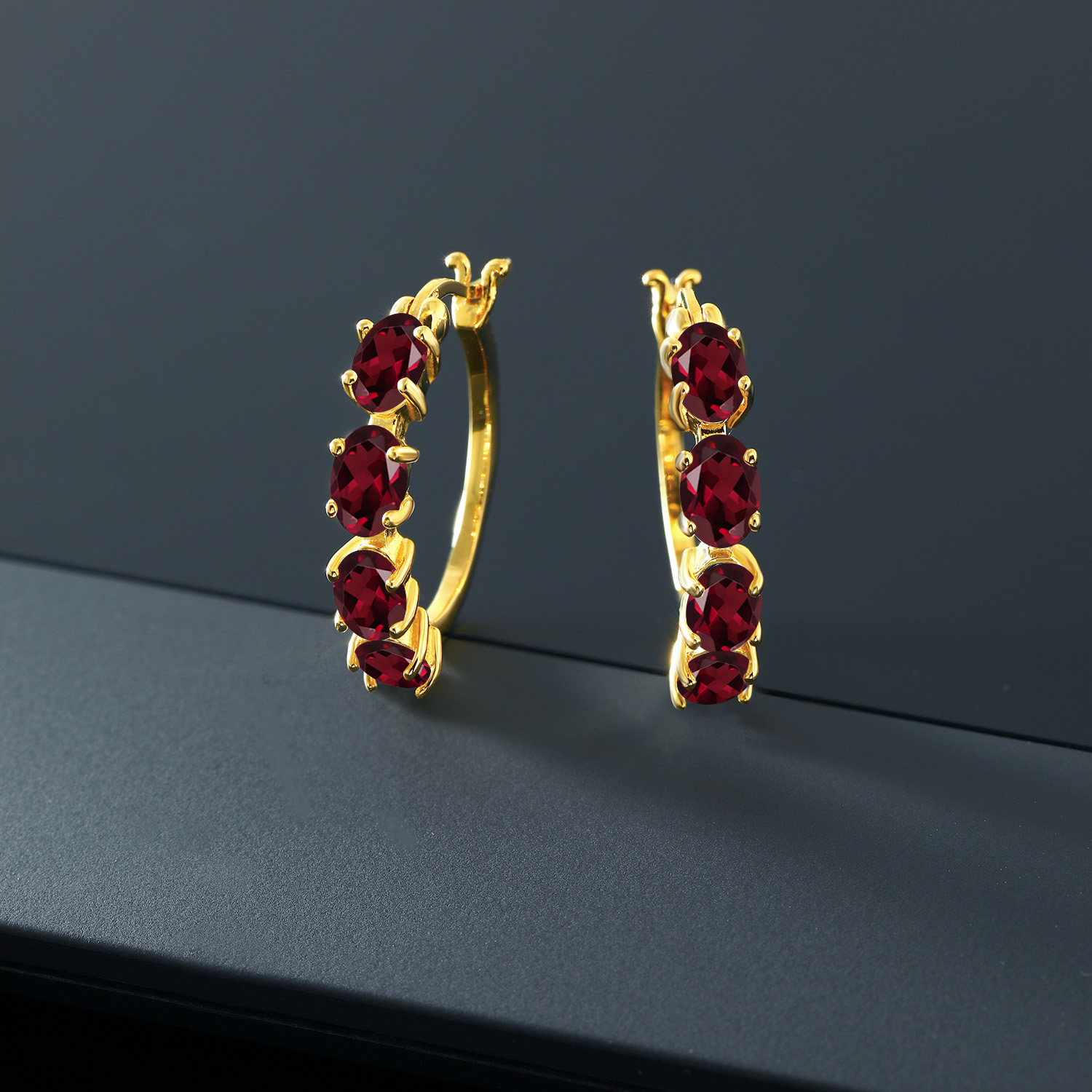 ELEGANT OVAL GEMSTONE DESIGN: Add a touch of sophistication to your look with our stunning hoop earrings crafted from high-quality yellow gold plated silver. The focal point of these earrings is the oval-shaped gemstone birthstone, measuring 6x4mm. The elegant oval design offers a classic and timeless appeal, making these earrings perfect for both casual and formal occasions.
