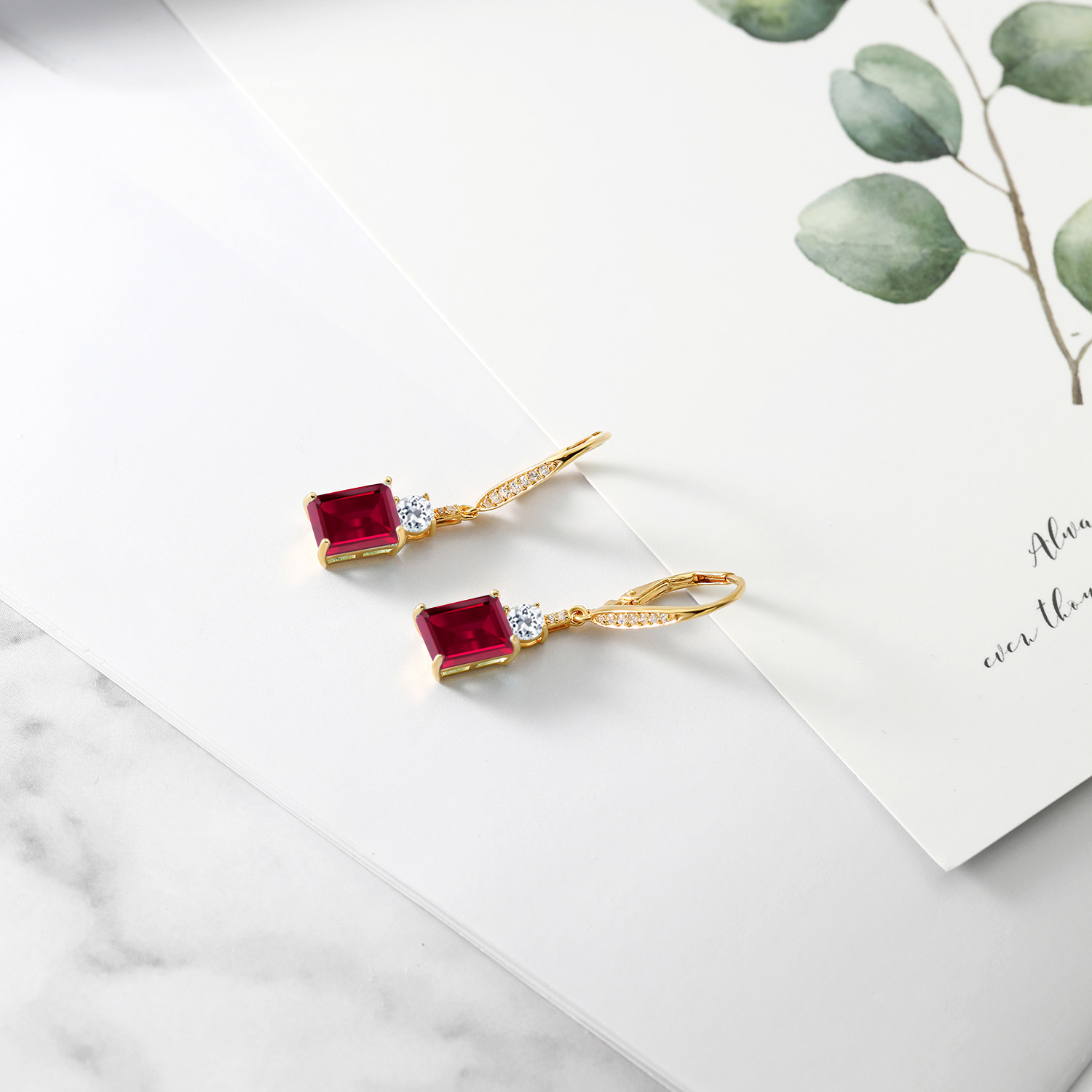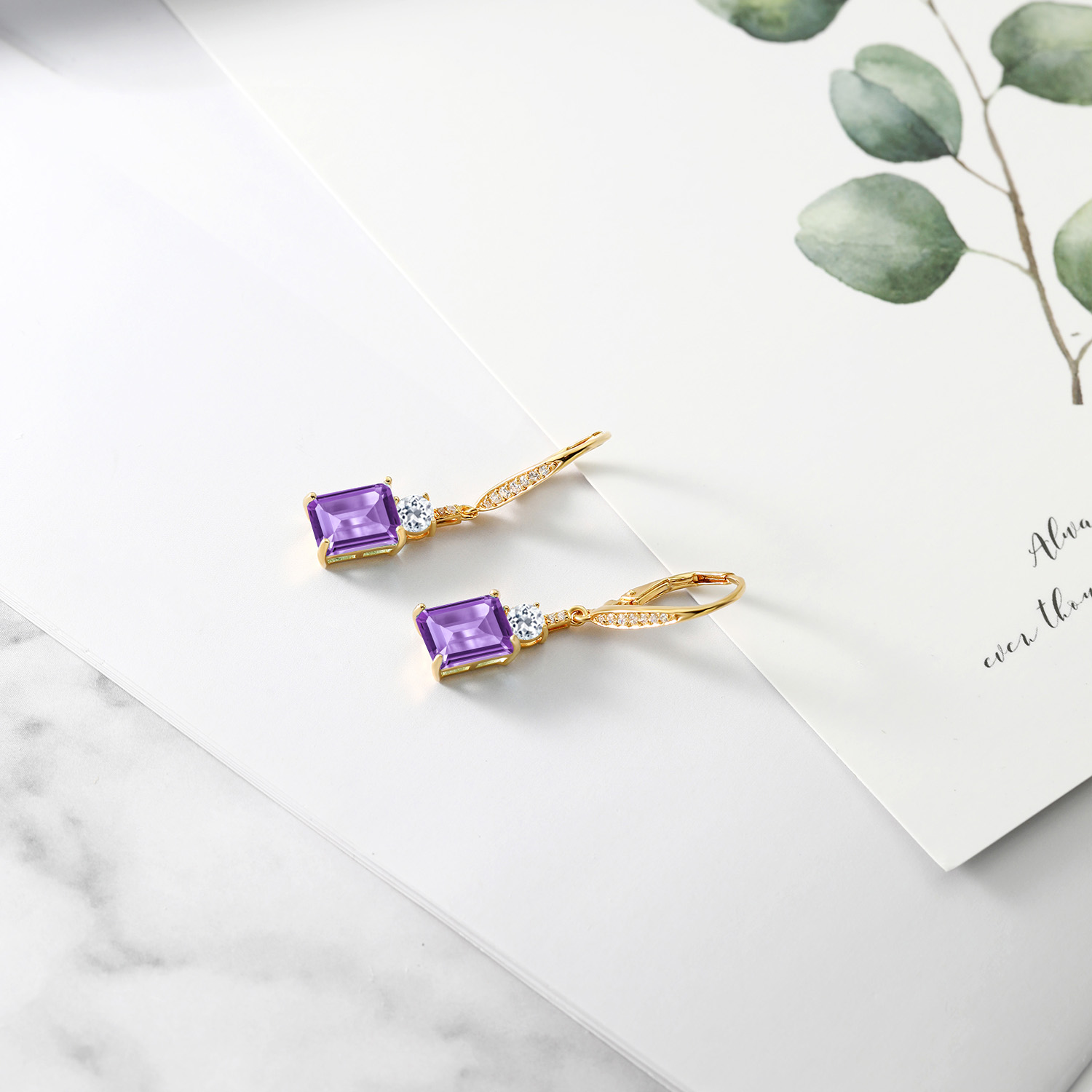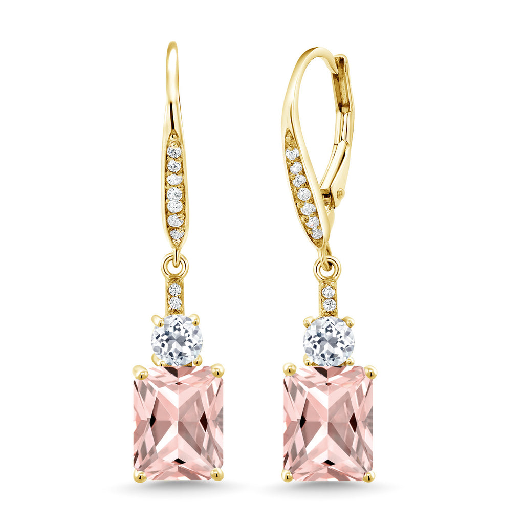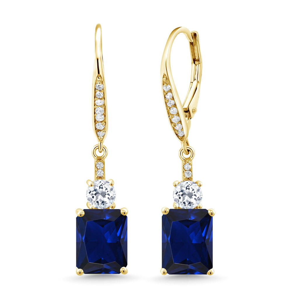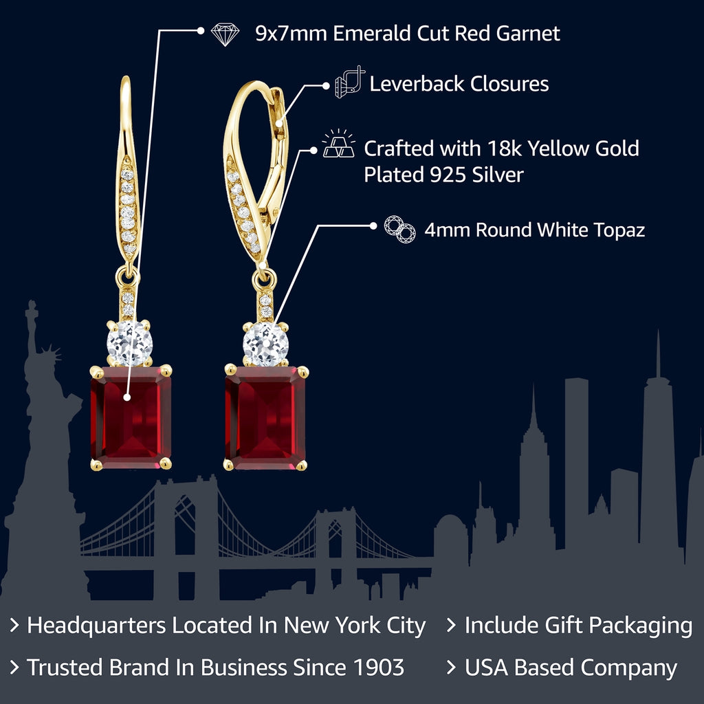 4-6 Cttw Dangle Earrings for Women | Gemstone Birthstone and White Topaz | 18K Yellow Gold Plated Silver | Emerald Cut 9X7MM | Elegant Drop Design | Gift for Her Wife Mom
