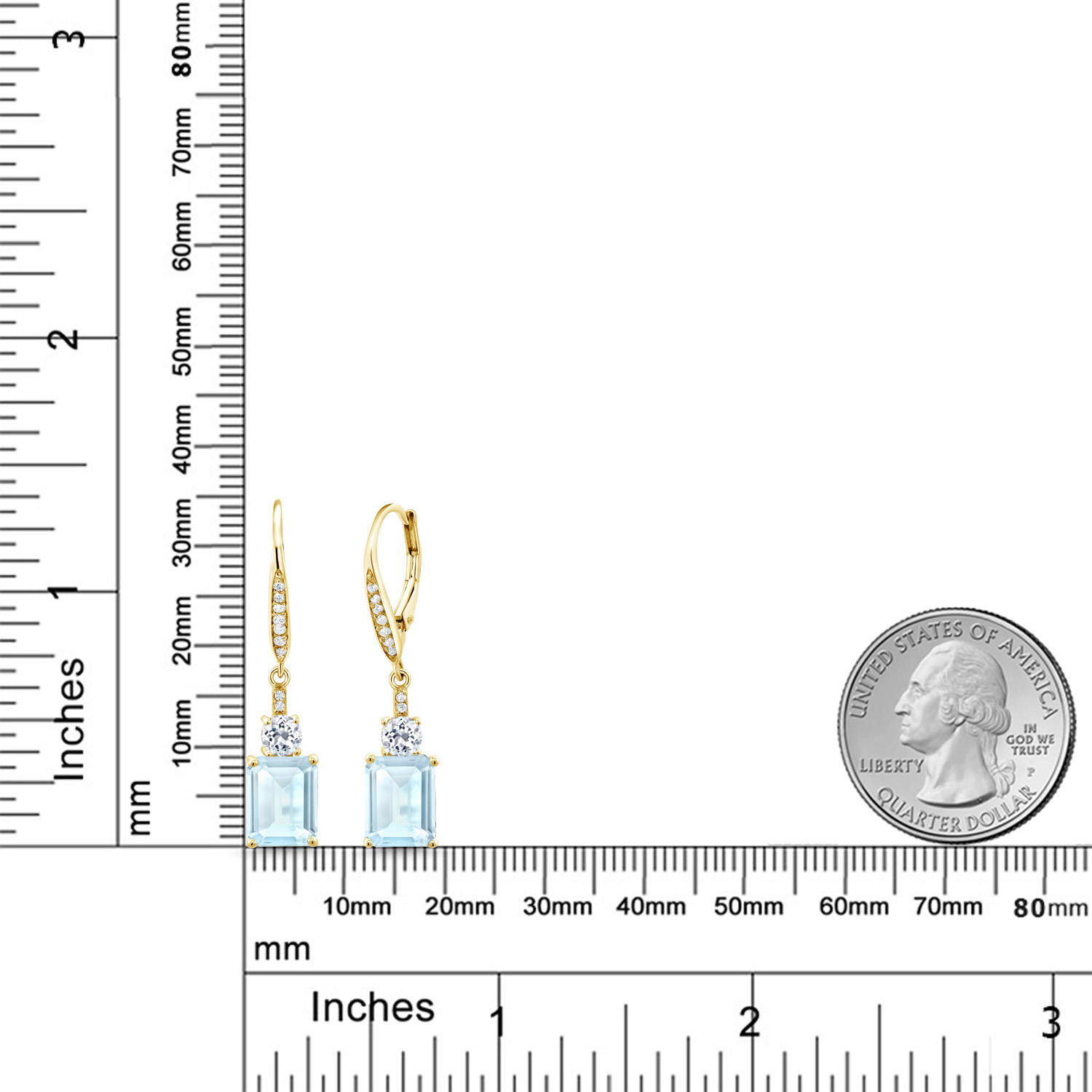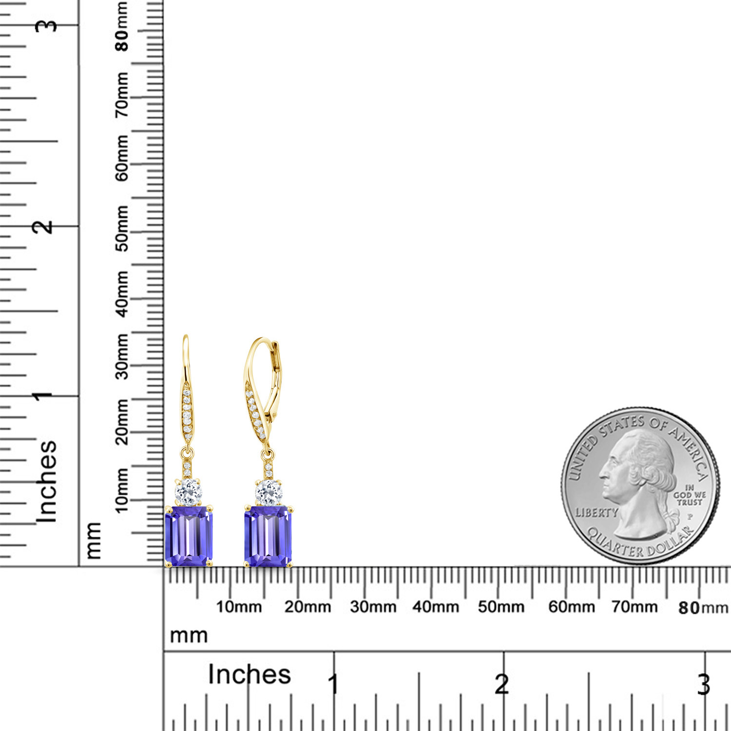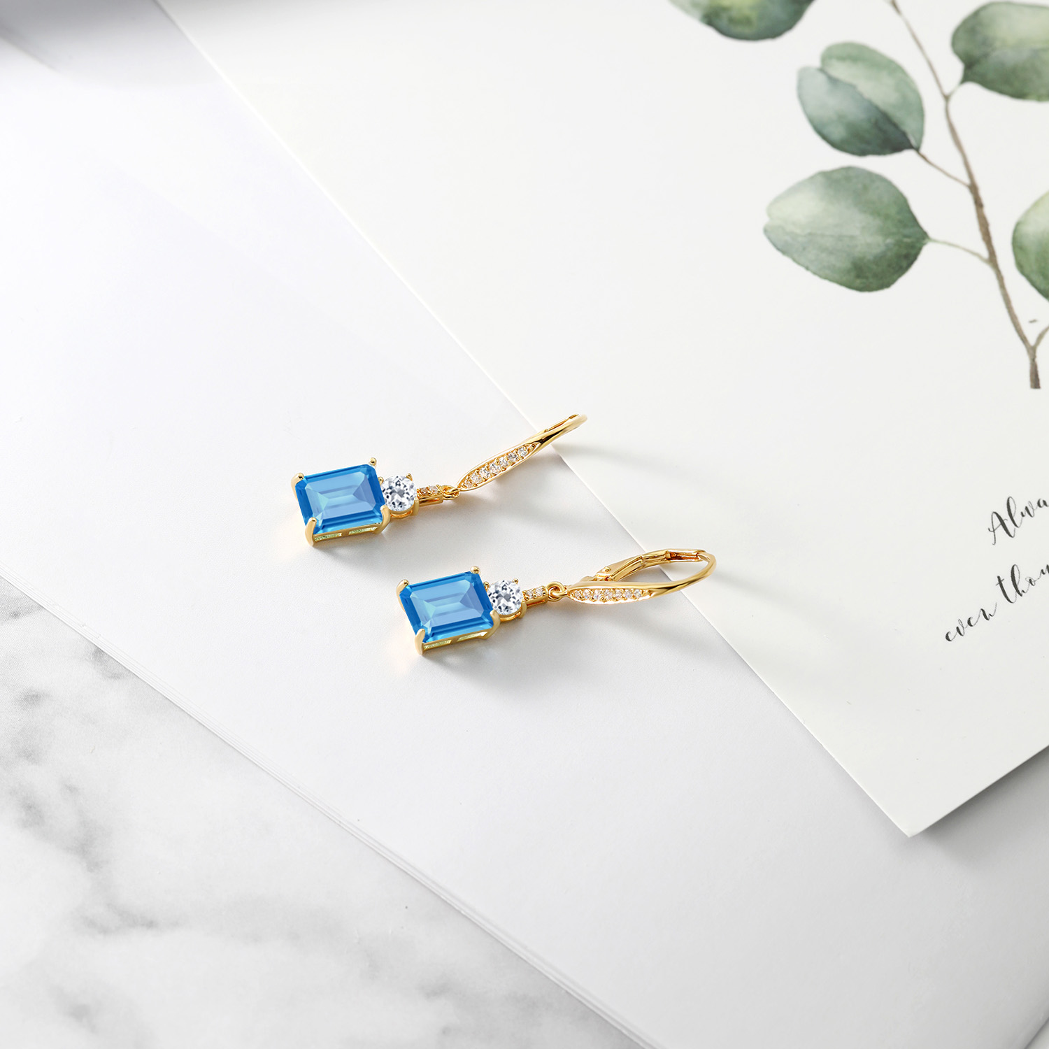DAZZLING WHITE TOPAZ ACCENTS: Complementing the main gemstone, 4MM round white topaz accents add an unprecedented sparkle that elevates the overall design. These stones are meticulously set, showcasing the artisan craftsmanship in every detail. The contrast between the emerald cut and round accents emanates a harmonious balance, transforming the elegant drop design into a symphony of glittering sophistication suitable for any occasion.