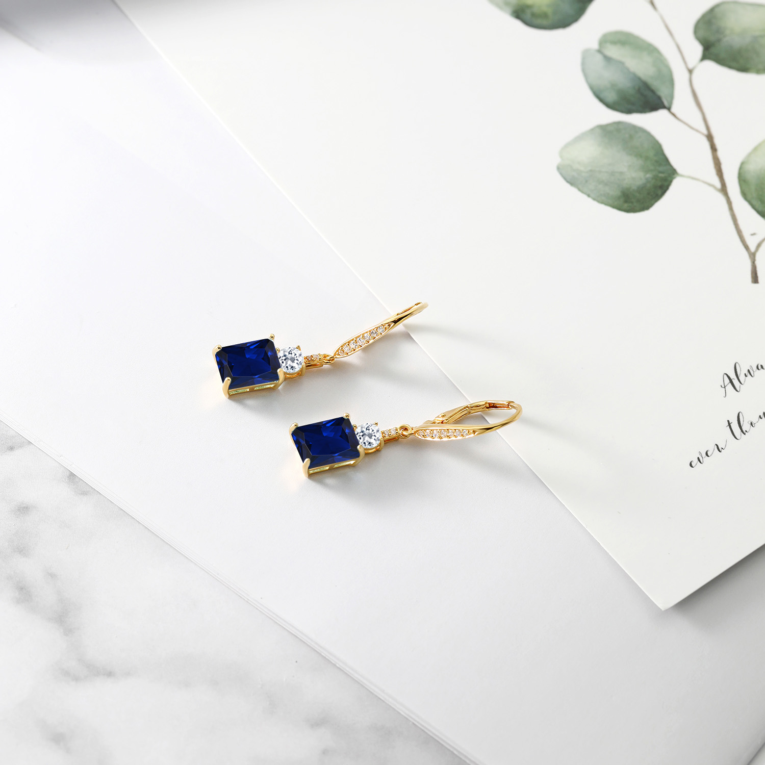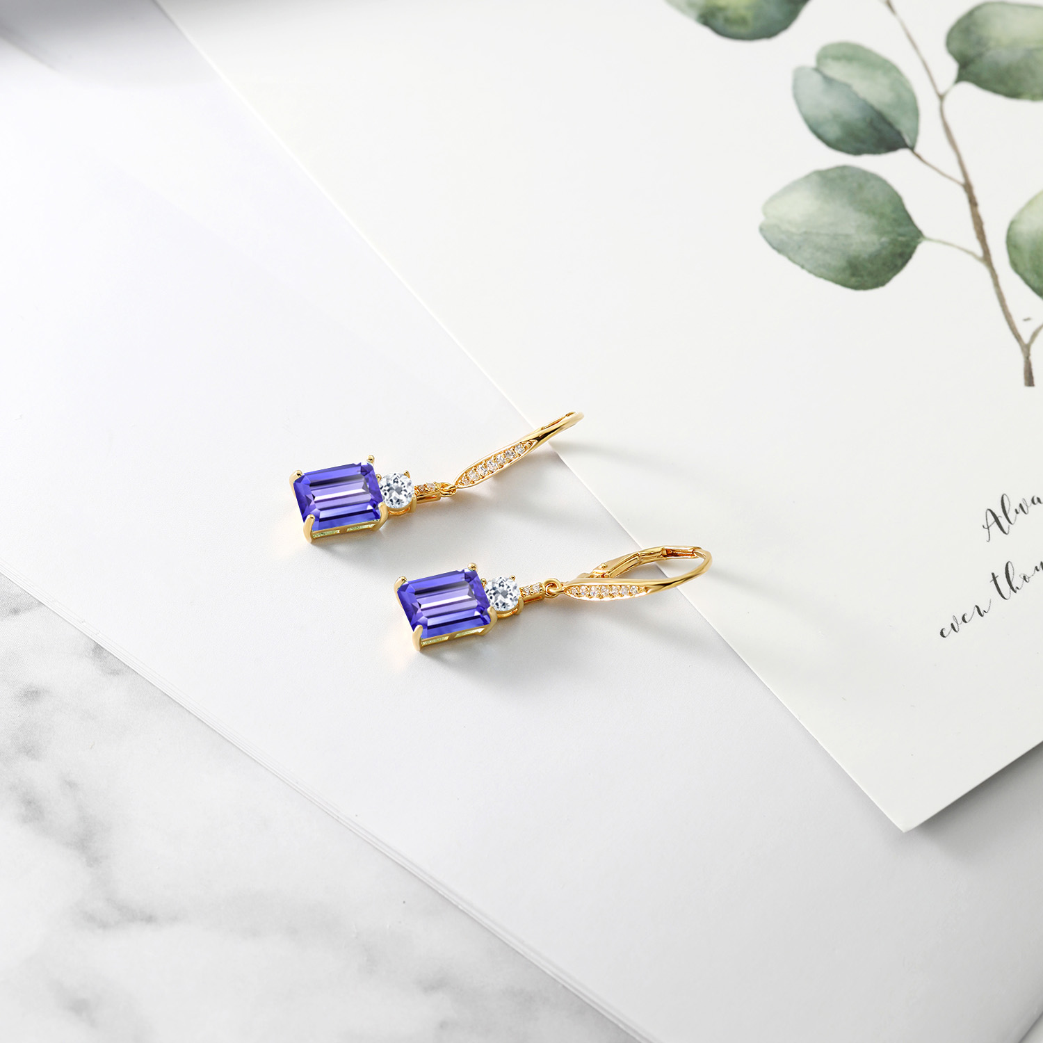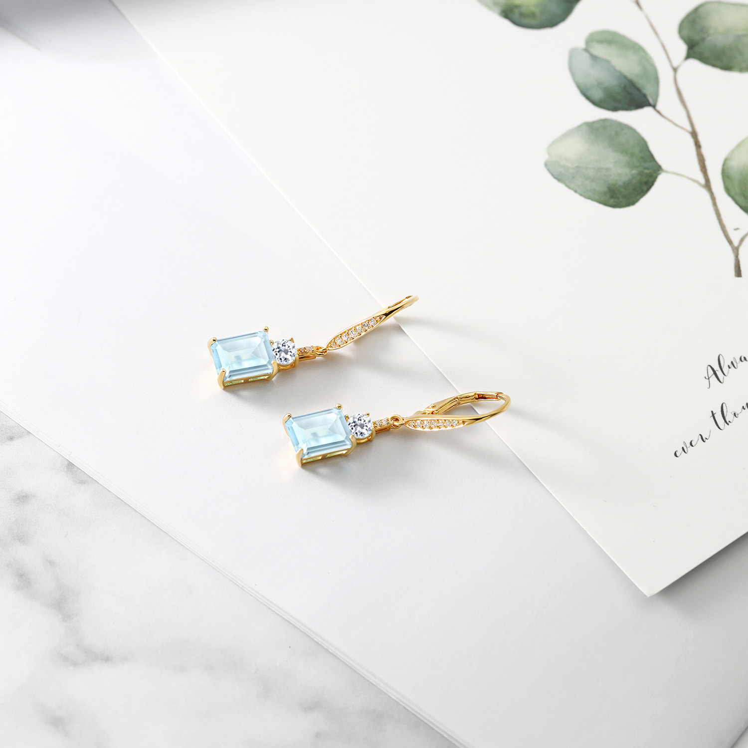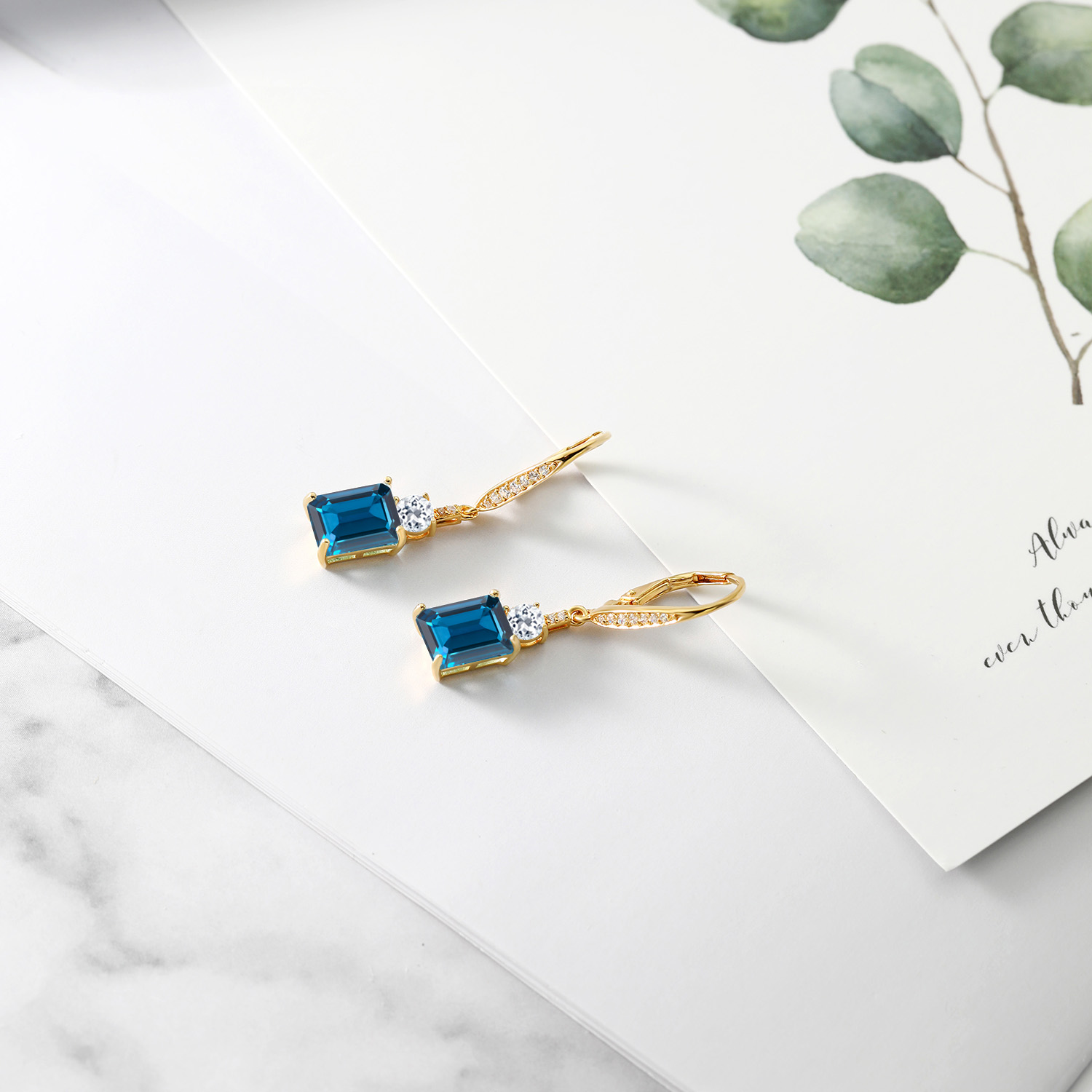 DAZZLING WHITE TOPAZ ACCENTS: Complementing the main gemstone, 4MM round white topaz accents add an unprecedented sparkle that elevates the overall design. These stones are meticulously set, showcasing the artisan craftsmanship in every detail. The contrast between the emerald cut and round accents emanates a harmonious balance, transforming the elegant drop design into a symphony of glittering sophistication suitable for any occasion.