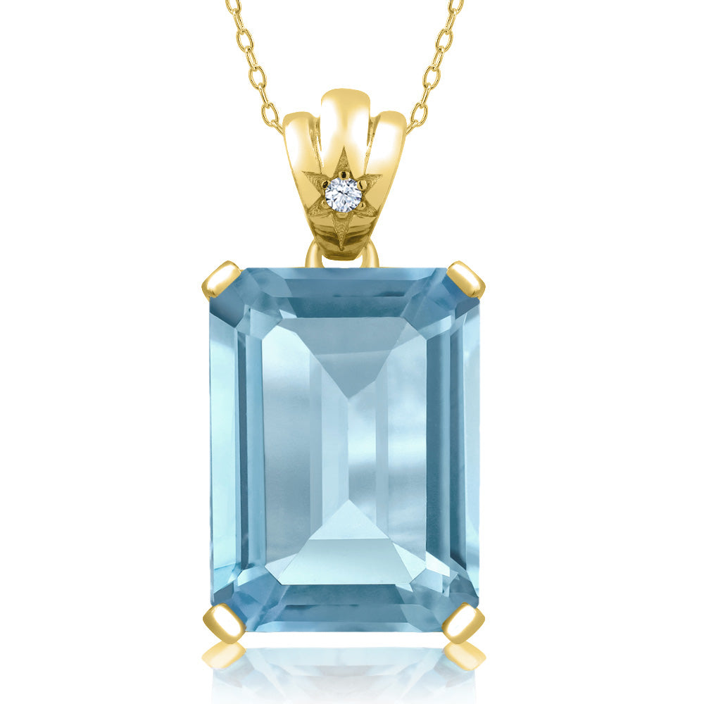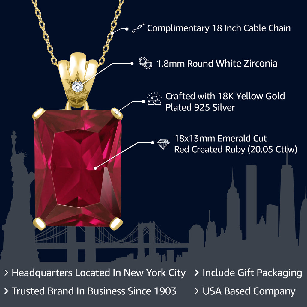 11-20 Cttw Gemstone Birthstone Pendant Necklace For Women | 18K Yellow Gold Plated Silver | Emerald Cut 18X13MM | Round 1.8MM | Fine Jewelry Gifts for Her Mom Wife | 18 Inch Chain
