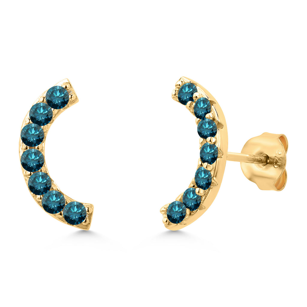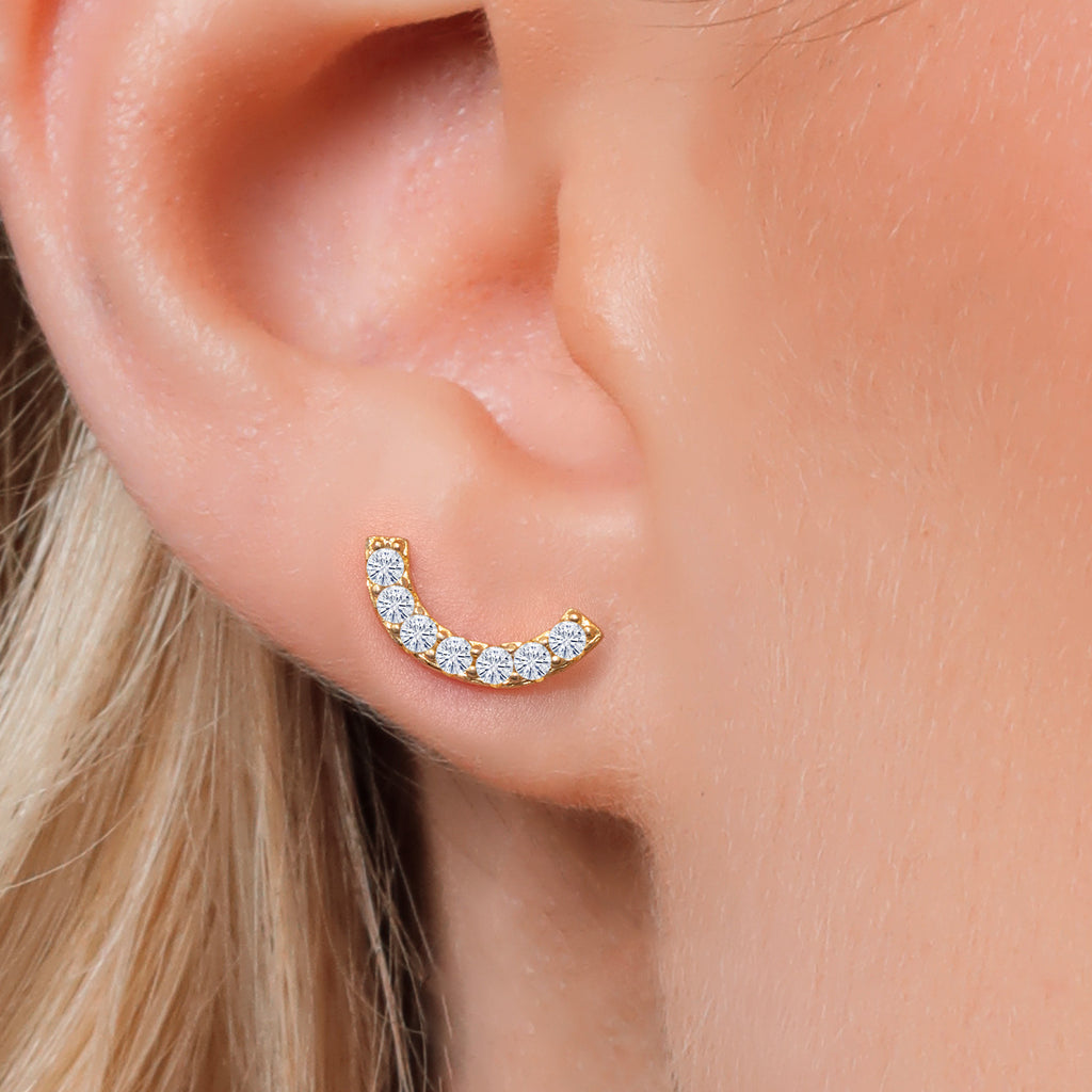 18K Yellow Gold Plated Silver Round 2MM Gemstone Stud Ear Crawler Earrings for Women