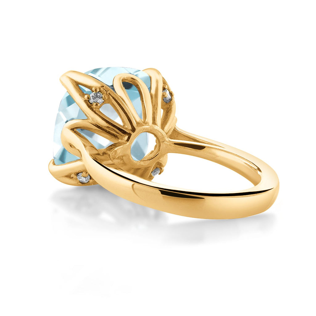 18K Yellow Gold Plated Silver Sky Blue Simulated Aquamarine Engagement Ring For Women (10.98 Cttw, 14MM Cushion, Available in Size 5,6,7,8,9)