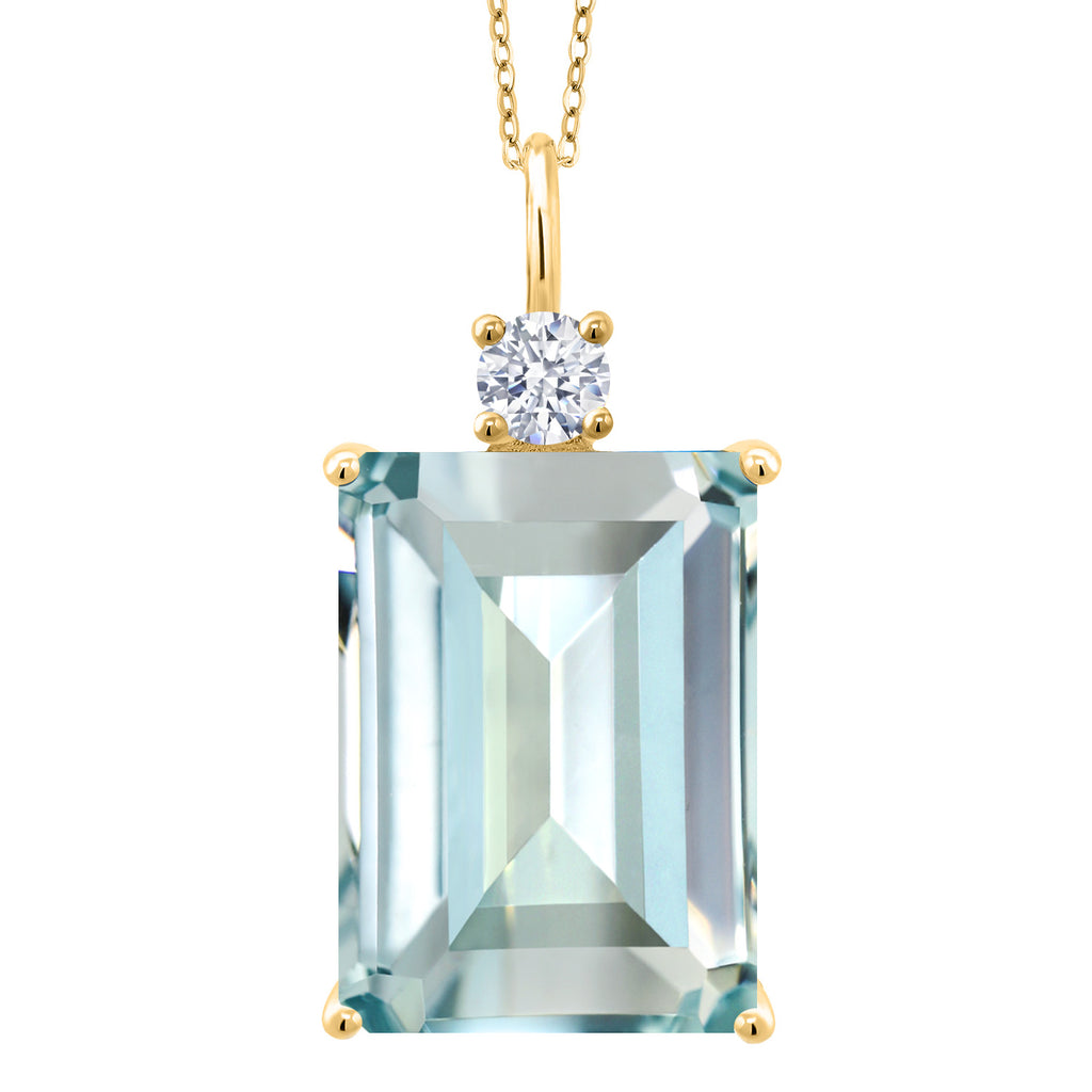 EXQUISITE CRAFTSMANSHIP AND QUALITY: This stunning pendant necklace features a breathtaking 15.80 Cttw sky blue simulated aquamarine gemstone, expertly cut into an impressive 18x13MM emerald shape. Crafted from high-quality 18K yellow gold plated silver, this necklace offers both durability and a luxurious finish that will last a lifetime.