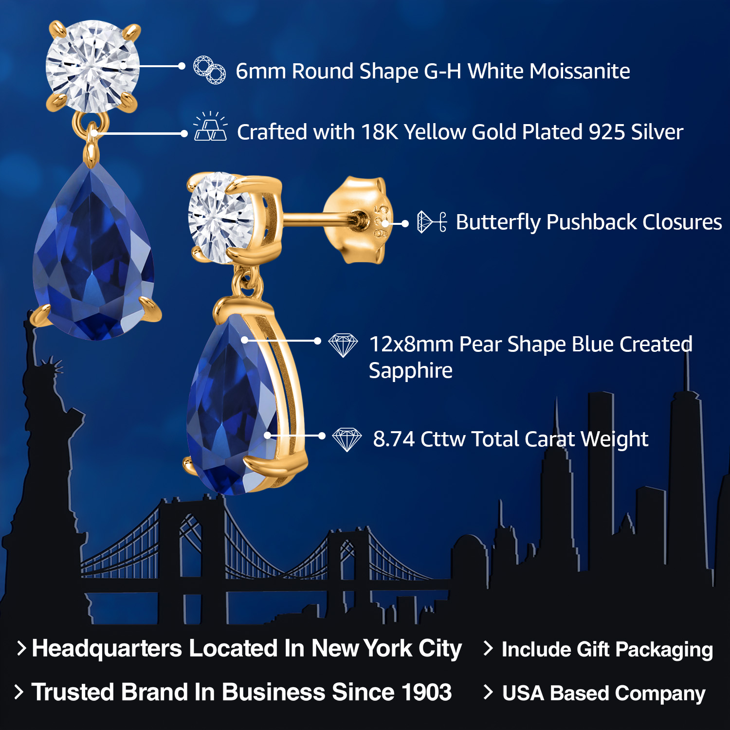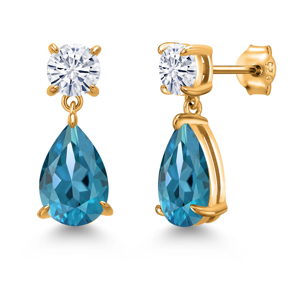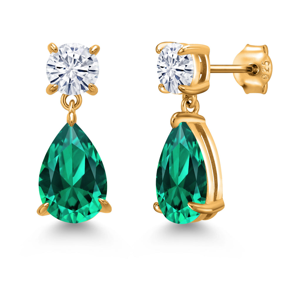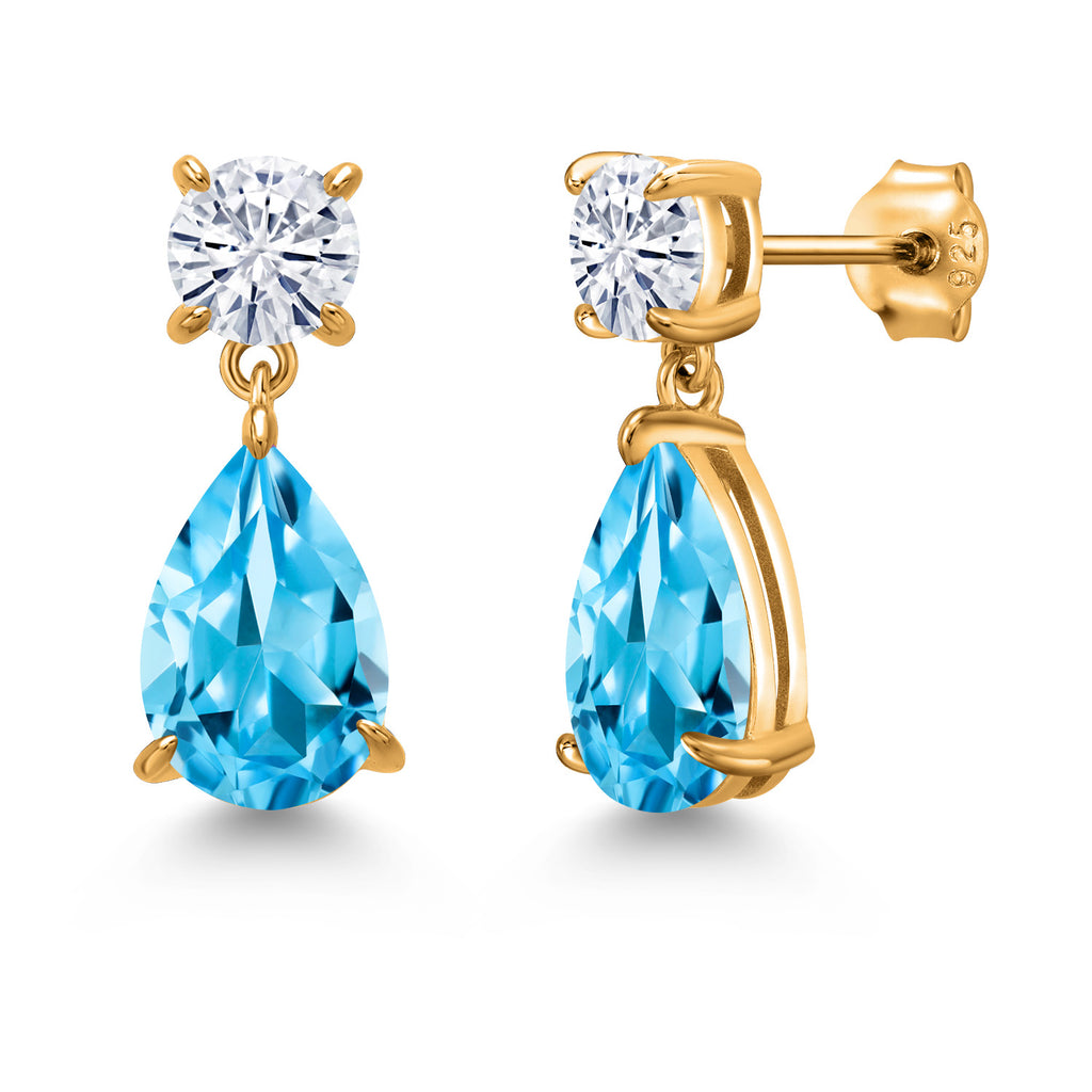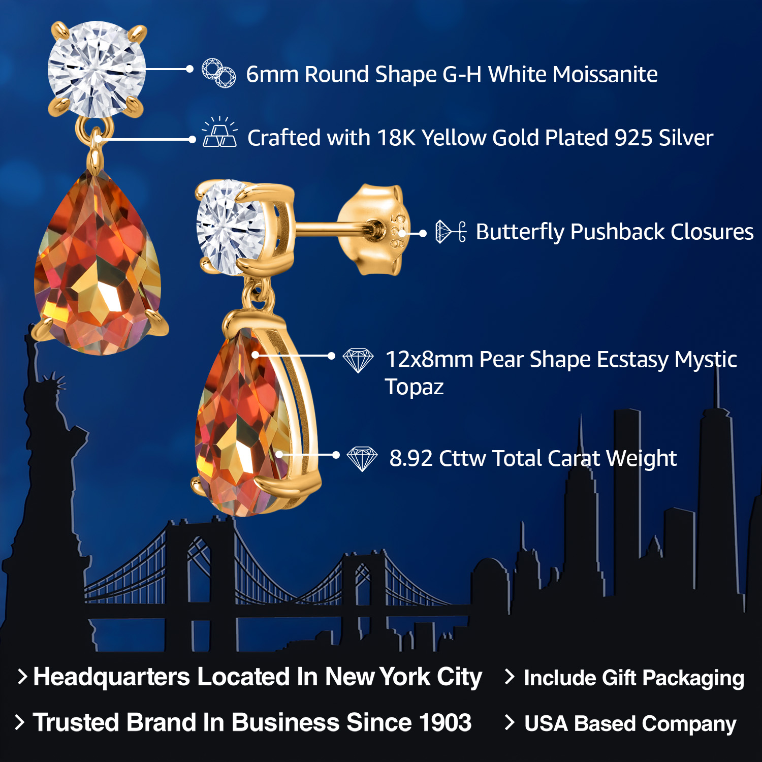 18K YELLOW GOLD PLATED SILVER: The earrings are meticulously crafted from 18K yellow gold plated silver, a precious metal known for its durability, longevity, and hypoallergenic properties. Its lush yellow sheen complements the gemstones, giving an aura of luxury and refinement that enhances the wearer's elegance.