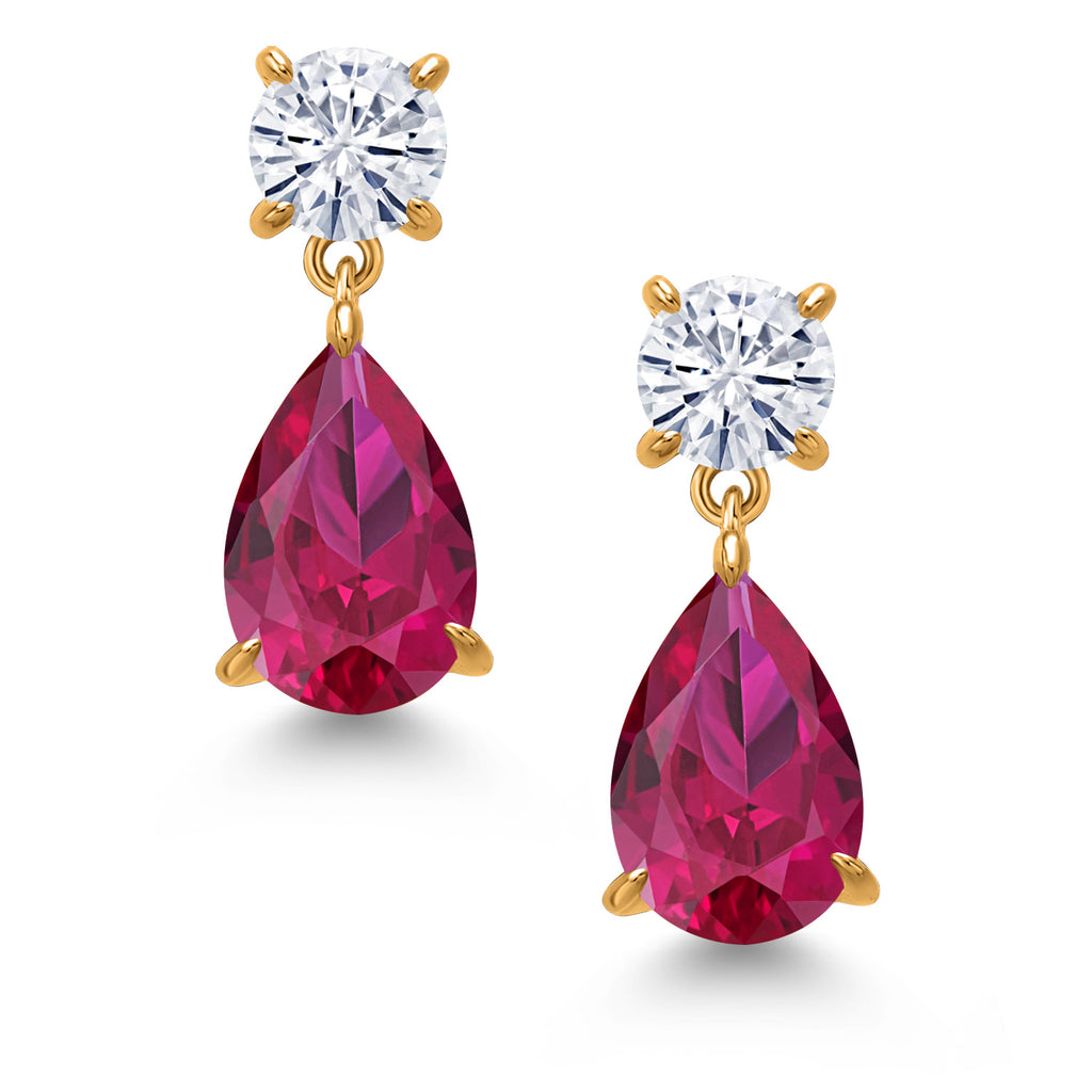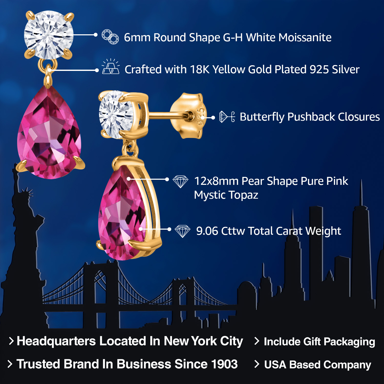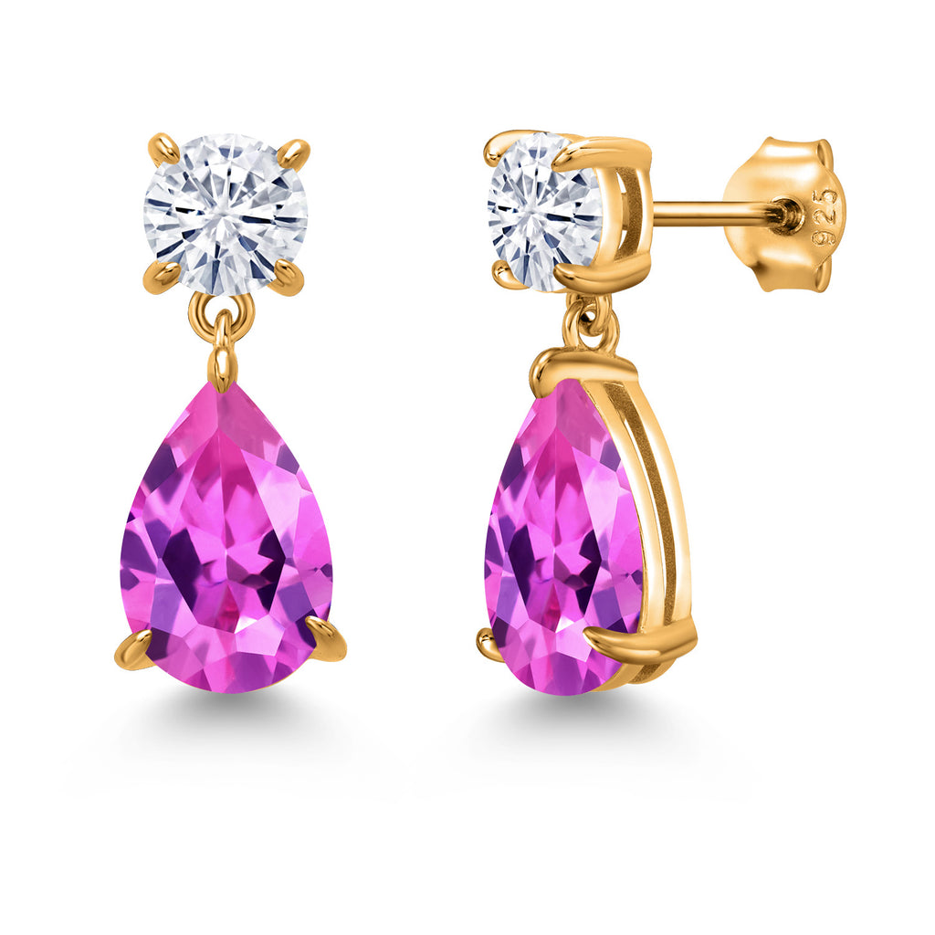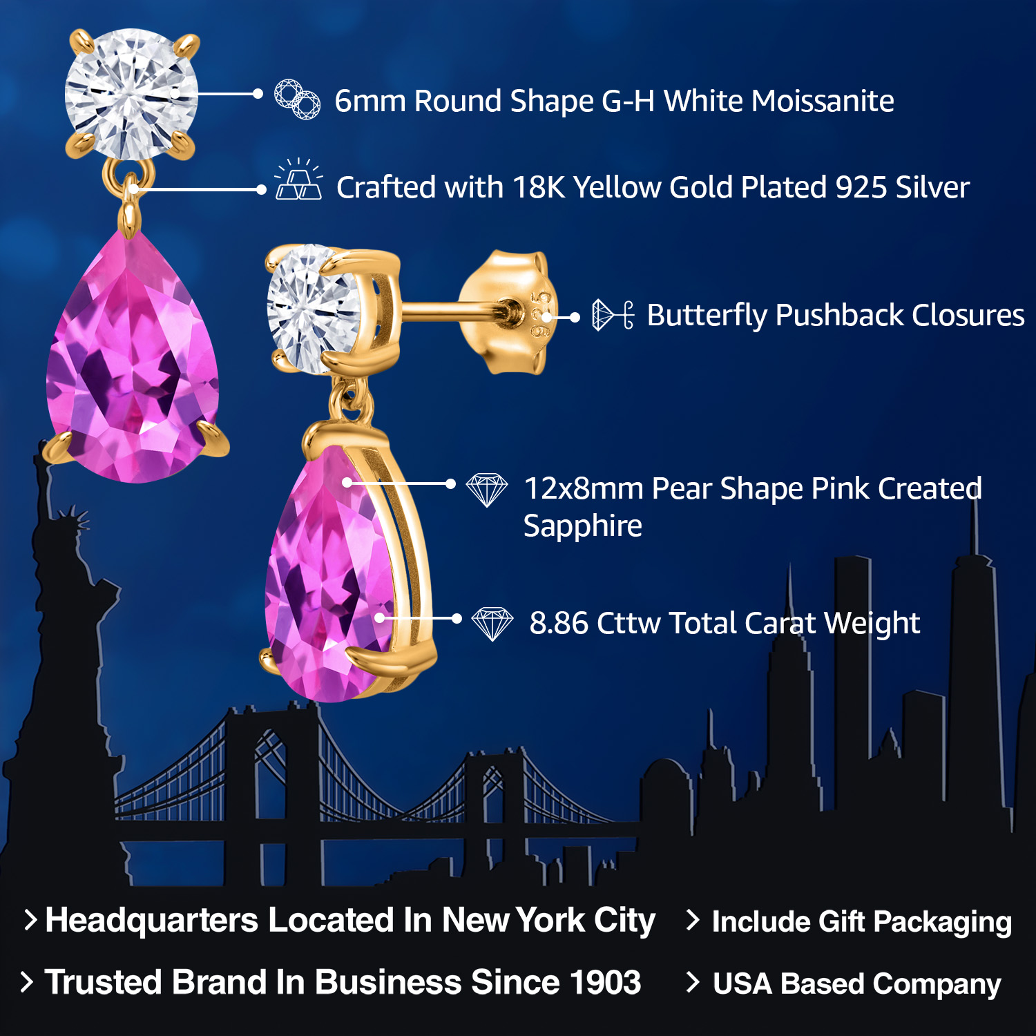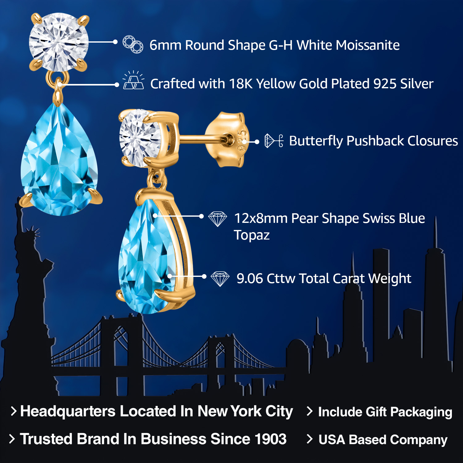 18K YELLOW GOLD PLATED SILVER: The earrings are meticulously crafted from 18K yellow gold plated silver, a precious metal known for its durability, longevity, and hypoallergenic properties. Its lush yellow sheen complements the gemstones, giving an aura of luxury and refinement that enhances the wearer's elegance.