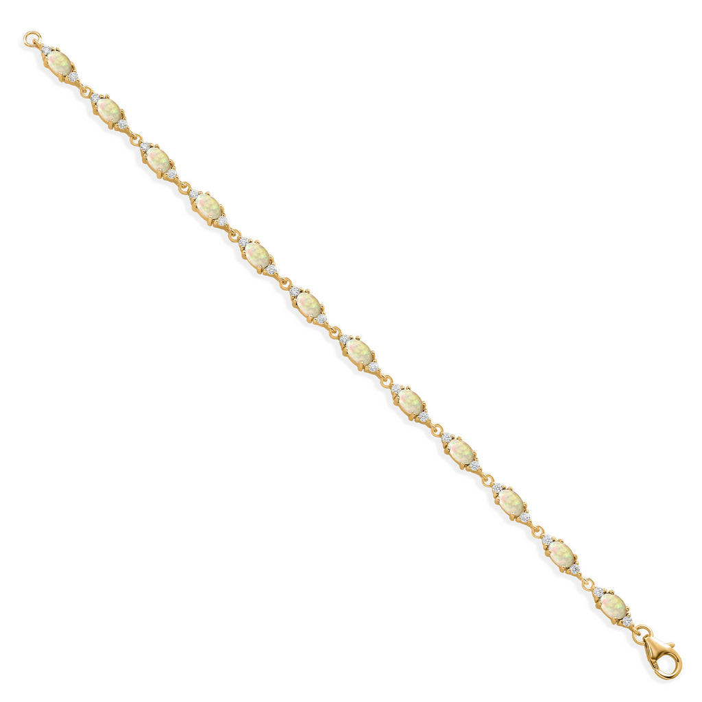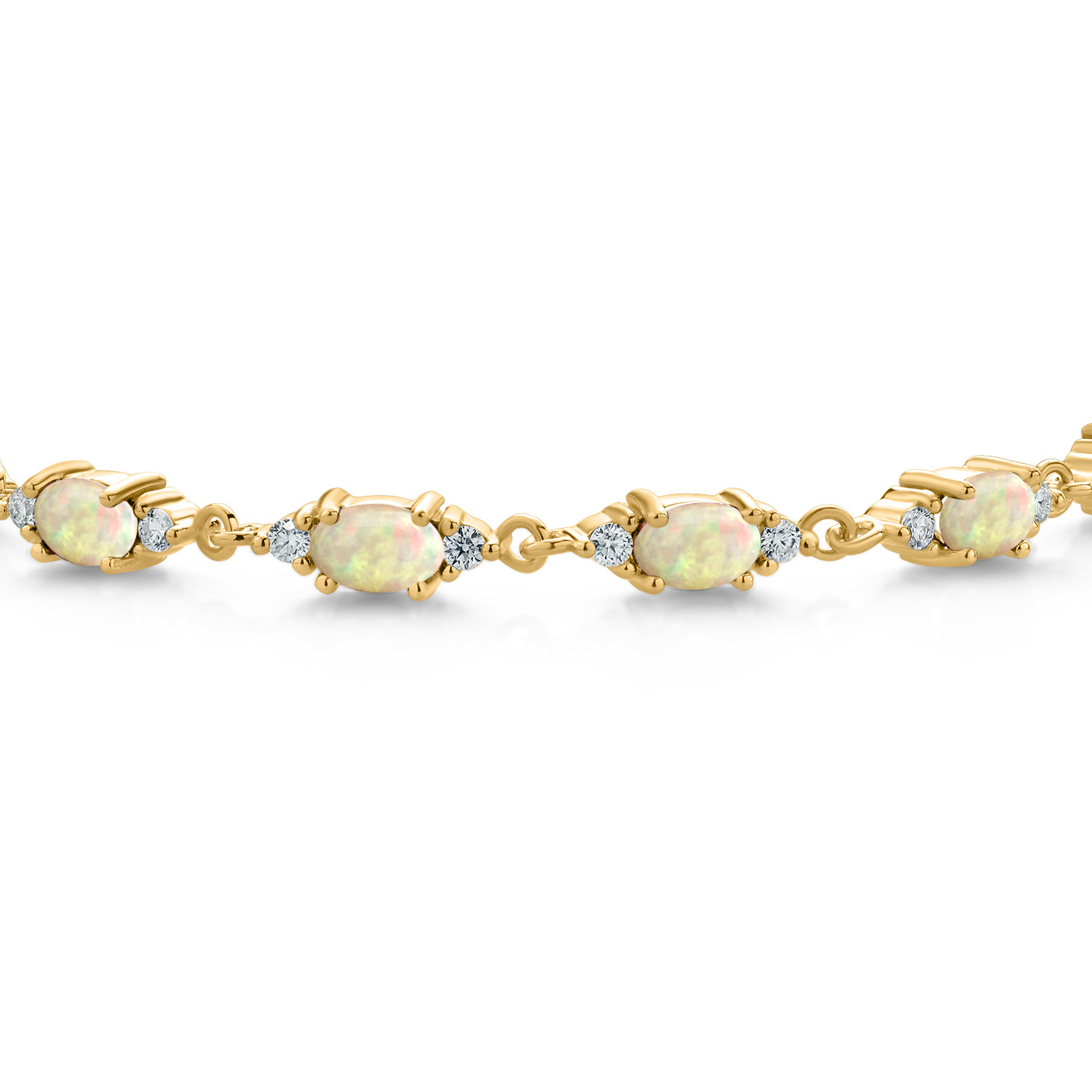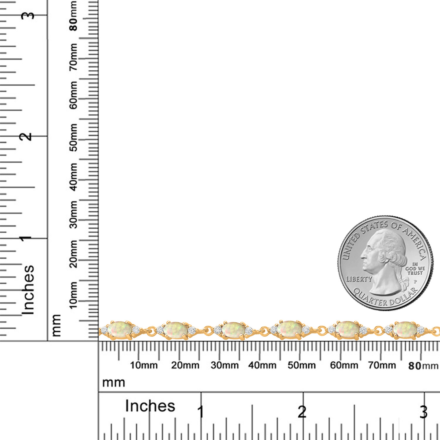 18K Yellow Gold Plated Silver White Ethiopian Opal and White Moissanite Tennis Bracelet For Women (4.75 Cttw, Gemstone Birthstone, Oval/Cabochon 6X4MM, 6.5, 7, 7.5 Inch)