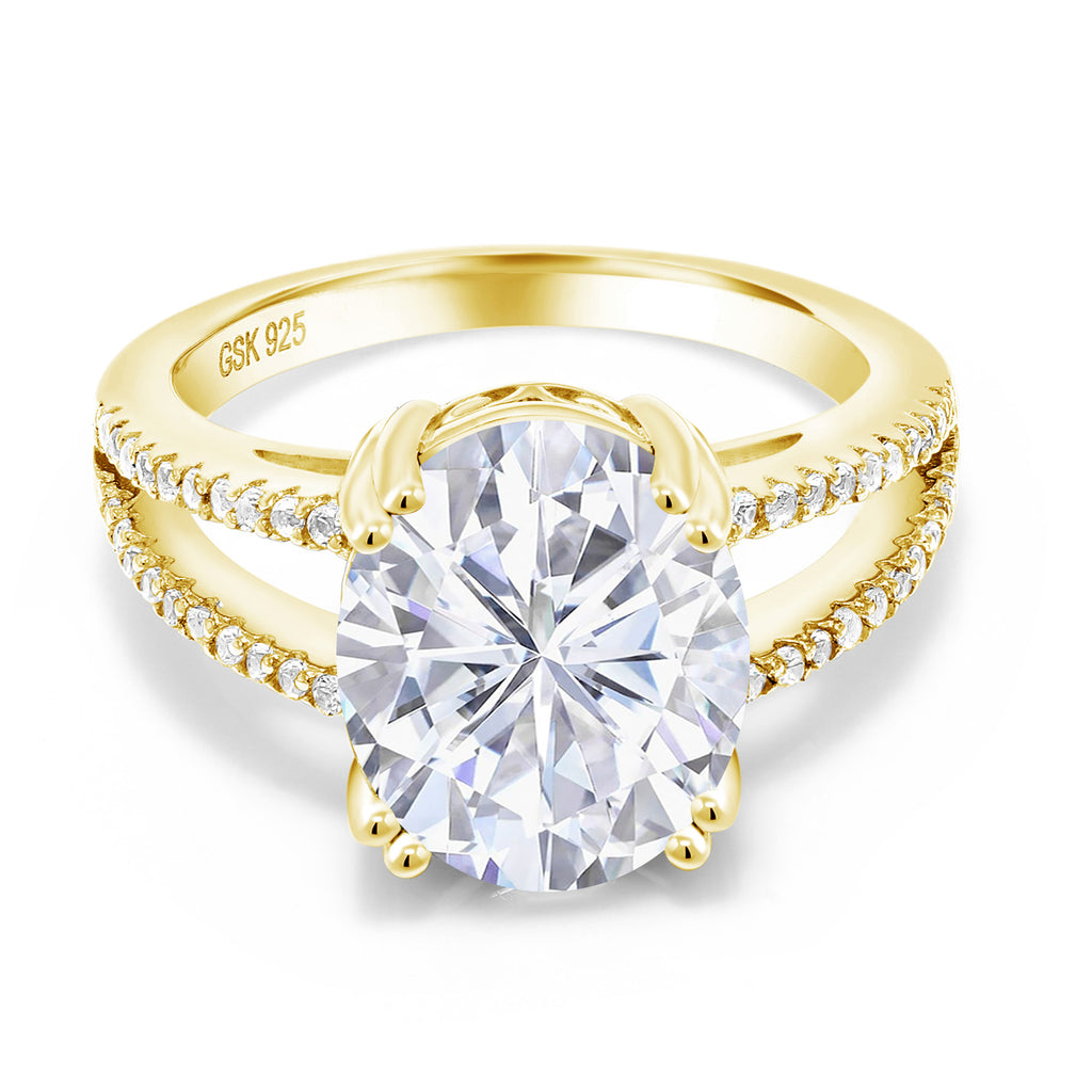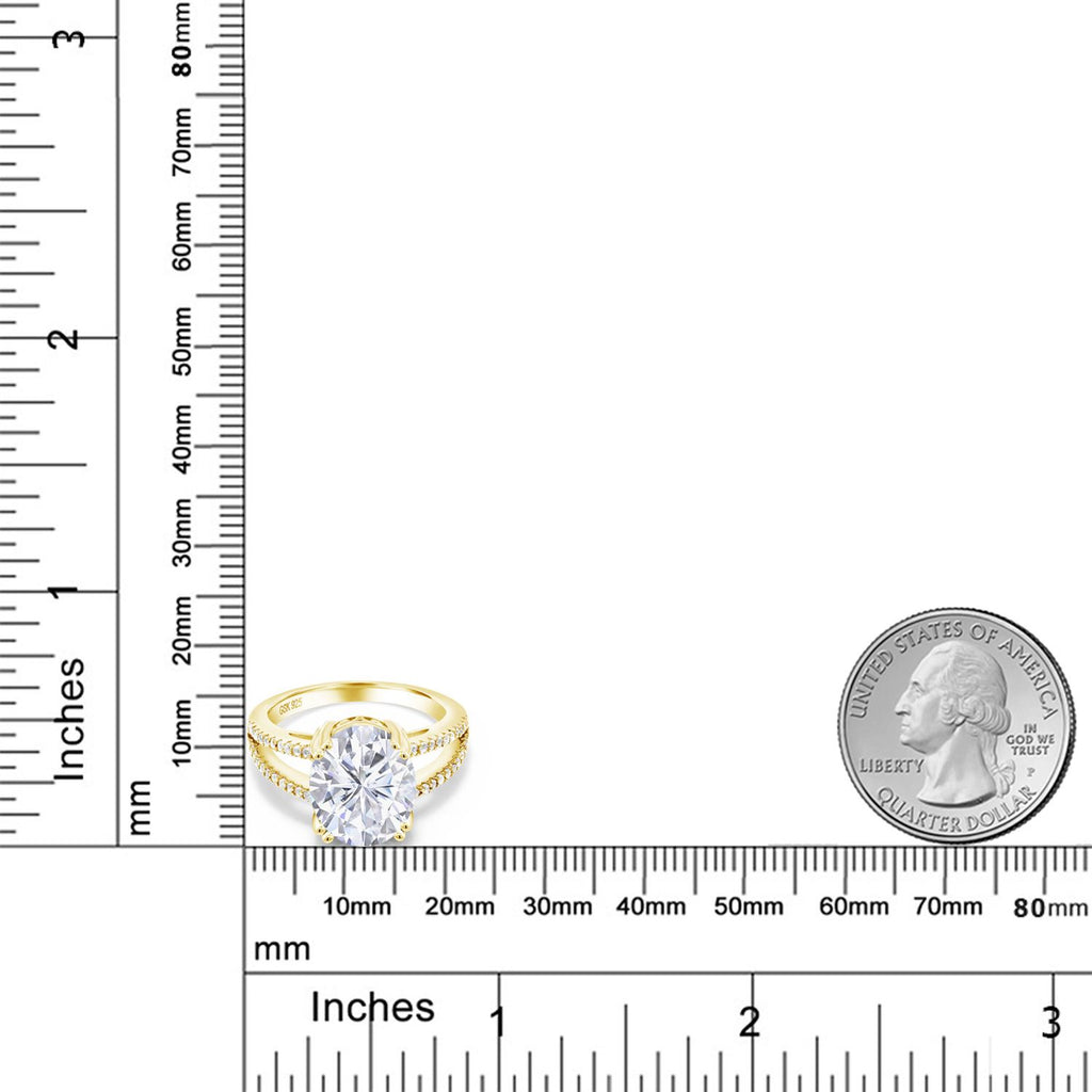 ELEGANT DESIGN WITH SPARKLING ACCENTS: A split band adorned with shimmering round accent stones gracefully enhances the center gem's brilliance. The intricate design creates a harmonious blend of sparkle and sophistication, elevating the ring's overall allure.