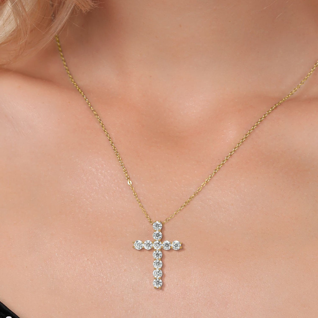 EXQUISITE CROSS PENDANT: This necklace features an exquisite cross pendant adorned with sparkling round white moissanite gemstones. The cross design symbolizes faith and spirituality, making it a meaningful and beautiful accessory.