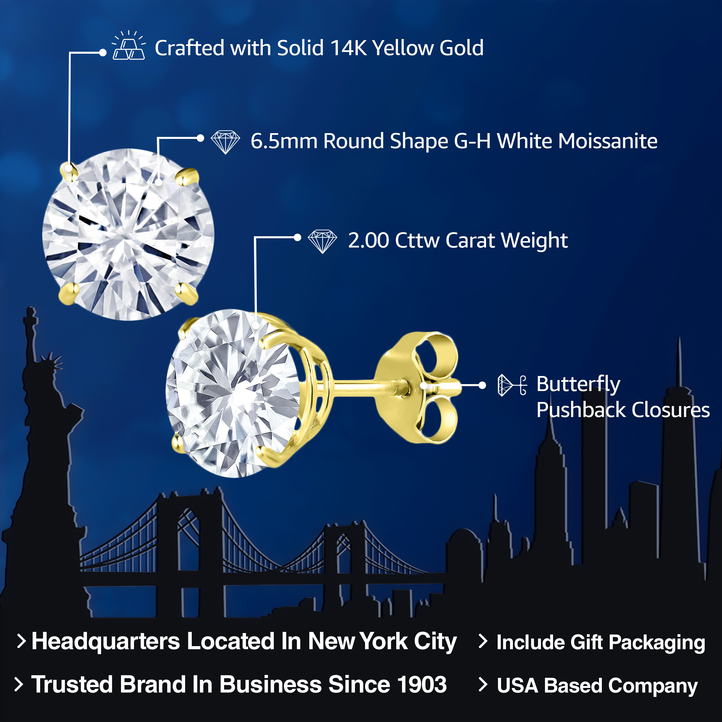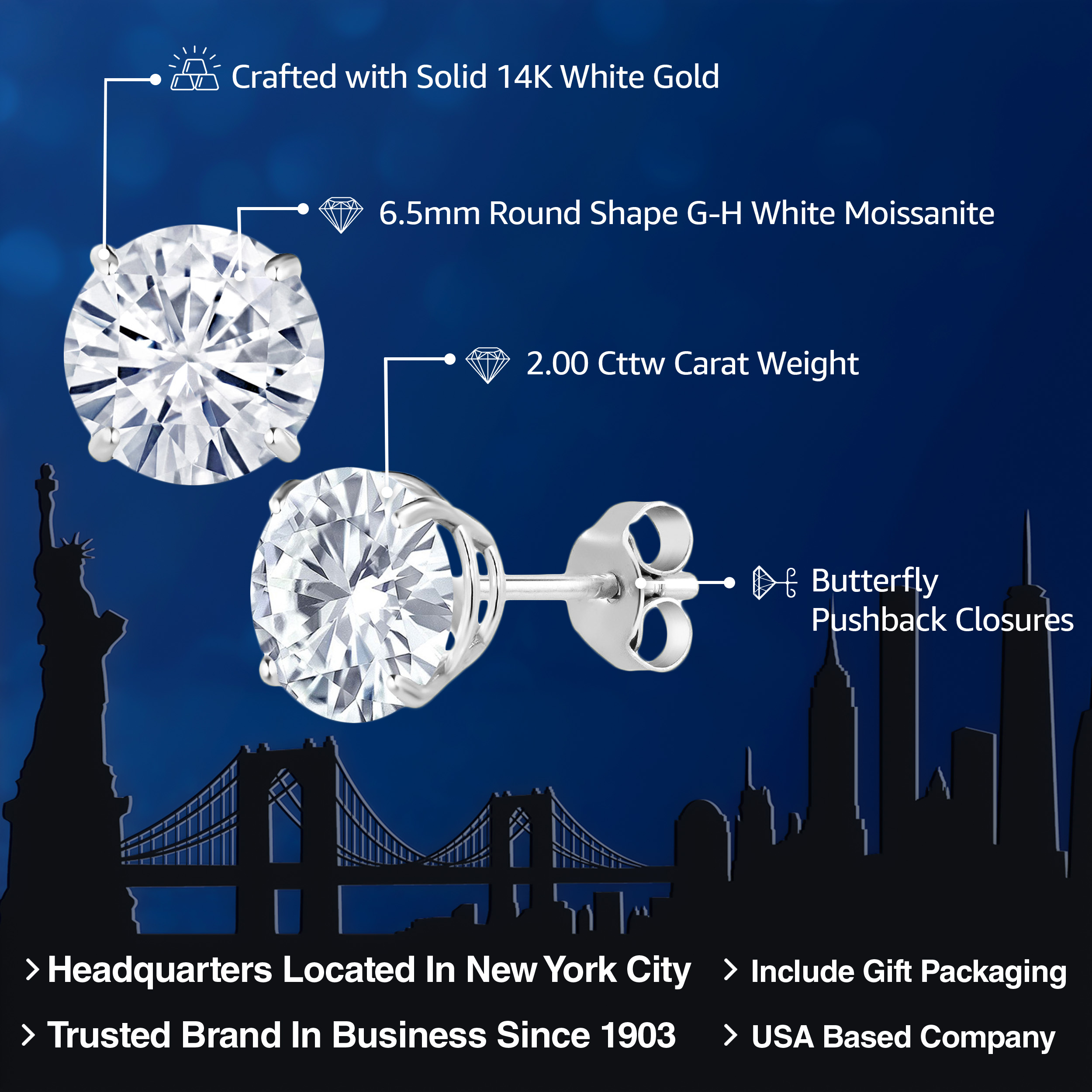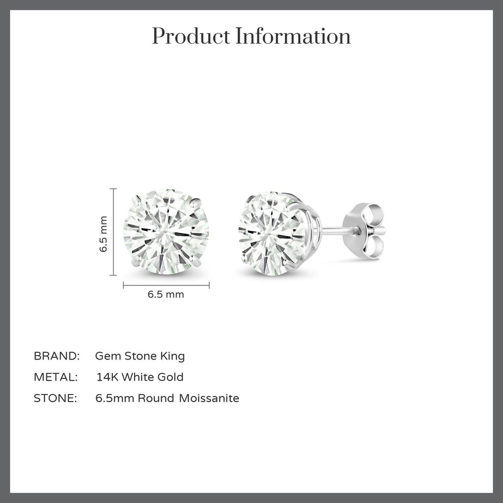 MEASUREMENTS: 6.5X6.5MM Round Moissanite. Total Carat Weight is 2.00 cttw