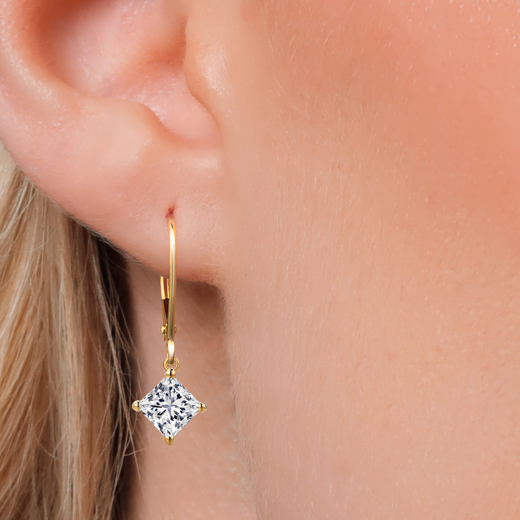 PRINCESS-CUT IGI CERTIFIED LAB GROWN DIAMONDS: These exquisite dangle earrings feature two IGI certified 1.00-carat princess-cut lab grown diamonds, totaling 2.00 carats. Each diamond radiates superior brilliance with E-F color and VS1 clarity.