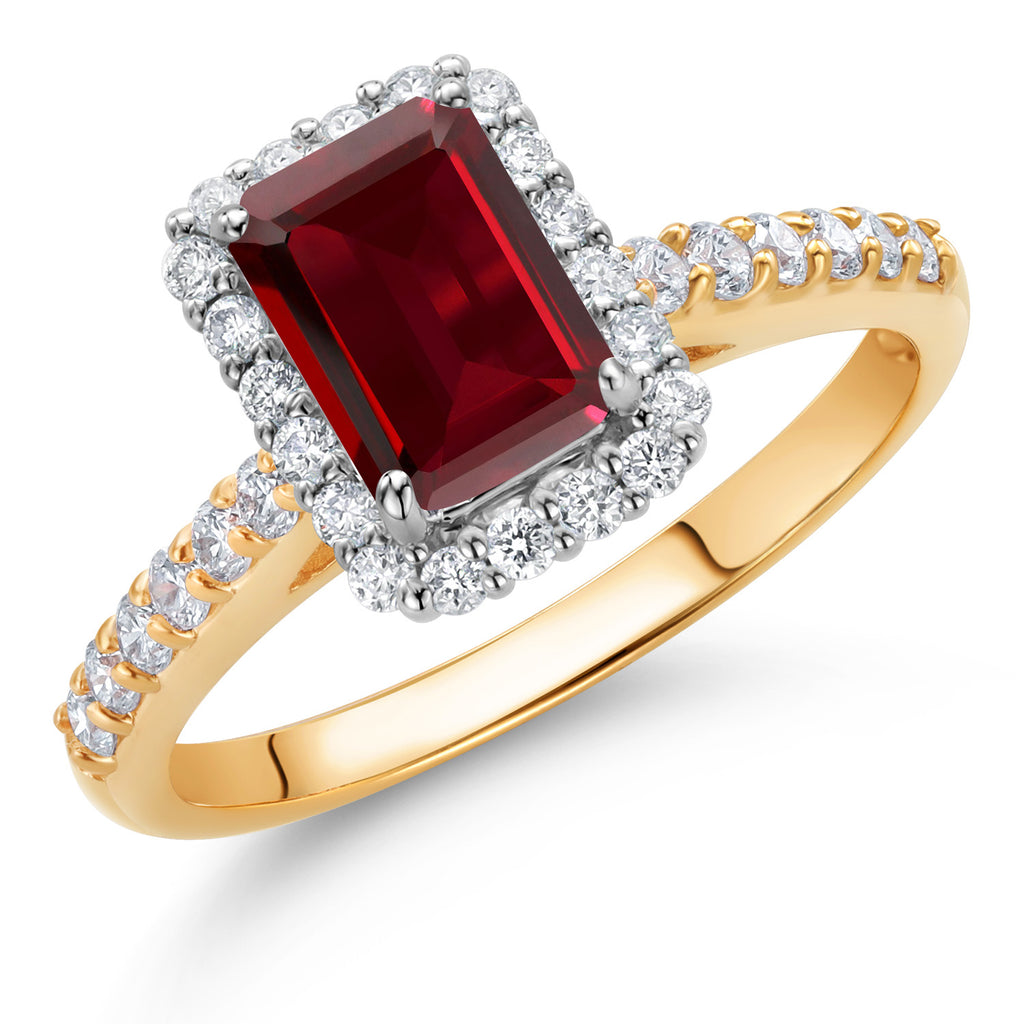 MEASUREMENTS: 7x5mm Emerald Cut Red Garnet, 1.2x1.2mm Round E - F Lab Grown Diamond1.5, x, 1.5, mm Round E - F Lab Grown Diamond. Total Carat Weight is 2.14 cttw