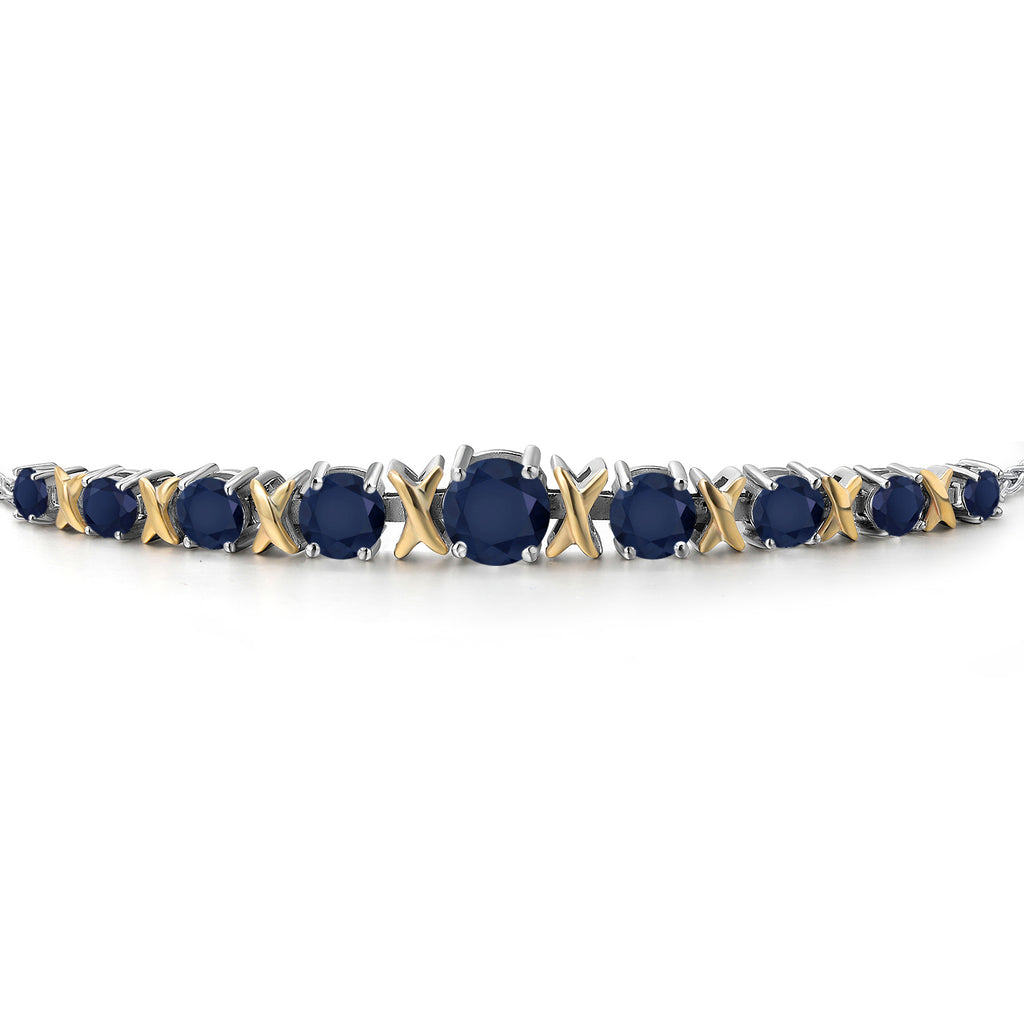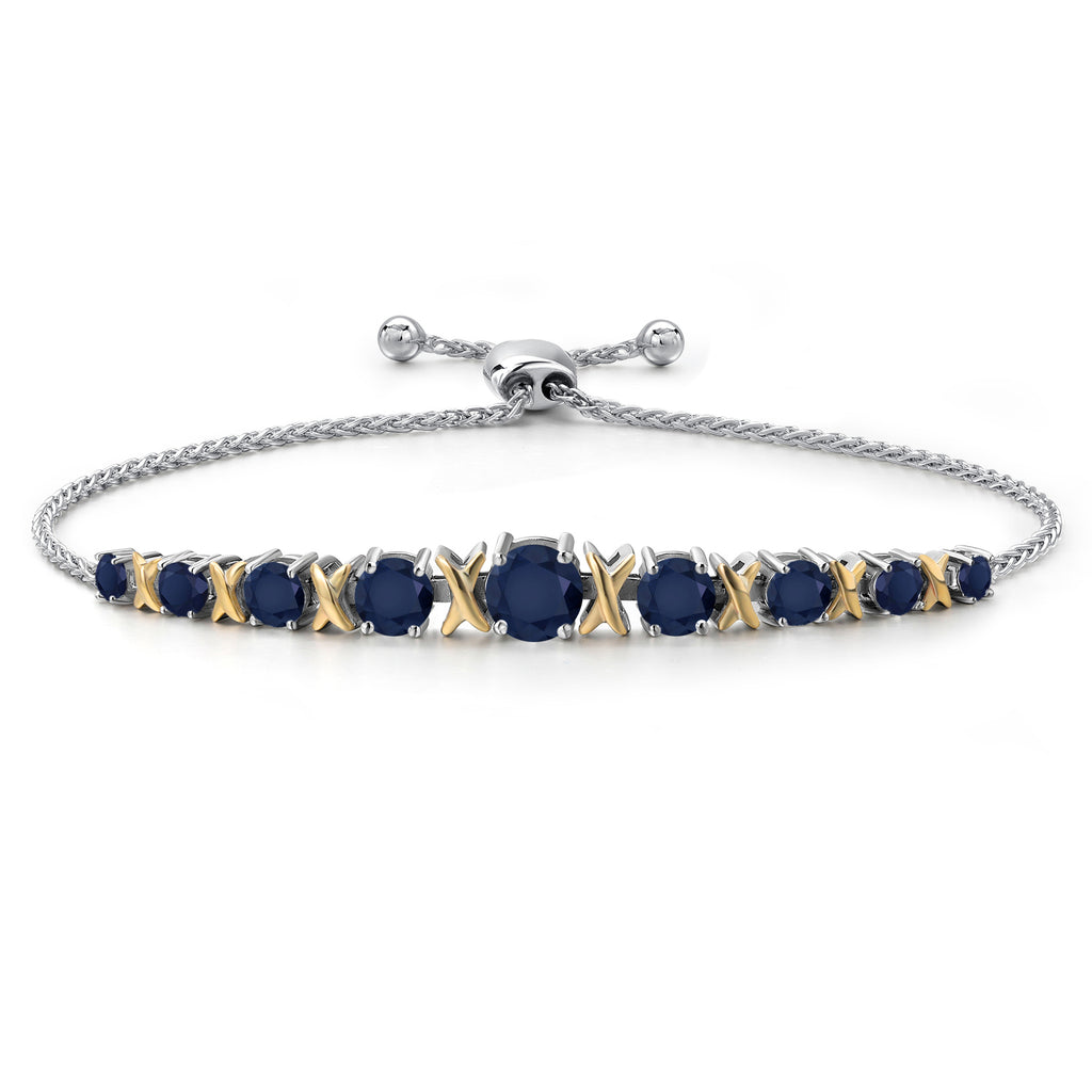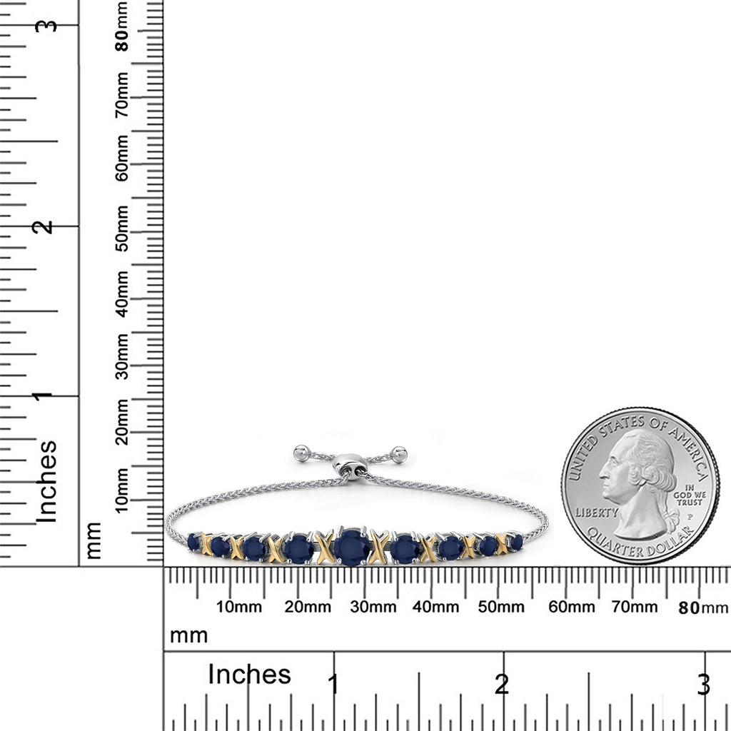 2.16 Cttw Blue Sapphire Graduated Bracelet For Women | 925 Silver and 10K Yellow Gold | Round 5MM 4MM 3.5MM 3MM and 2.5MM | Fully Adjustable Up to 9 Inches