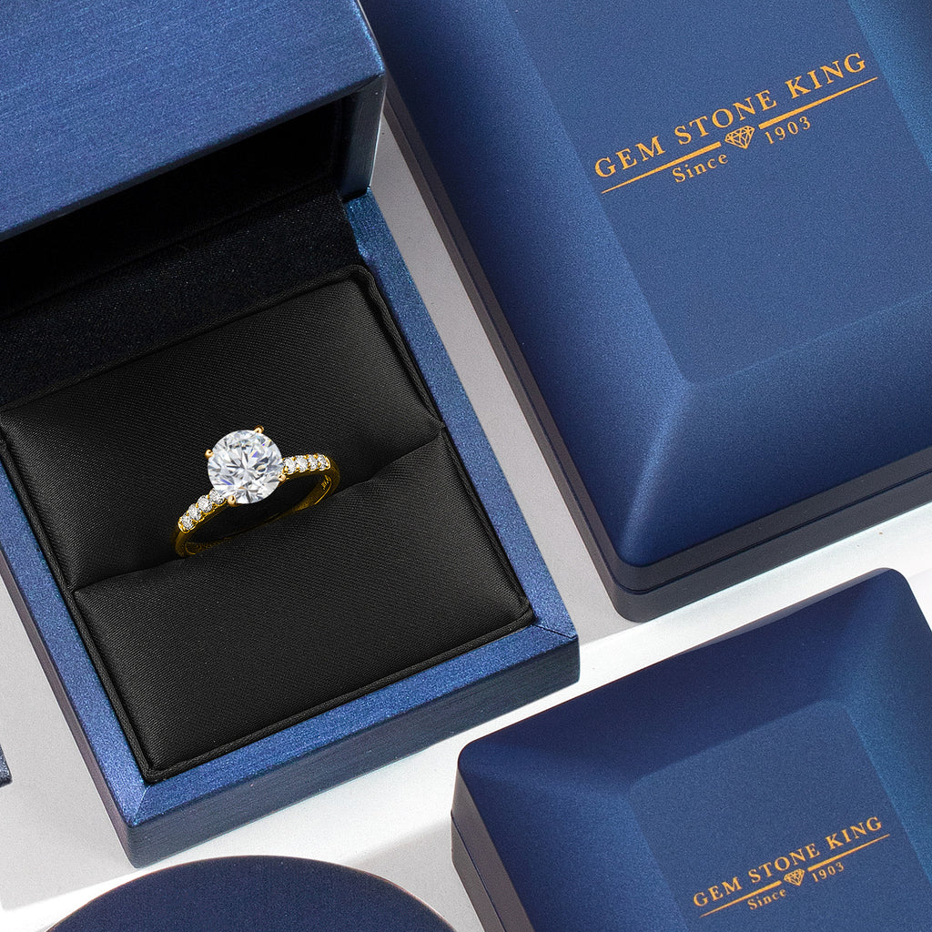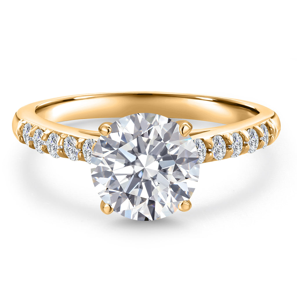 EXQUISITE CENTERPIECE DESIGN: This 10K yellow gold engagement ring features a breathtaking 2.00 Ct round-cut IGI-certified Lab Grown Diamond as the centerpiece, complemented by additional diamonds for a total weight of 2.20 Cttw, offering timeless sophistication.