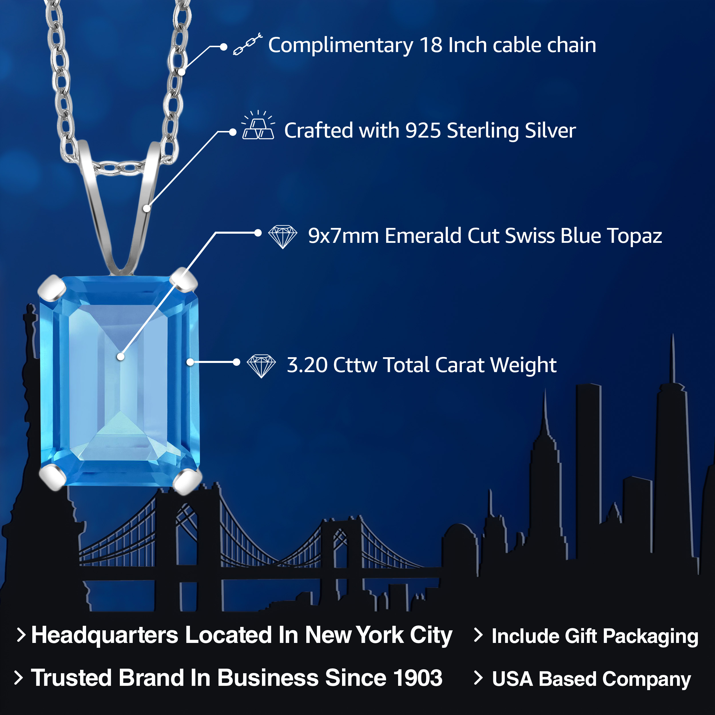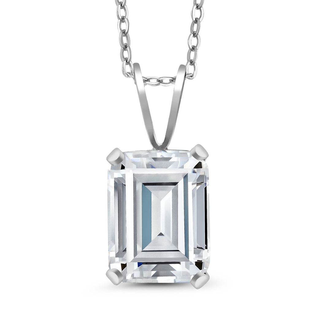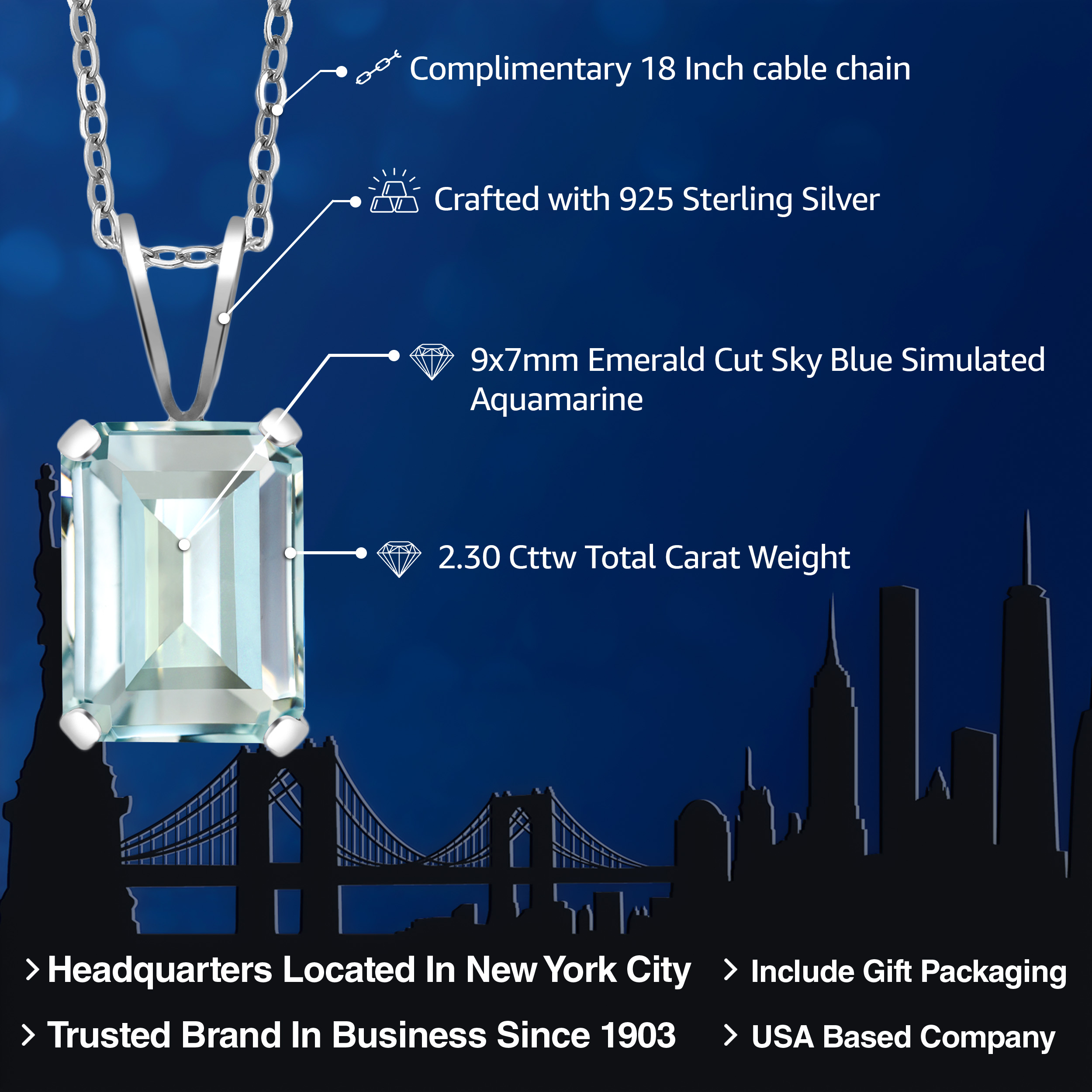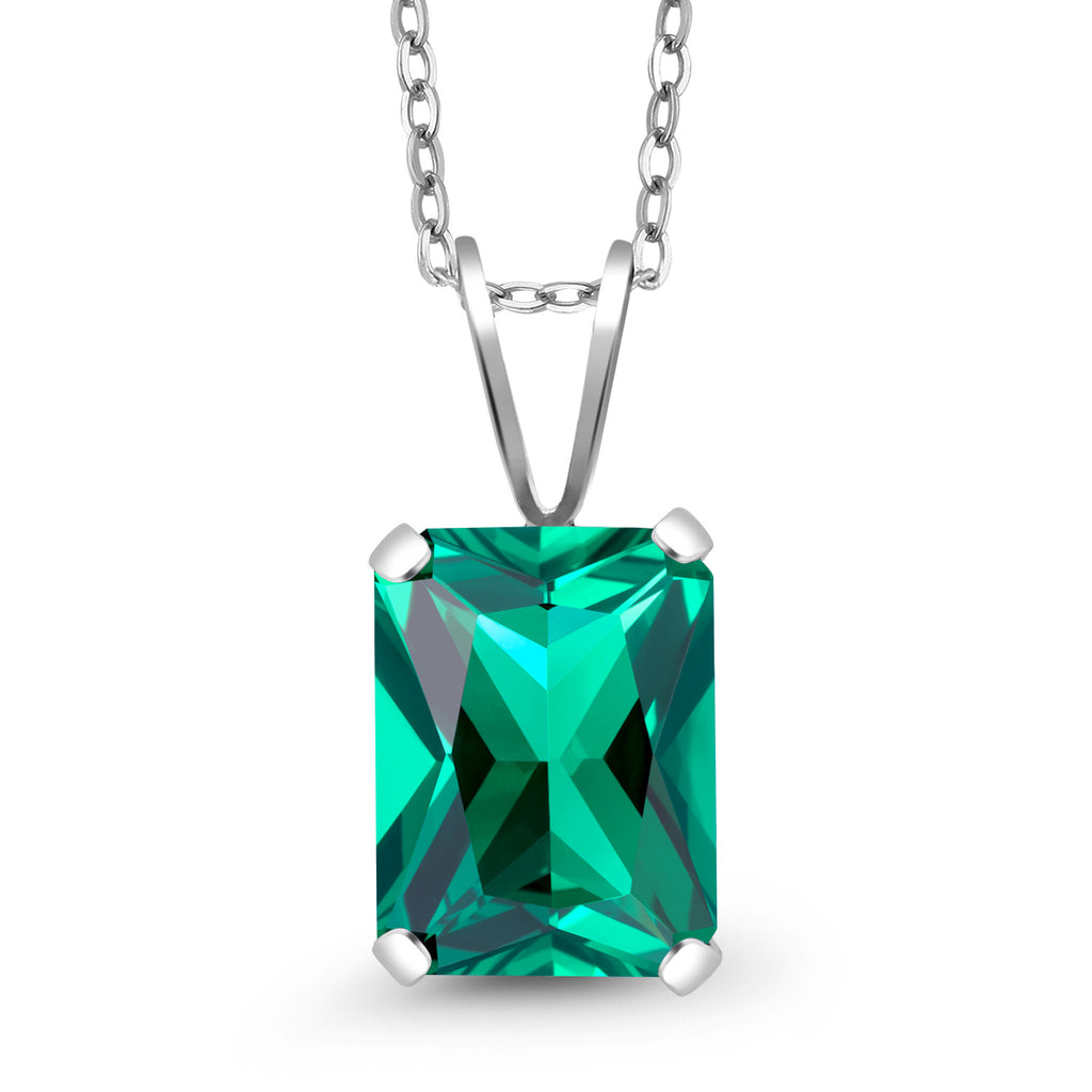 Emerald Cut Pendant Necklace For Women | 925 Sterling Silver | Emerald Cut 9X7MM | Gemstone Birthstone | Fine Jewelry for Her Mom Wife | With 18 Inch Silver Chain