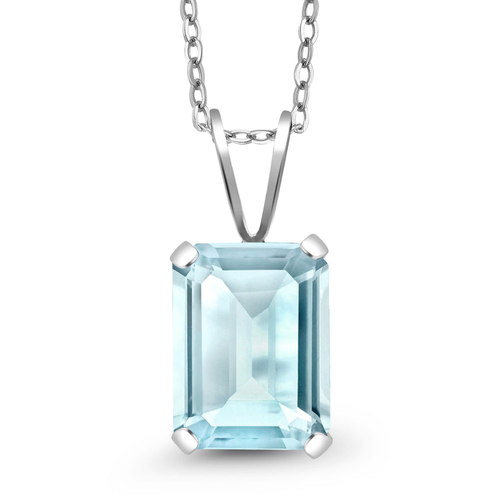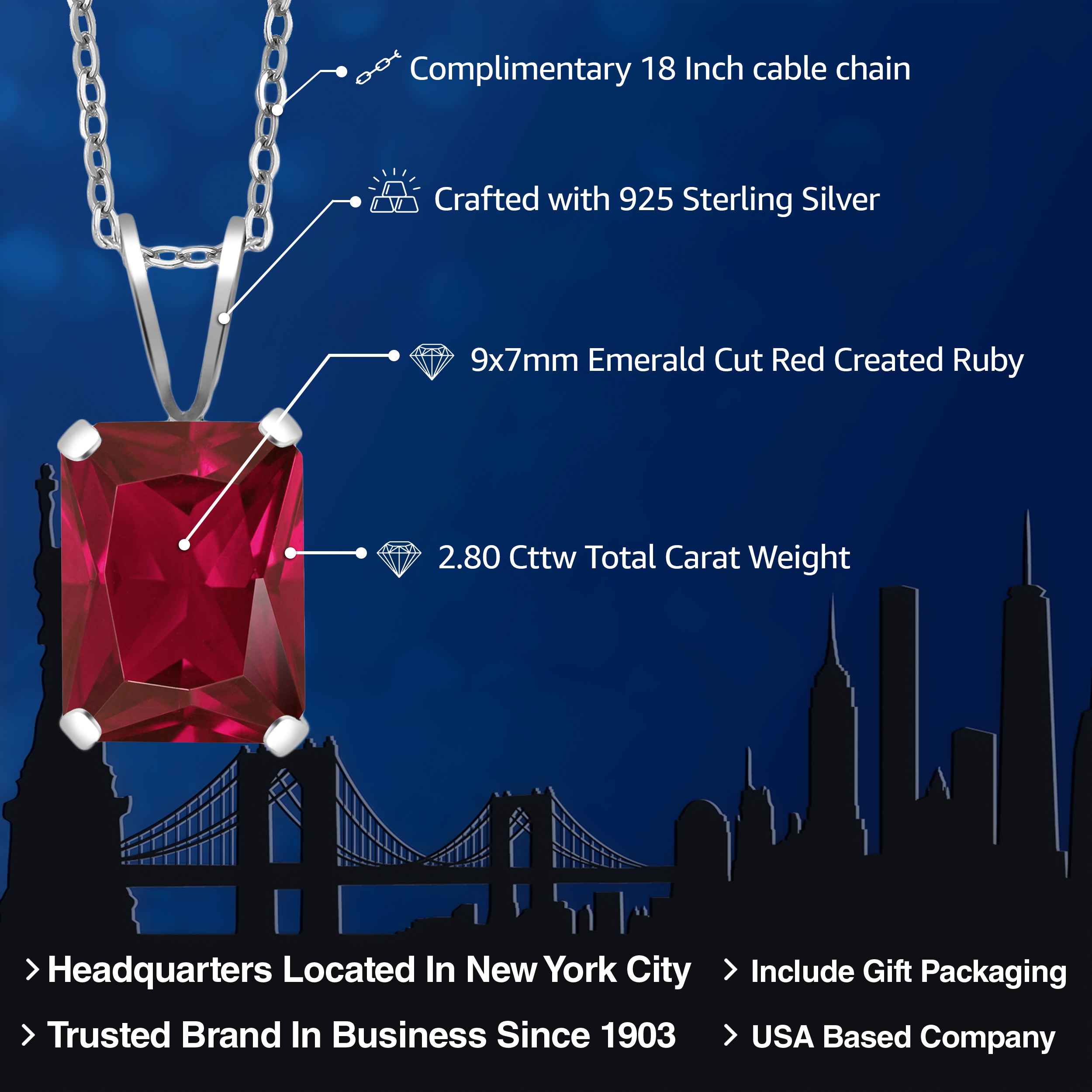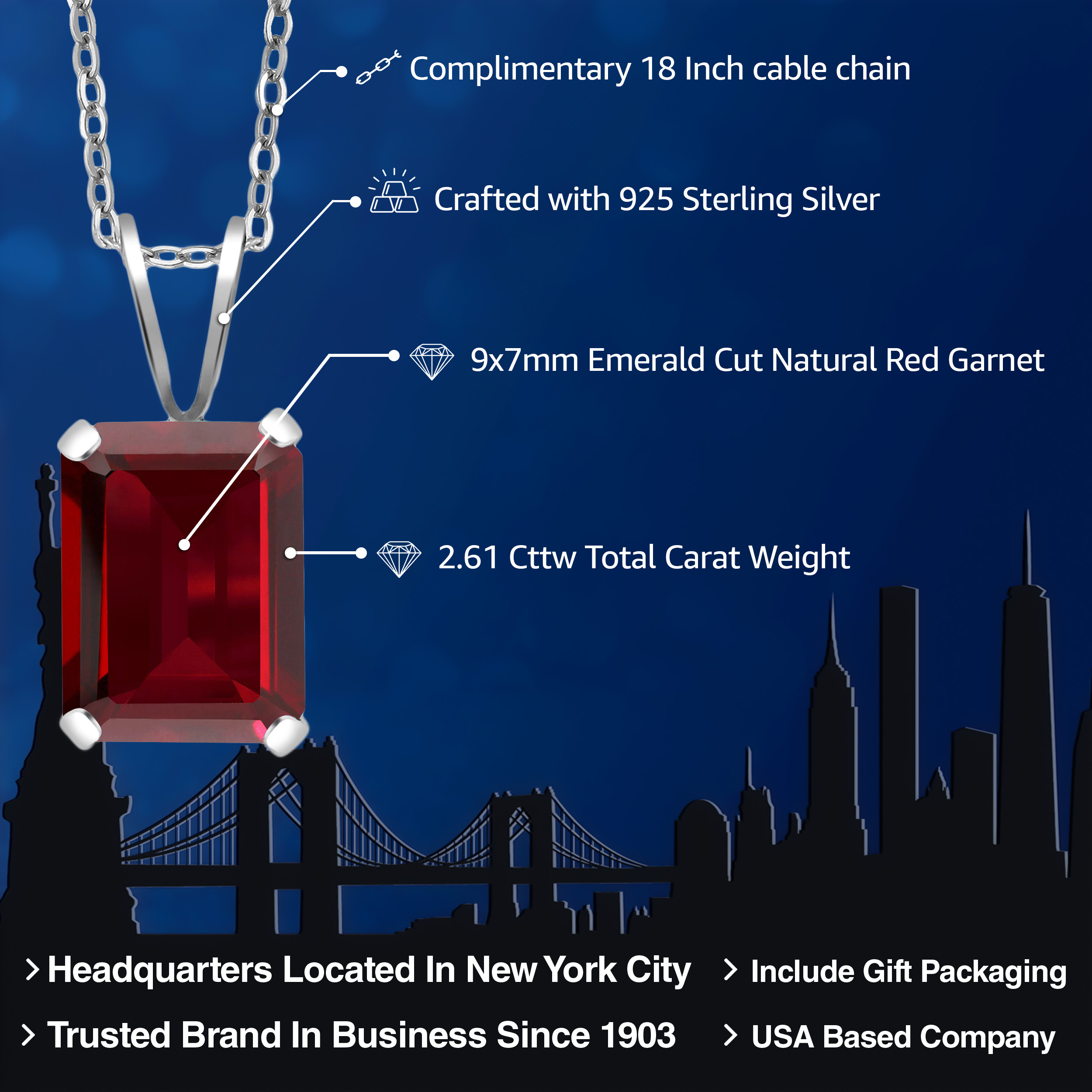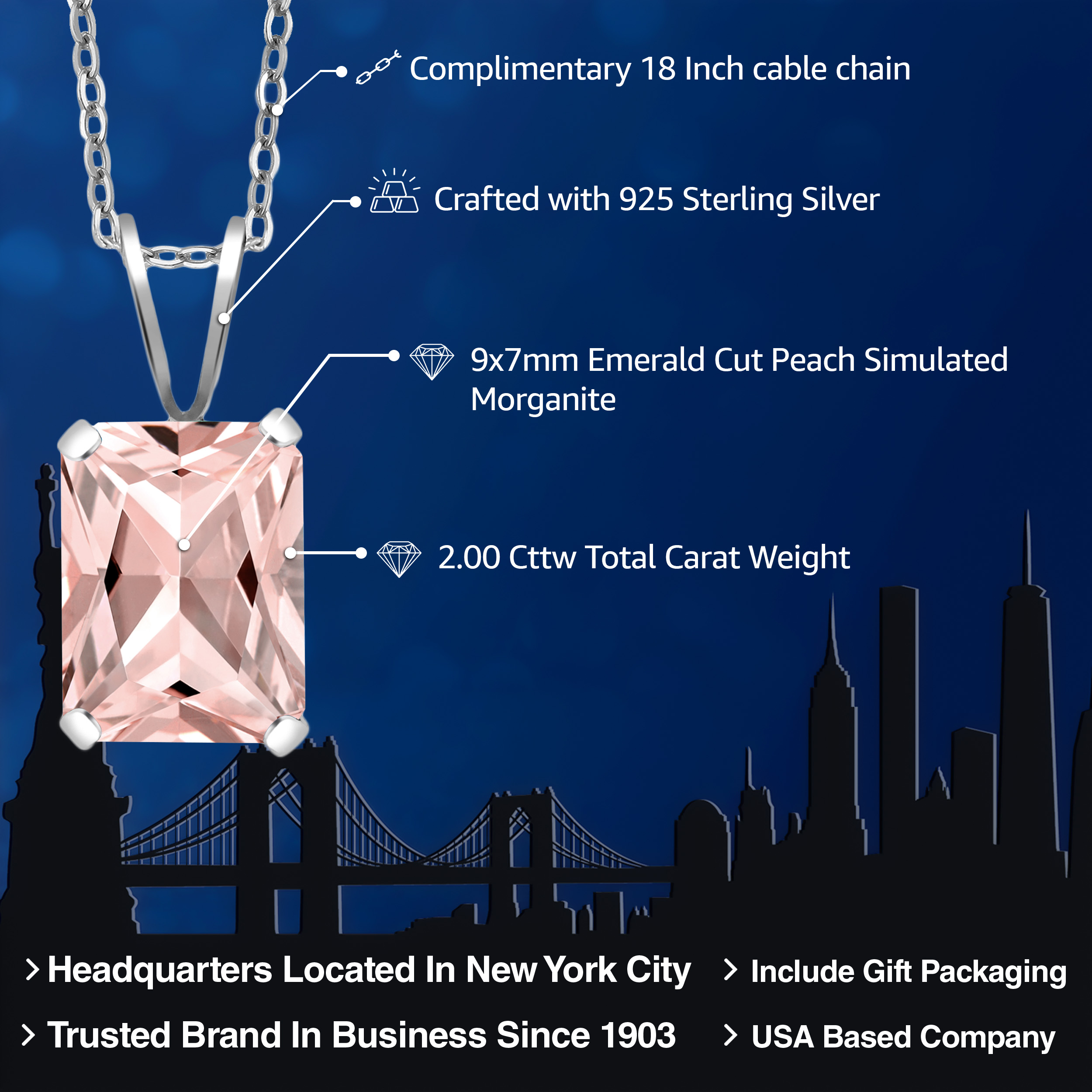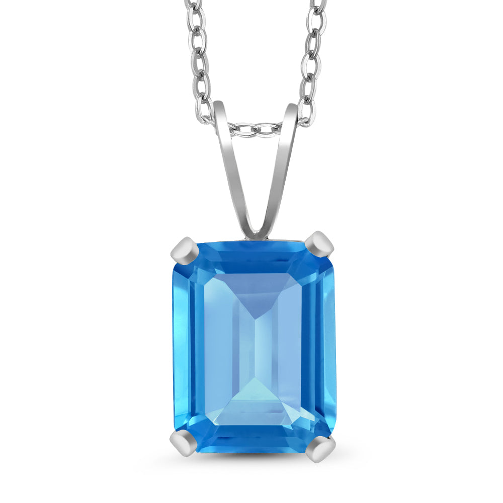Emerald Cut Pendant Necklace For Women | 925 Sterling Silver | Emerald Cut 9X7MM | Gemstone Birthstone | Fine Jewelry for Her Mom Wife | With 18 Inch Silver Chain