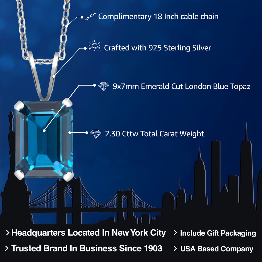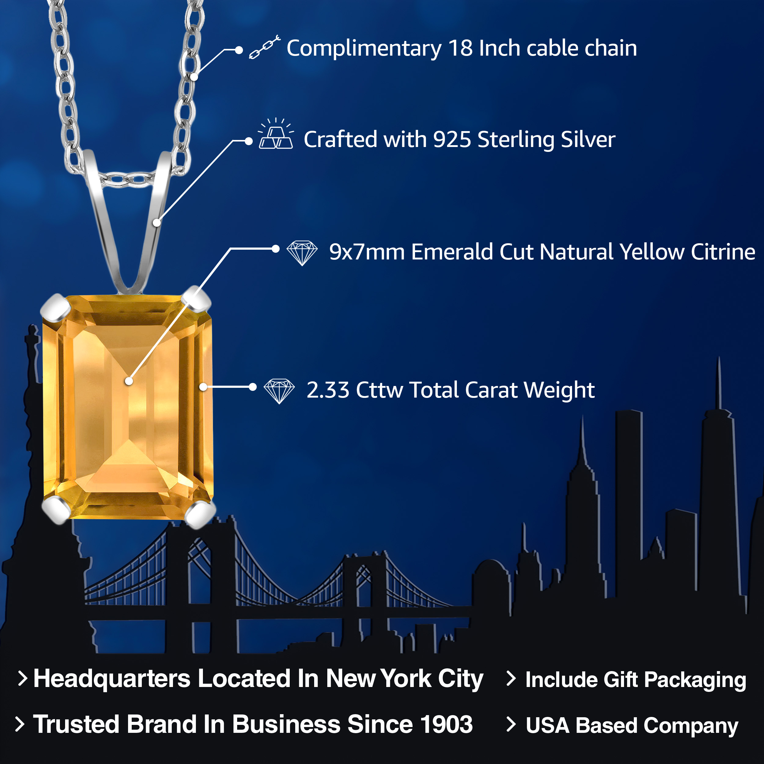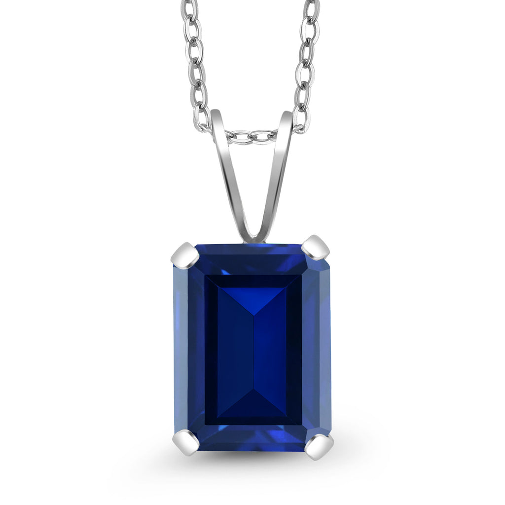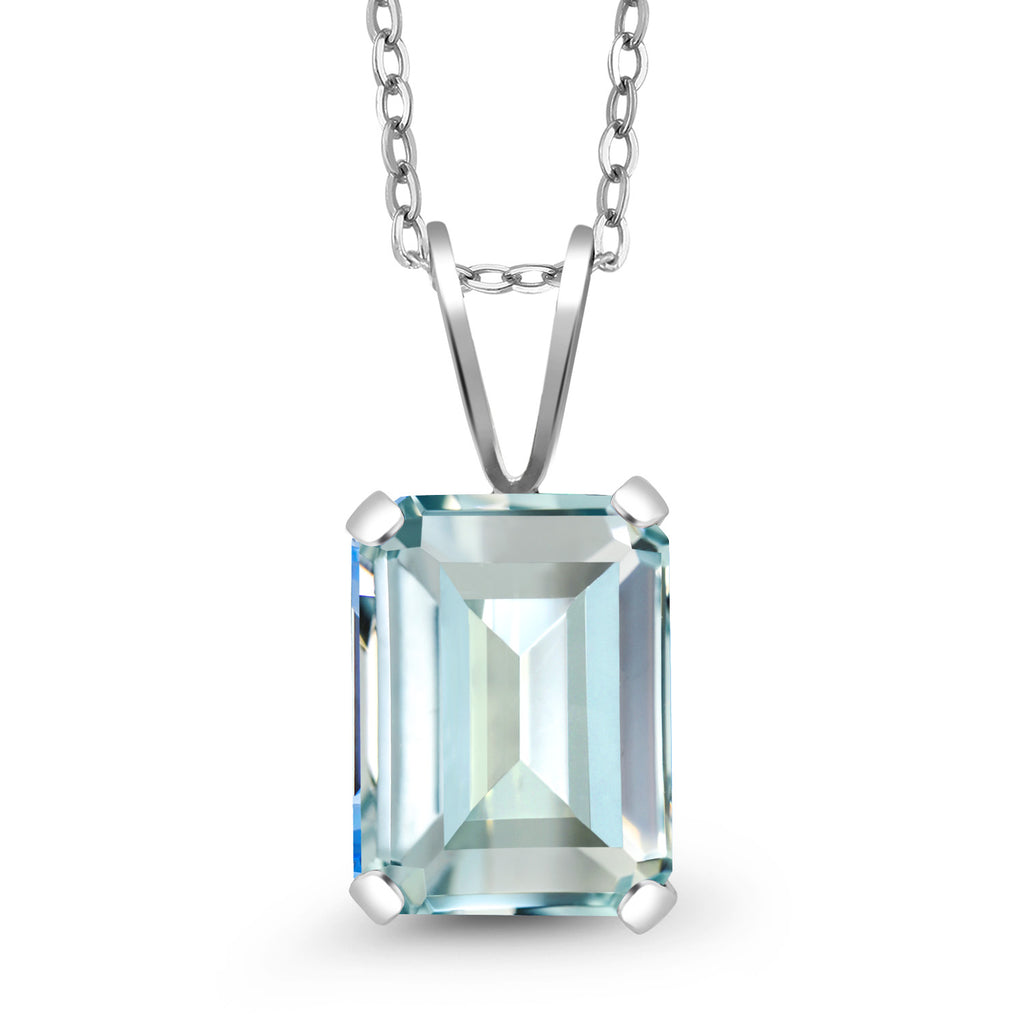 Emerald Cut Pendant Necklace For Women | 925 Sterling Silver | Emerald Cut 9X7MM | Gemstone Birthstone | Fine Jewelry for Her Mom Wife | With 18 Inch Silver Chain