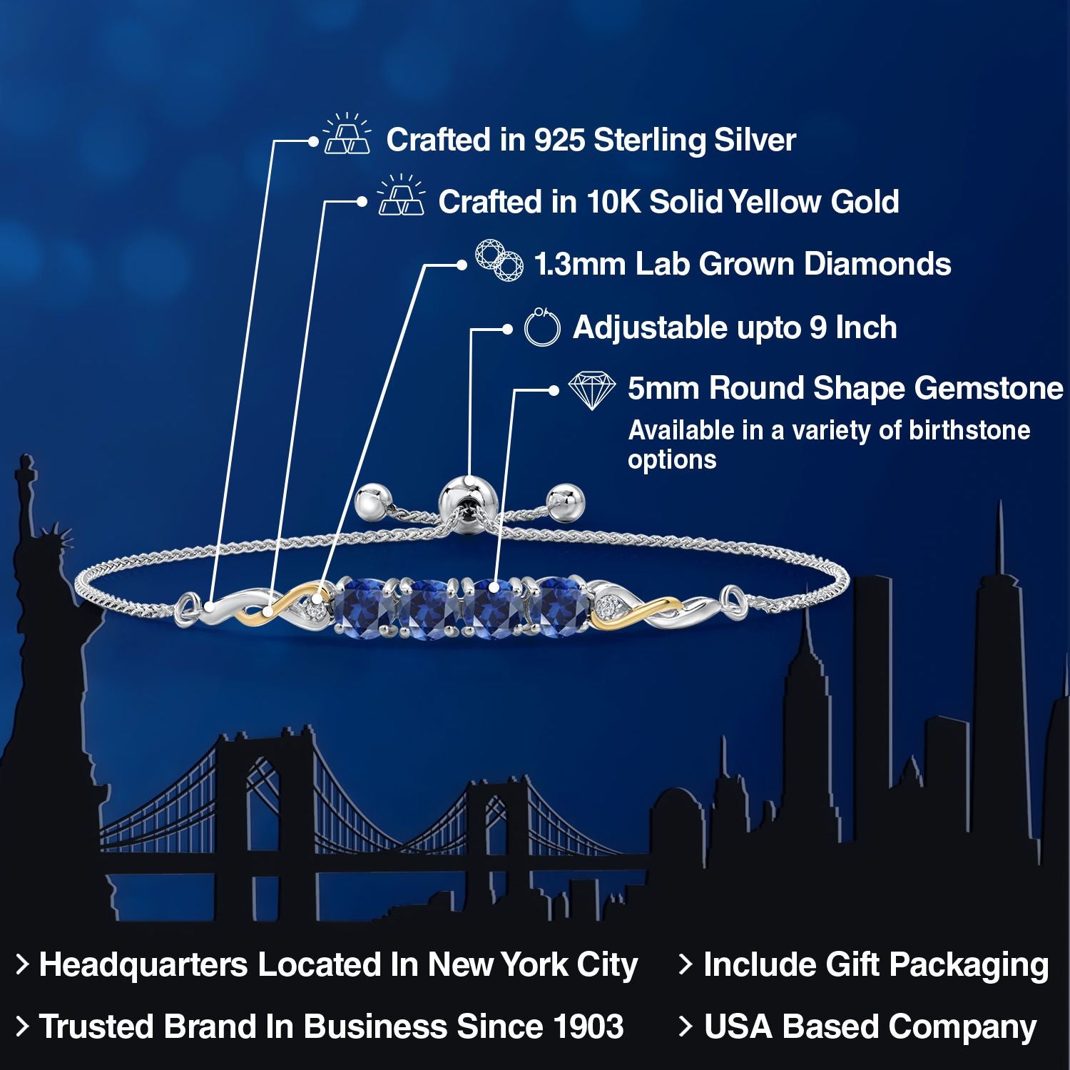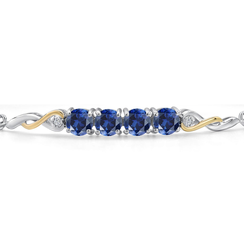ELEGANT TWO-TONE DESIGN: This stunning bracelet features a luxurious combination of 925 Sterling Silver and 10K Yellow Gold, highlighting the deep blue hue of the created sapphire and the brilliance of lab-grown diamonds. The two-tone setting adds a sophisticated and timeless touch, making it a perfect accessory for any occasion.