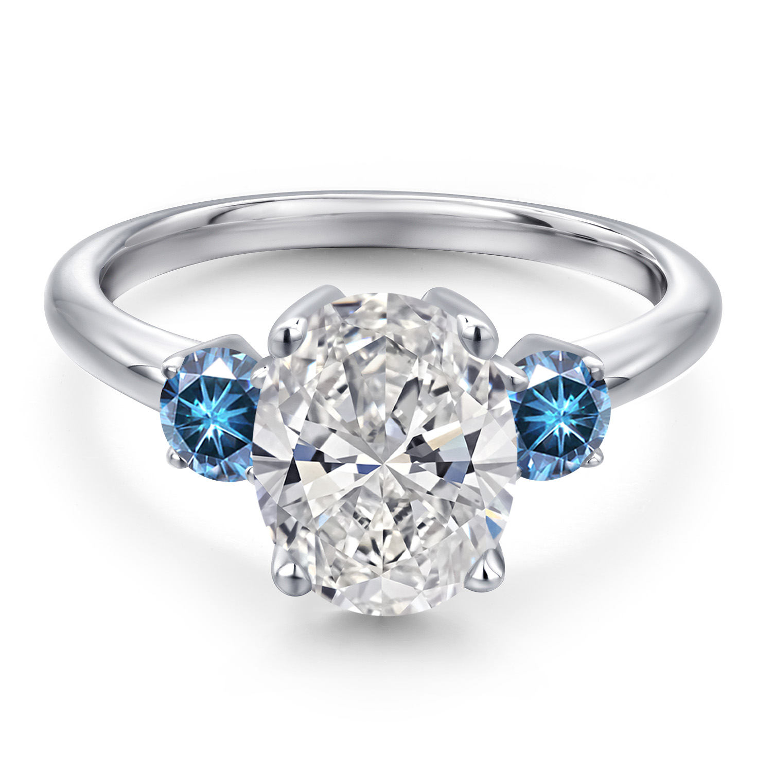 MEASUREMENTS: 10x8mm Oval E - F Lab Grown Diamond, 4x4mm Round Coated Persian Blue Moissanite. Total Carat Weight is 2.46 cttw