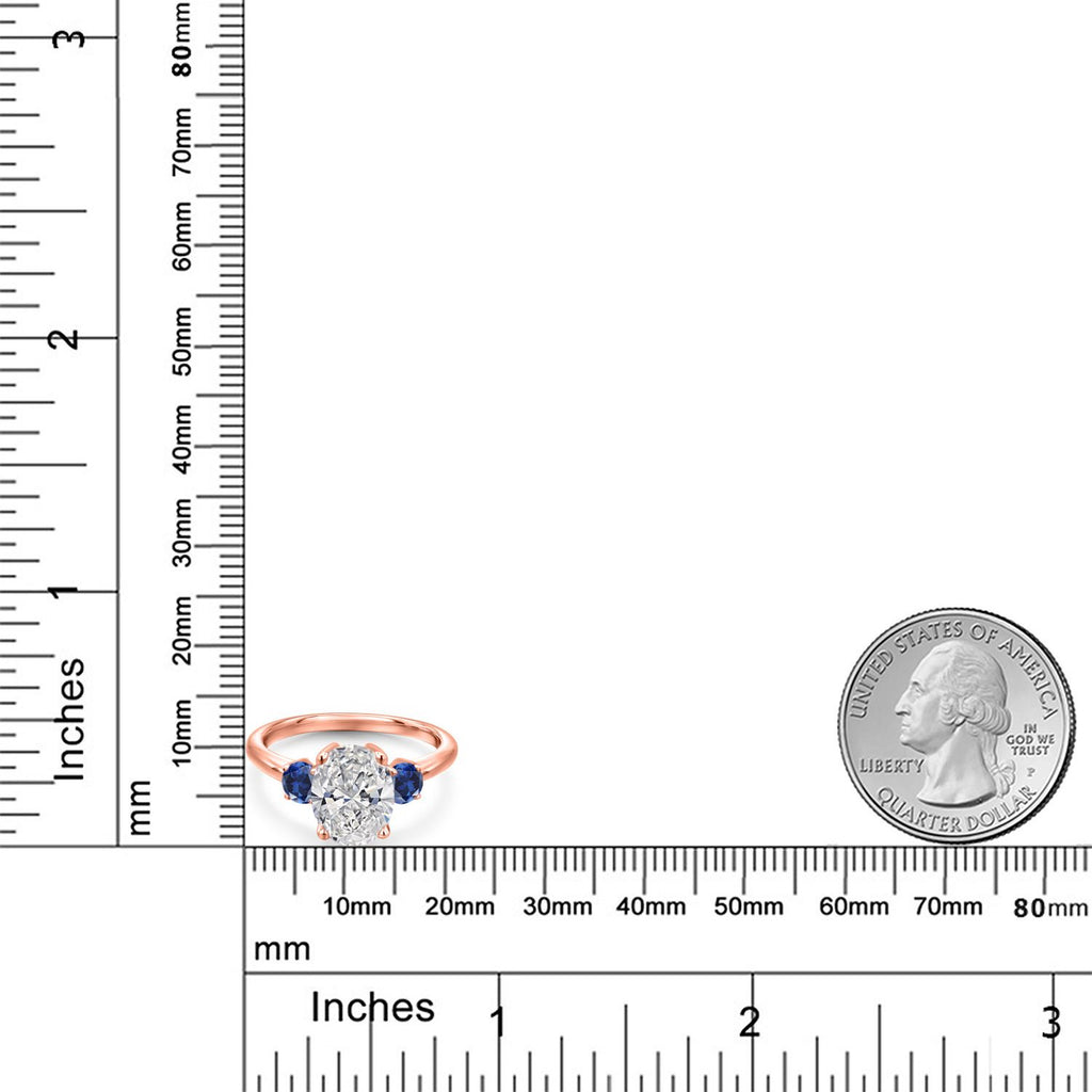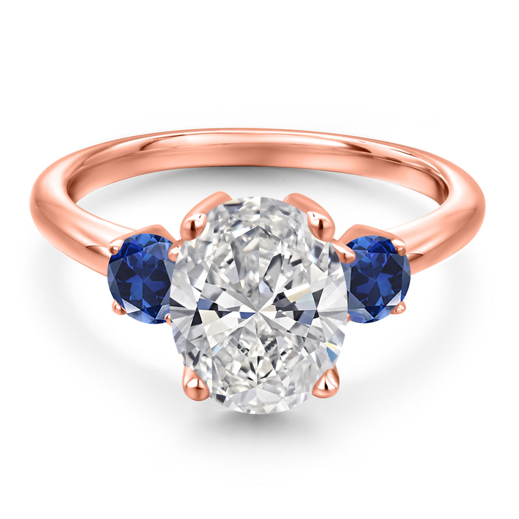 MEASUREMENTS: 10x8mm Oval E - F Lab Grown Diamond, 4x4mm Round Heat-Treated Blue Created Sapphire. Total Carat Weight is 2.5 cttw