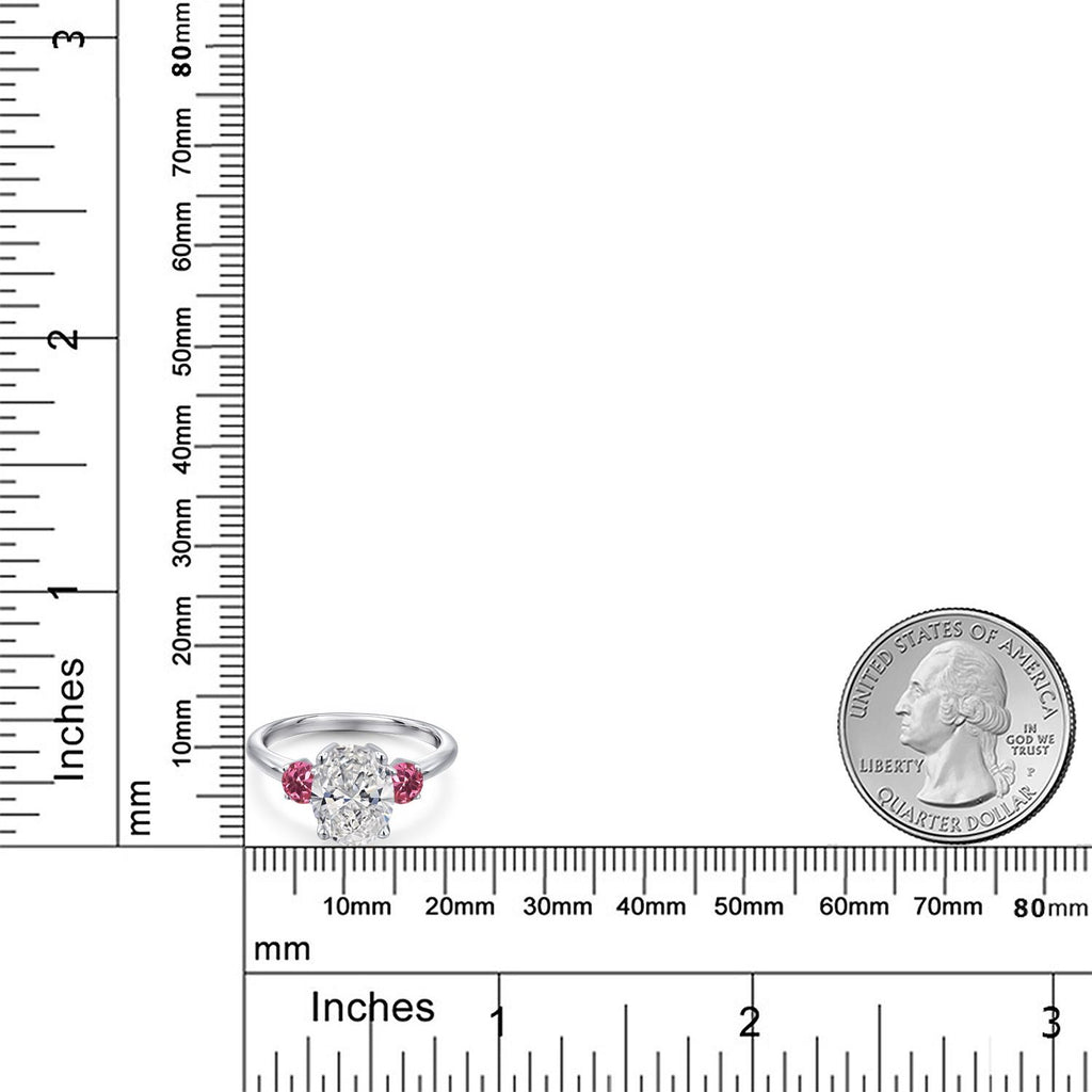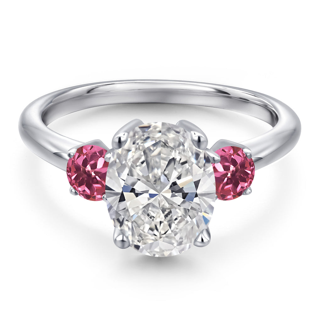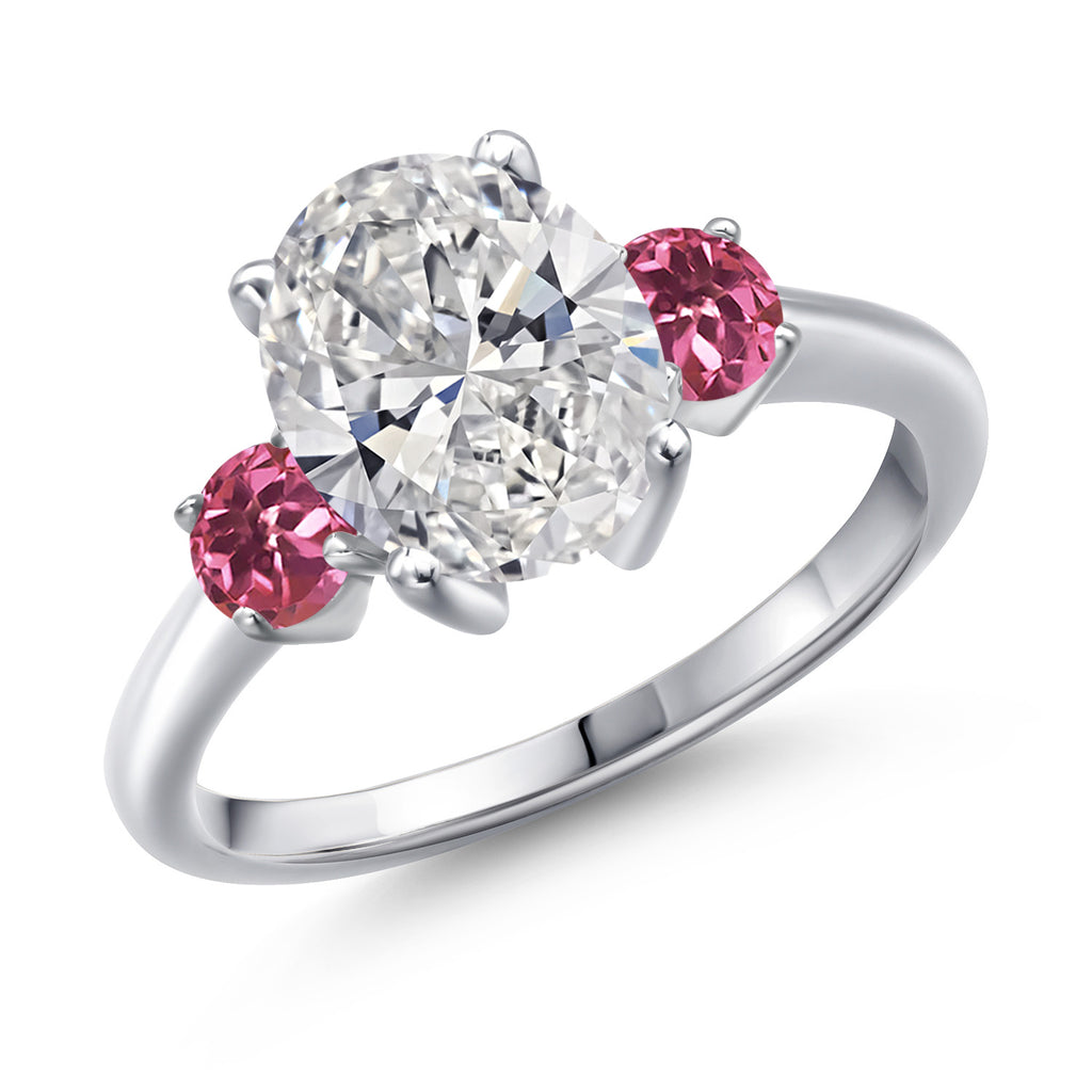 MEASUREMENTS: 10x8mm Oval E - F Lab Grown Diamond, 4x4mm Round Heat-Treated Pink Tourmaline. Total Carat Weight is 2.5 cttw