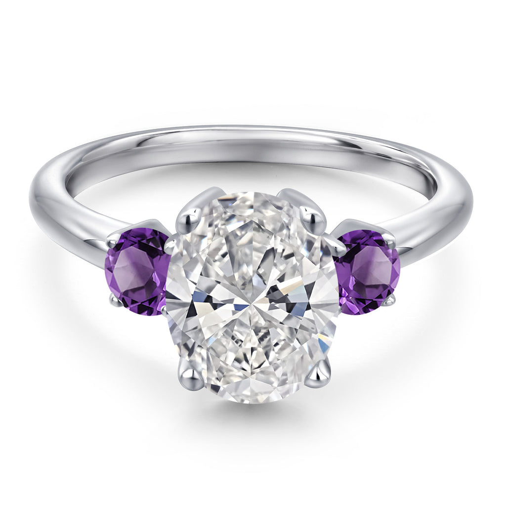2.50 cttw IGI Certified Lab Grown Diamond and Purple Amethyst 3-Stone Engagement Ring For Women | 925 Sterling Silver | Center 2.00 Ct Diamond | E-F Color | VS1-VS2 Clarity