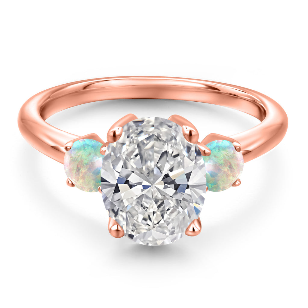 2.50 cttw IGI Certified Lab Grown Diamond and White Opal 3-Stone Engagement Ring For Women | 18K Rose Gold Plated Silver | Center 2.00 Ct Diamond | E-F Color | VS1-VS2 Clarity