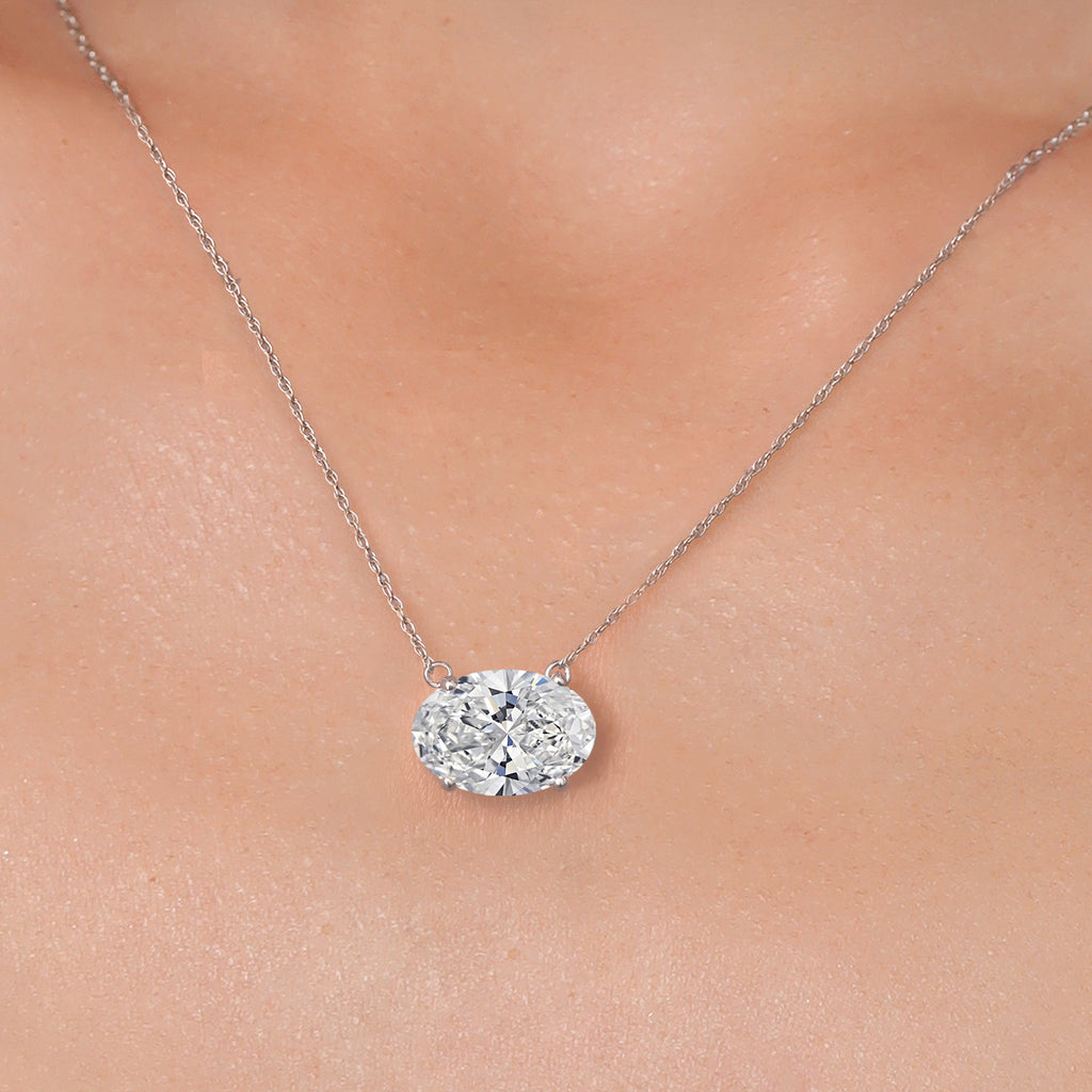 EXQUISITE 2.50 CT IGI-CERTIFIED OVAL LAB GROWN DIAMOND PENDANT: This necklace features a stunning 2.50 carat oval-cut lab-grown diamond, certified by IGI for its exceptional quality and authenticity. The E-F Color grade ensures near-colorless brilliance, while the VS1-VS2 Clarity guarantees minimal inclusions, enhancing its fire and sparkle. The elongated oval shape creates a timeless and elegant centerpiece.