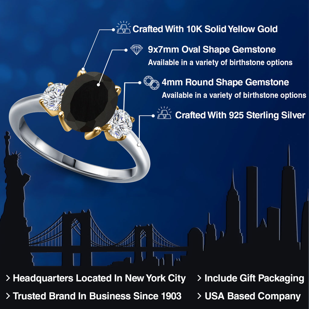 2-Tone Engagement Ring For Women | 925 Silver and 10K Yellow Gold | Gemstone Birthstone | 6MM Cushion Cut | Wedding Anniversary Promise Ring | Available In Size 5, 6, 7, 8, 9