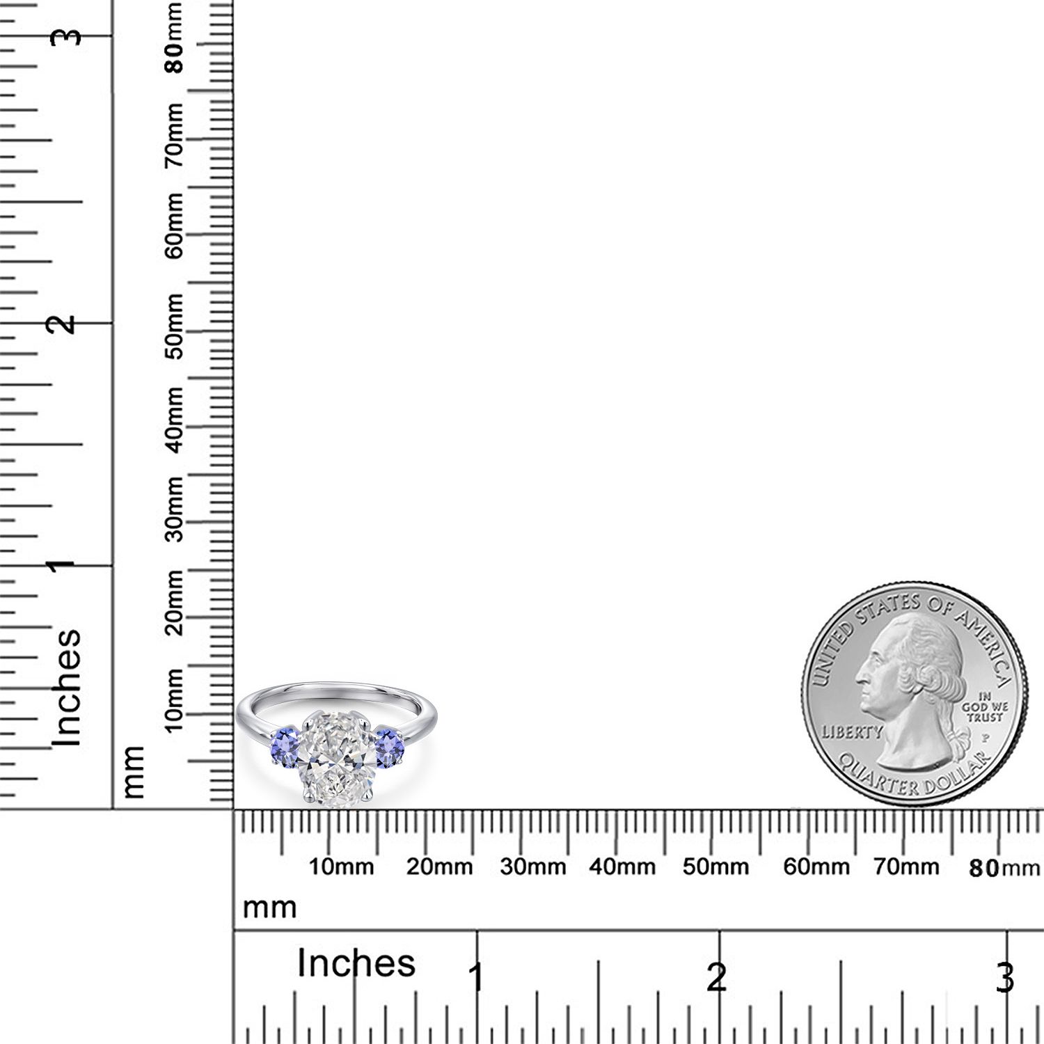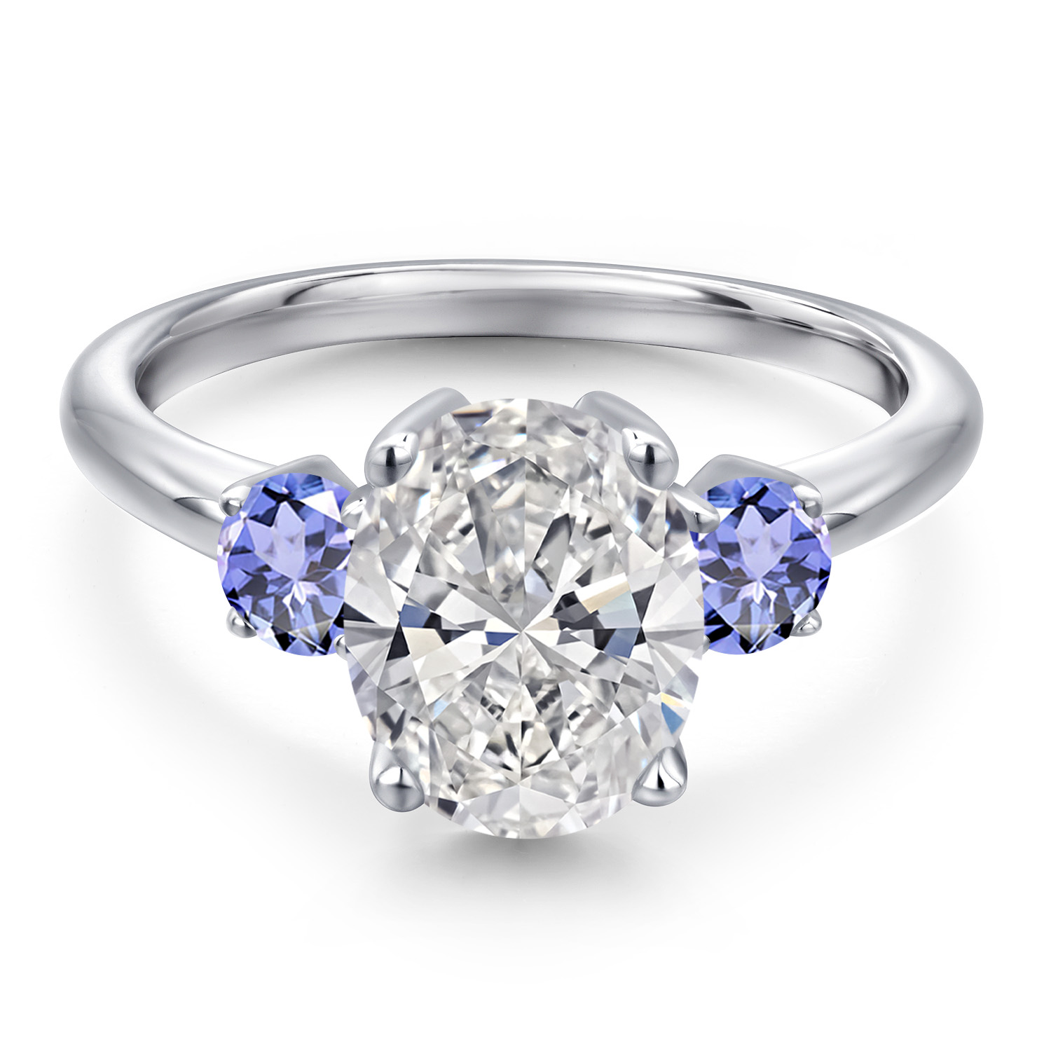 MEASUREMENTS: 10x8mm Oval E - F Lab Grown Diamond, 4x4mm Round Heat-Treated Blue Tanzanite. Total Carat Weight is 2.6 cttw