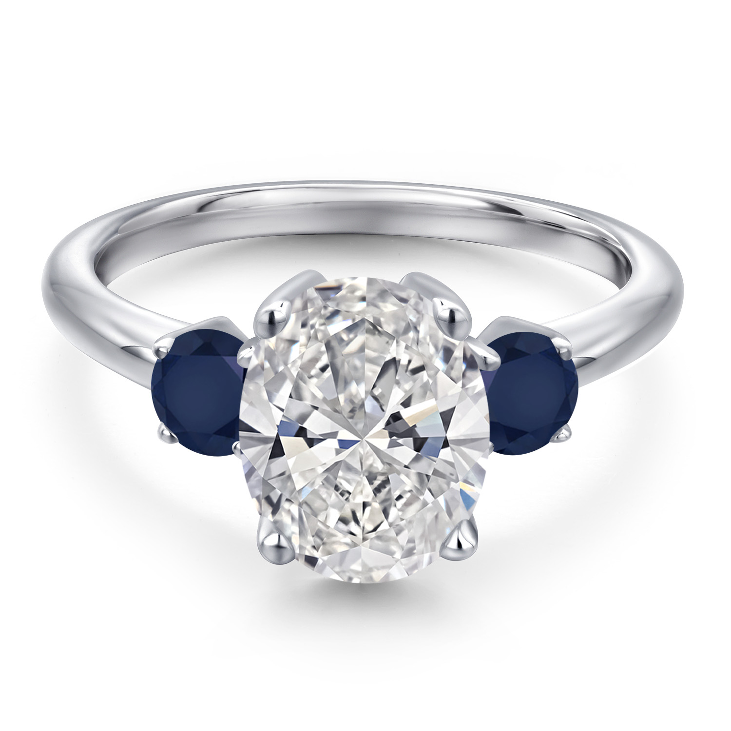 2.70 cttw IGI Certified Lab Grown Diamond and Blue Sapphire 3-Stone Engagement Ring For Women | 925 Sterling Silver | Center 2.00 Ct Diamond | E-F Color | VS1-VS2 Clarity